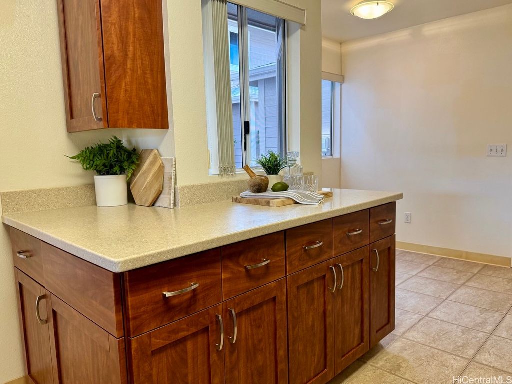 Welcome to Village on the Green, where comfort meets convenience. This highly sought-after 3-bedroom, 2.5-bath home offers 1,446 sq. ft. of living space plus an attached 385 sq. ft. two-car garage. Vaulted ceilings and abundant natural light create an open living space, perfect for entertaining or relaxing at home. The main level features a welcoming living room, functional kitchen, and convenient half bath. Upstairs, you'll find a generous sized main bedroom with en suite full bath, and two additional bedrooms and one full baths, providing ample privacy and space. Step outside to your fenced-in yard, easily accessible from the living room"”ideal for gatherings or a quiet morning coffee. Located near Waikele Country Club and Waikele Premium Outlets, you'll enjoy easy access to golf, shopping, dining, and more. Sold AS-IS.