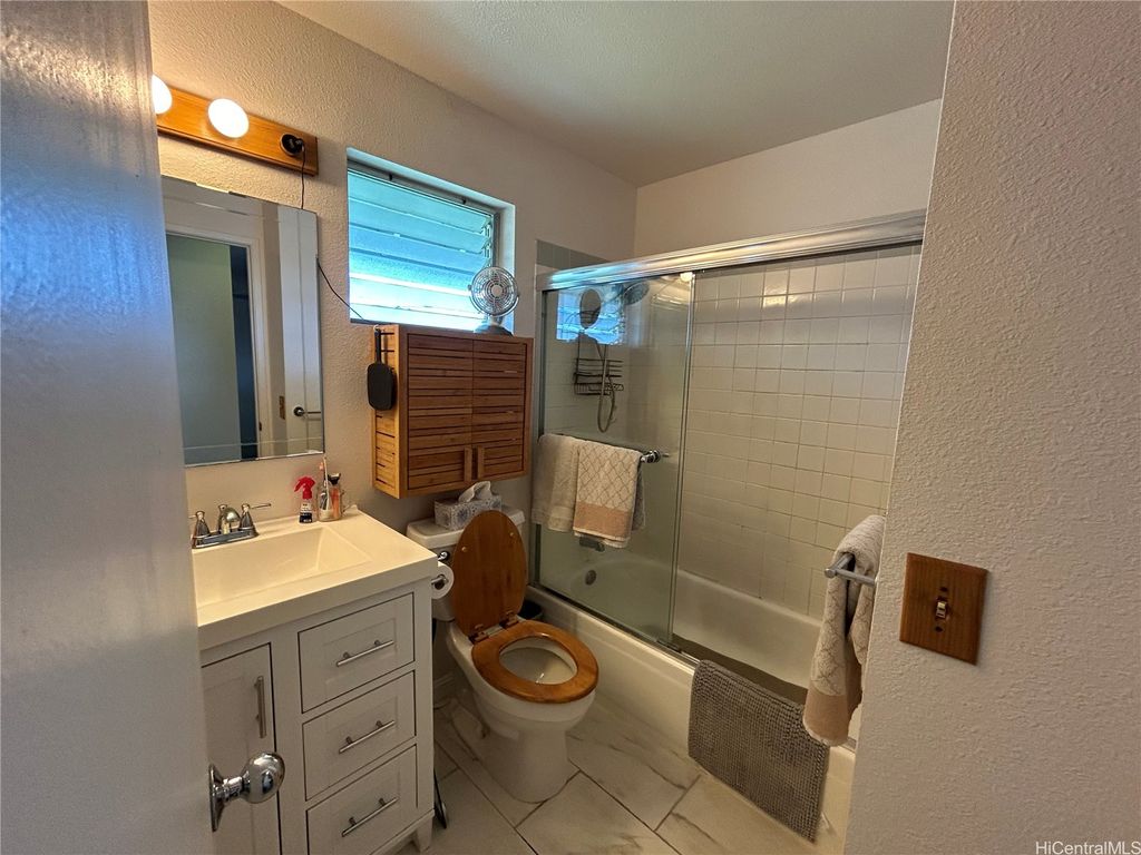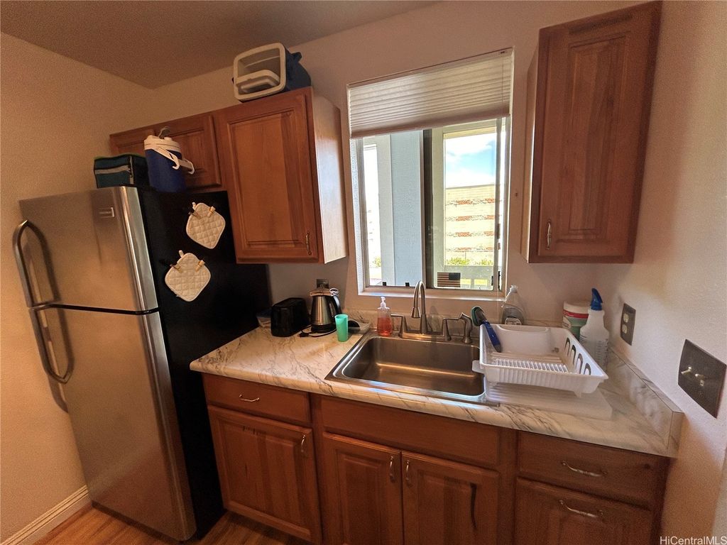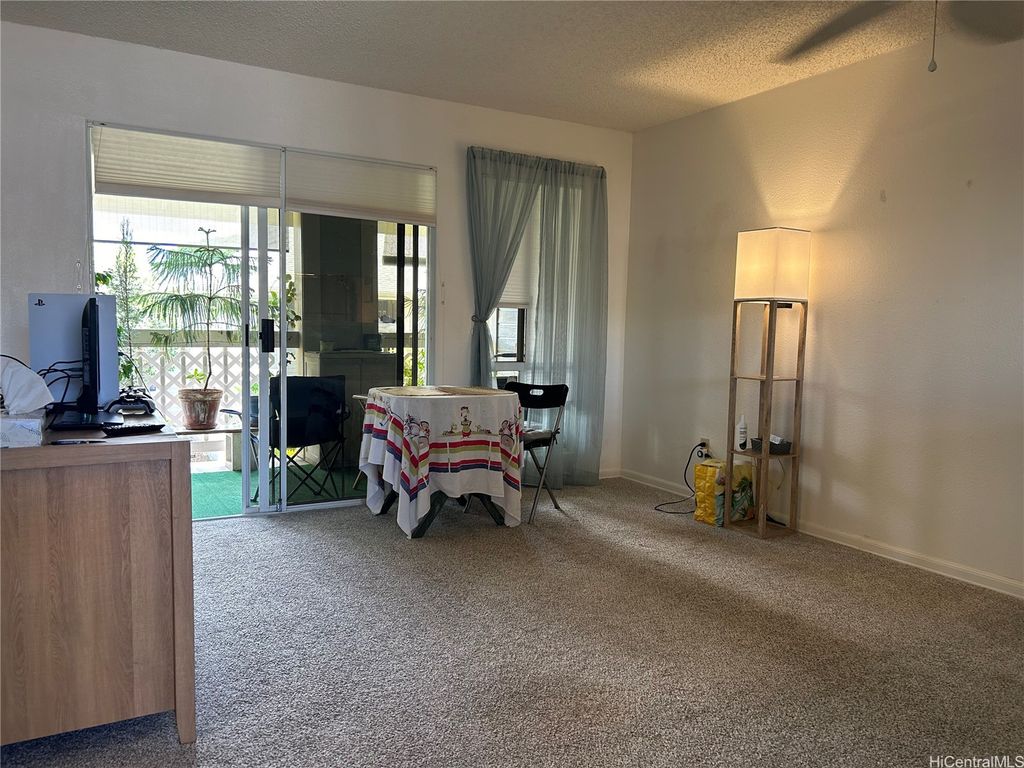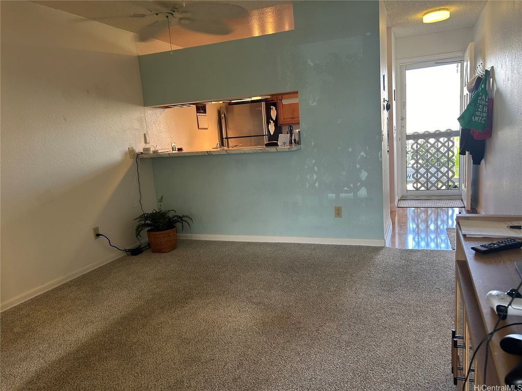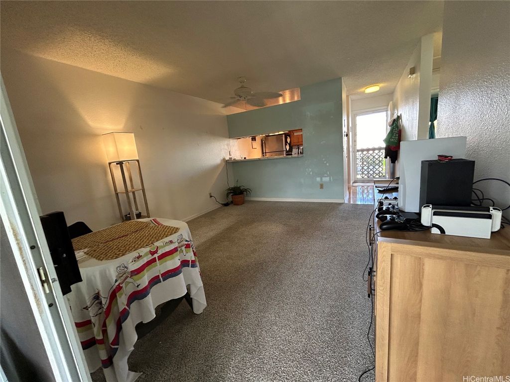 Well maintained move-in ready: Fee-simple, 2 bdrm/1ba 2nd floor end unit in quiet well maintained Ho'okumu at Waikele. The unit features plenty of natural light, west facing lanai for enjoyable sunset views. Bedrooms, living rm have ceiling fans. The primary/main bedroom has a window mounted A/C, and mirrored closet doors. New wall-to-wall carpet installed Oct. "˜24 in bdrms, hall, and living rm. The bathroom has a tub/shower combo w/sliding glass doors, recently installed porcelain tile floor and alcove with the in-unit washer/dryer. Kitchen has ceramic top stove w/self-cleaning oven, garbage disposal, and refrigerator. All cabinets are solid wood, a pass-through bar, and custom countertops. Kitchen and entryway has laminated wood flooring. Other features; EcoNet water heater less than 3 yrs old, RING doorbell system, electronic programmable front door lock, tinted windows with honeycomb style light filtering blinds, Hawaiian Telcom fiber- optic internet and cable access. 1 assigned parking stall, uncovered, guest parking avail with restrictions, nearby street parking. Complex offers car wash areas.