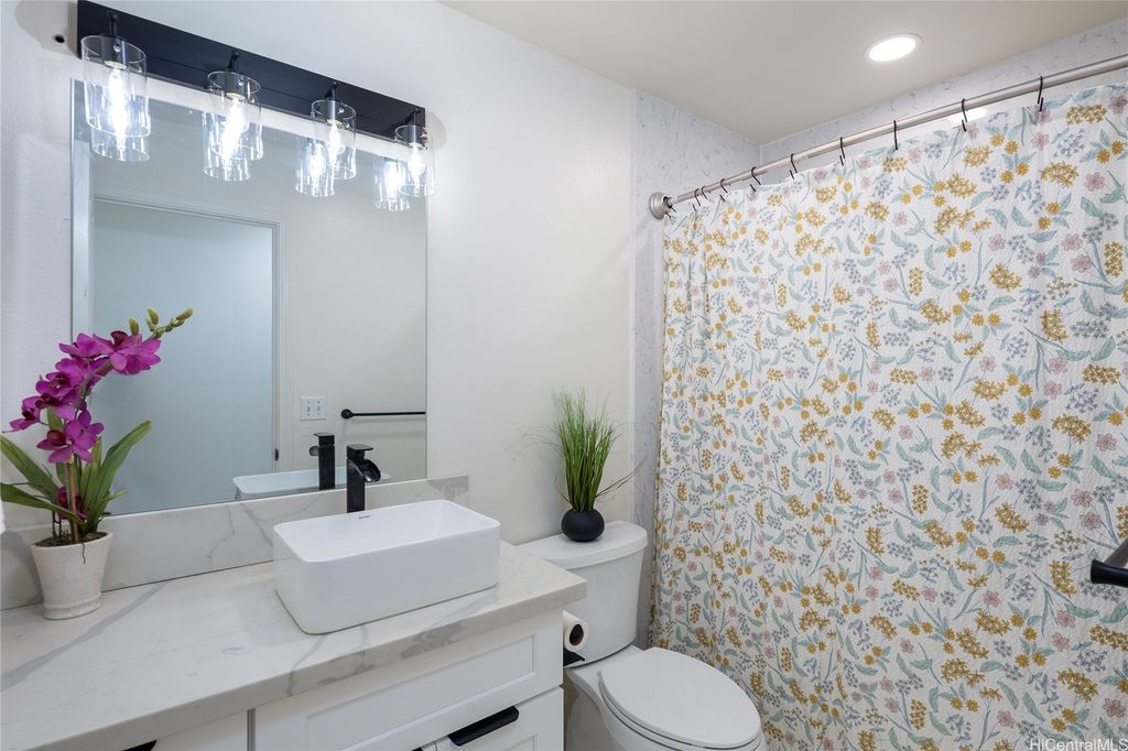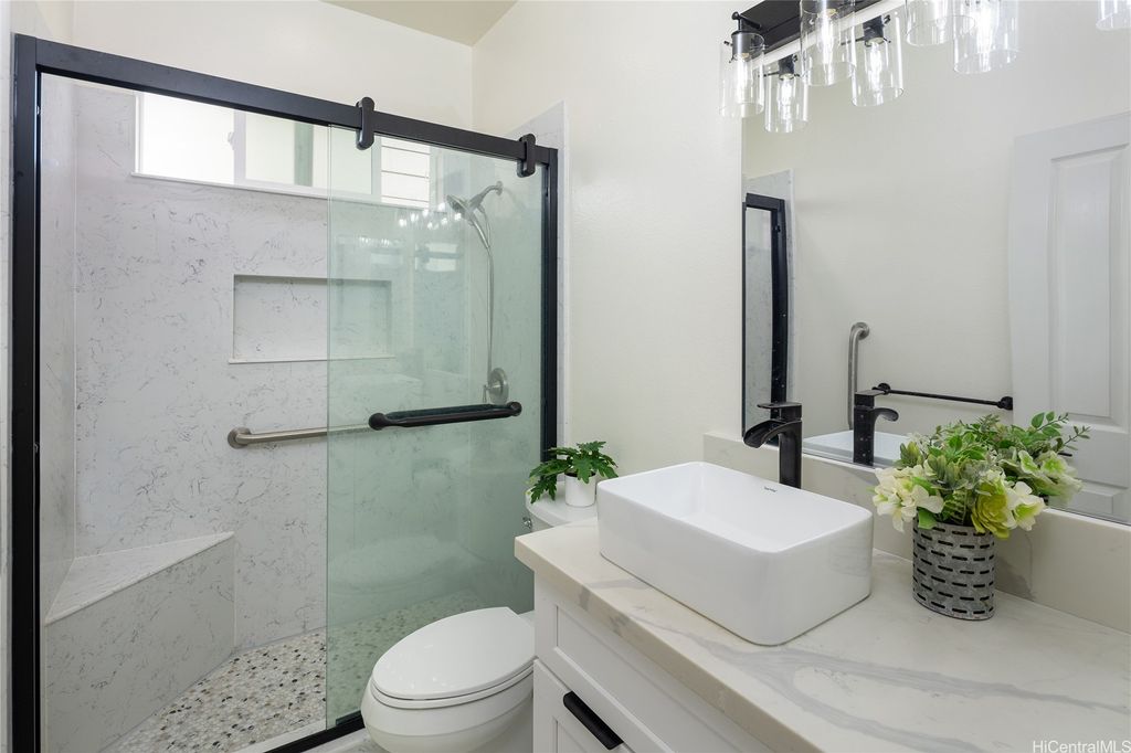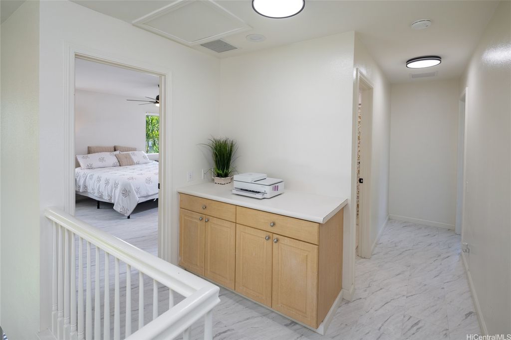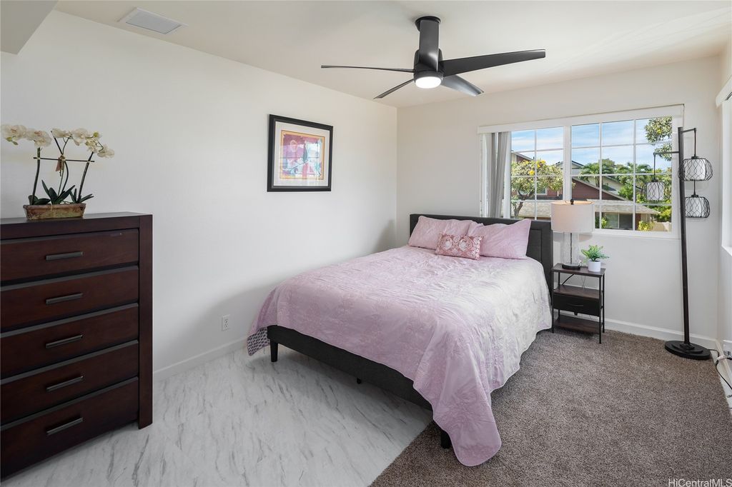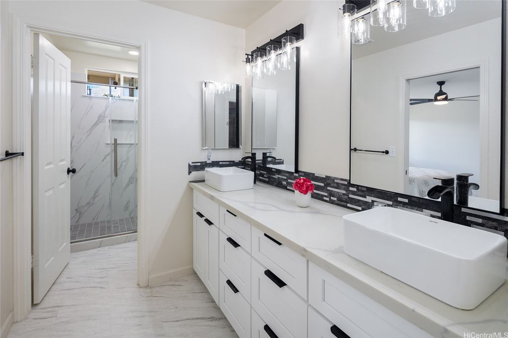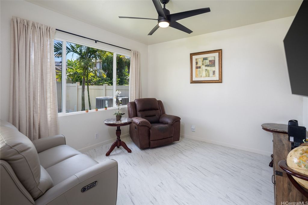 Stunning and fully upgraded, this Ewa Beach home is ready to impress. With NO MAINTENANCE FEES, it offers modern style and everyday convenience. The kitchen has been completely remodeled with custom cabinetry and sleek counters, creating a centerpiece that is both beautiful and functional. The living room opens to soaring two-story ceilings that fill the home with natural light and highlight the elegance of the open layout. Bathrooms have been thoughtfully redone with stylish vanities, tile, and fixtures, giving each space a fresh and refined feel. A BEDROOM and FULL BATH on the GROUND FLOOR provide comfort and flexibility. All NEW WINDOWS were just installed, adding style and reliable functionality throughout the home. Step outside to the spacious covered lanai, perfect for enjoying the beauty of Hawai"˜i, and a generous yard with ample room to make it your own. Parking is easy with an oversized two-car garage and additional driveway space. Located on a cul-de-sac, this home blends upgraded interiors, versatile outdoor living, and a convenient location near shopping, schools, and recreation. All furniture is available for purchase under a separate bill of sale.