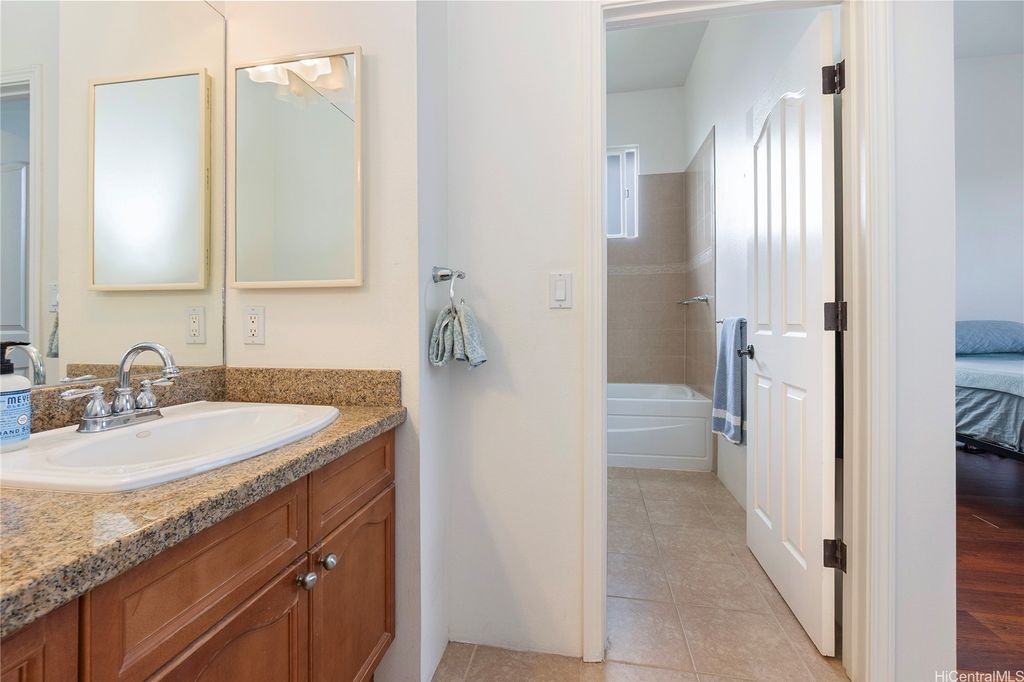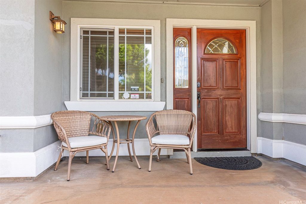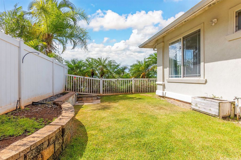 Welcome home to Hoolu Landing at Upper Makakilo! This beautiful corner residence offers 3 bedrooms, 2 full bathrooms, and an attached 2-car enclosed garage. High ceilings throughout create a bright, airy feel, while the fully fenced backyard is perfect for pets, gardening, or entertaining. The spacious eat-in kitchen features cherry cabinets, quartz countertops, and stainless steel appliances. Retreat to the large primary suite with generous closet space and dual vanities. Additional highlights include central A/C to keep you cool, a front-load washer and dryer, and a 27-panel leased PV system (through 2036) for energy savings. The maintenance fee covers water, sewer, and common area upkeep"”making this home both comfortable and convenient. Put this one on your must-see list!