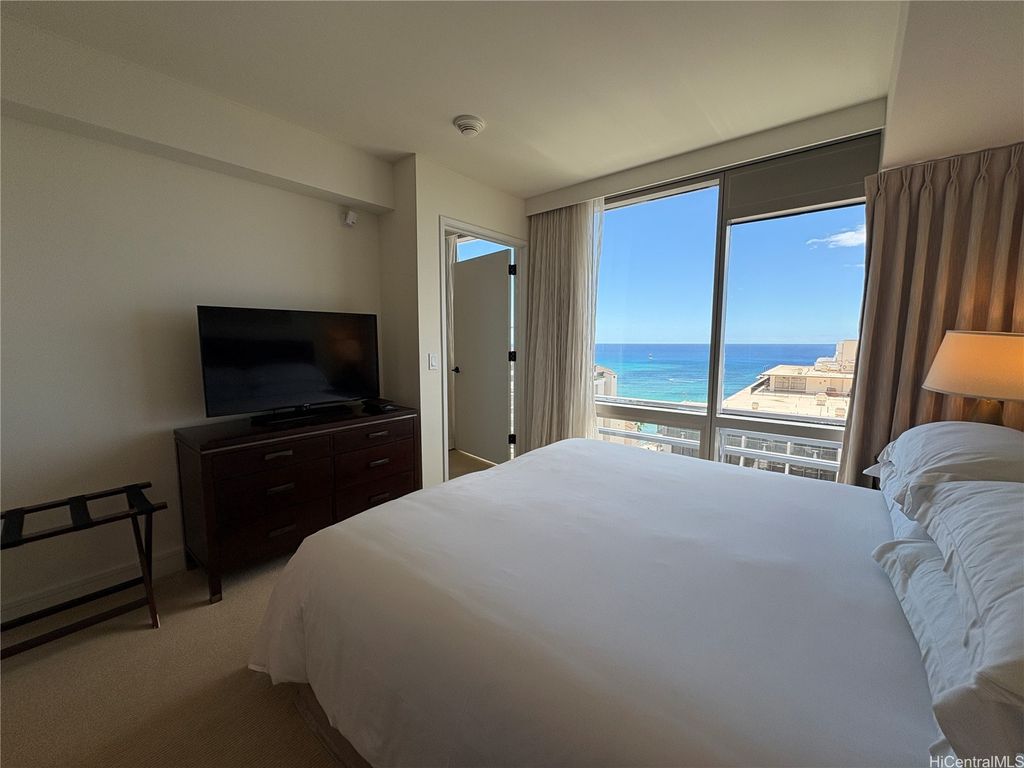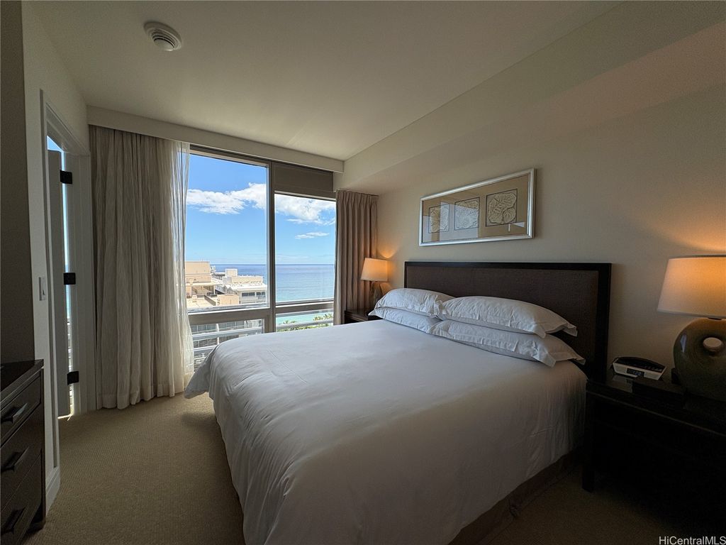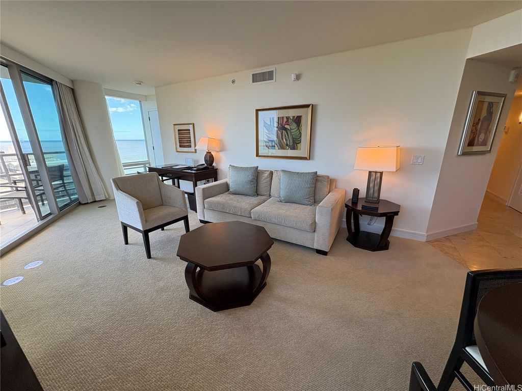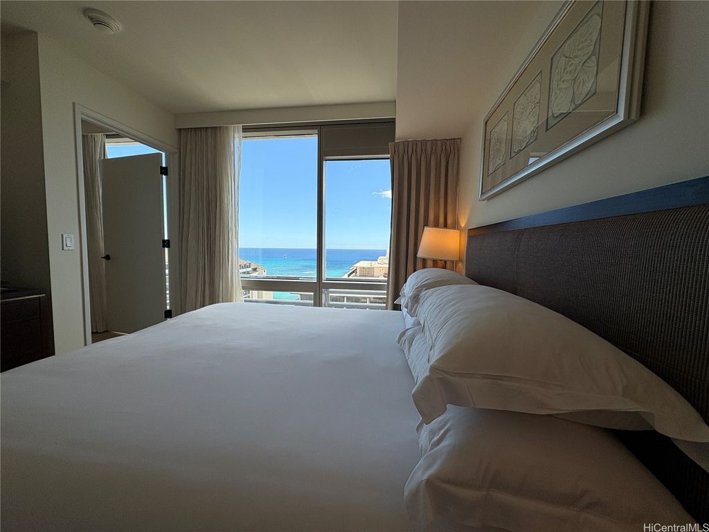 Available fully furnished 1 bedroom, 1 bathroom unit on the 19th floor in KA LA'I WAIKIKI Beach (Formally known Trump Tower Waikiki). Long term lease - 12 MONTHS MINIMUM required. Convenient location within walking distance of Waikiki Beach and shopping. This corner unit include full kitchen with built-in refrigerator/freezer, cooktop, sofa bed, blackout curtains, carpet floors (tile in bathroom and kitchen), washer/dryer, walk in shower, tub, central ac, and lanai with ocean views. Rent includes: Water/sewer, cable tv, wifi internet. Renter pays electricity. Parking not included, but monthly valet parking is available from the building. Building hotel amenities include 24/7 security, concierge, exercise room, infinity pool, spa, meeting room and restaurants. No pets, No smoking, No short term, No subleasing allowed. Showing by Appointment only. Monday to Fridays only. No virtual tours. Renters insurance required. Building undergoing renovations until early 2026.
