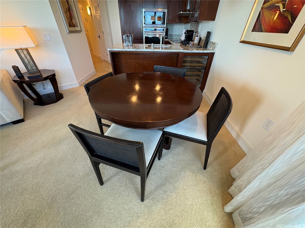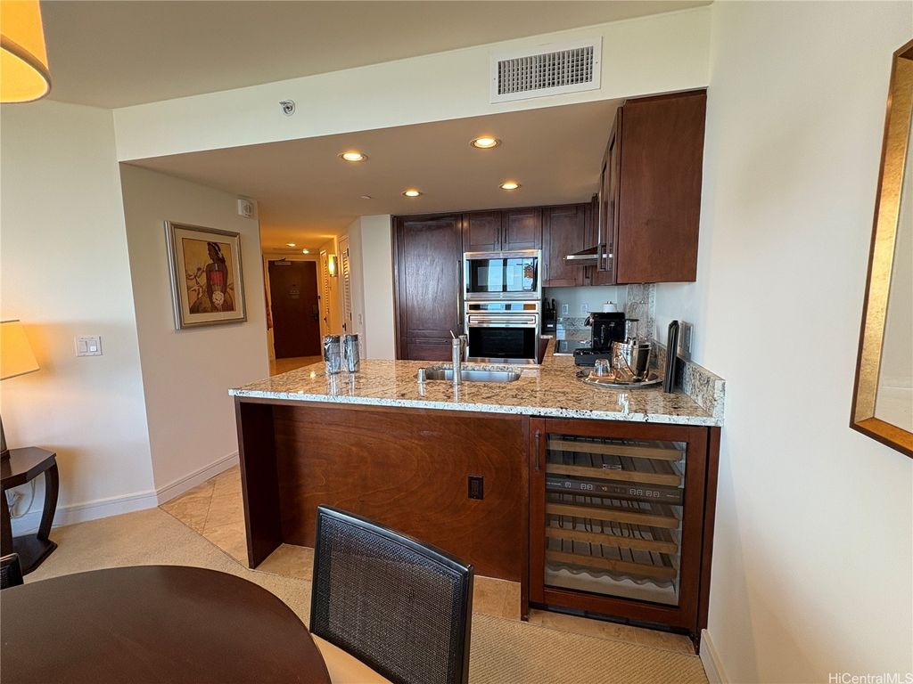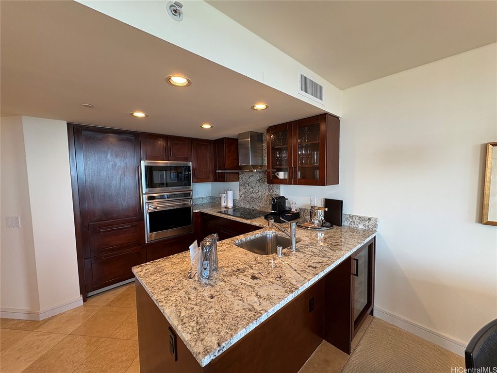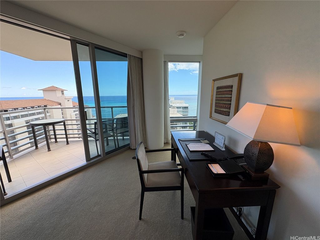 Available fully furnished 1 bedroom, 1 bathroom unit on the 19th floor in KA LA'I WAIKIKI Beach (Formally known Trump Tower Waikiki). Long term lease - 12 MONTHS MINIMUM required. Convenient location within walking distance of Waikiki Beach and shopping. This corner unit include full kitchen with built-in refrigerator/freezer, cooktop, sofa bed, blackout curtains, carpet floors (tile in bathroom and kitchen), washer/dryer, walk in shower, tub, central ac, and lanai with ocean views. Rent includes: Water/sewer, cable tv, wifi internet. Renter pays electricity. Parking not included, but monthly valet parking is available from the building. Building hotel amenities include 24/7 security, concierge, exercise room, infinity pool, spa, meeting room and restaurants. No pets, No smoking, No short term, No subleasing allowed. Showing by Appointment only. Monday to Fridays only. No virtual tours. Renters insurance required. Building undergoing renovations until early 2026.