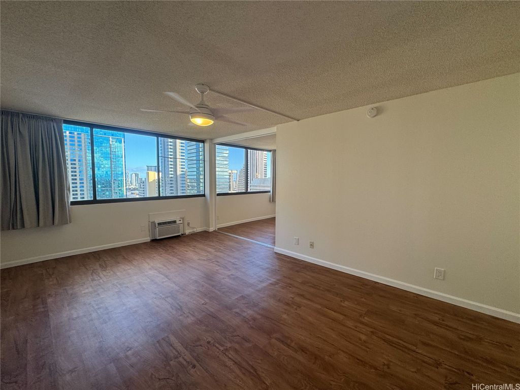 REDUCED BY $20k!!!!! Enjoy downtown Honolulu living in this 1 Bedroom, 1 Bathroom unit in the Ewa Tower of Kukui Plaza. This property features vinyl flooring in the living room and bedroom and tile flooring in the kitchen and bathroom, window AC unit in the living room and pocket door dividers to the bedroom gives you options on living area. Conveniently located to freeway access, bus route and other public transportation, professional businesses, banks, restaurants, supermarkets and other retail shops. Amenities include a pool on property, multiple BBQ grills, a kiddie pool, 24 hr security, walking and jogging path, garden area, and recreational area. This property also includes 1 assigned parking stall.