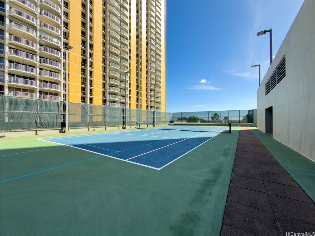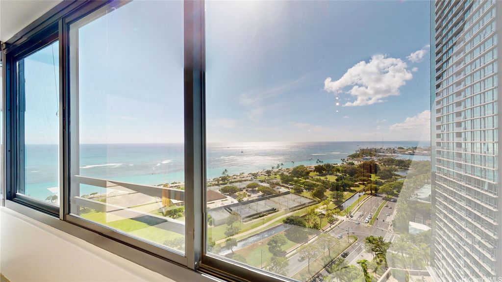 Experience resort-style living in this rare and desirable "02" unit at Nauru Tower, offering breathtaking panoramic views of stunning sunsets through its striking blue glass in both the living and bedroom areas. Just a short stroll from Ala Moana Shopping Center and the vibrant dining and retail options of Ward Village, this location is ideal for those who appreciate convenience and luxury. Enjoy exceptional amenities such as a sparkling pool, relaxing jacuzzi, tennis courts, and multiple BBQ and outdoor dining areas, perfect for entertaining or enjoying quiet evenings. This condominium is a true gem that combines elegance with an enviable lifestyle.