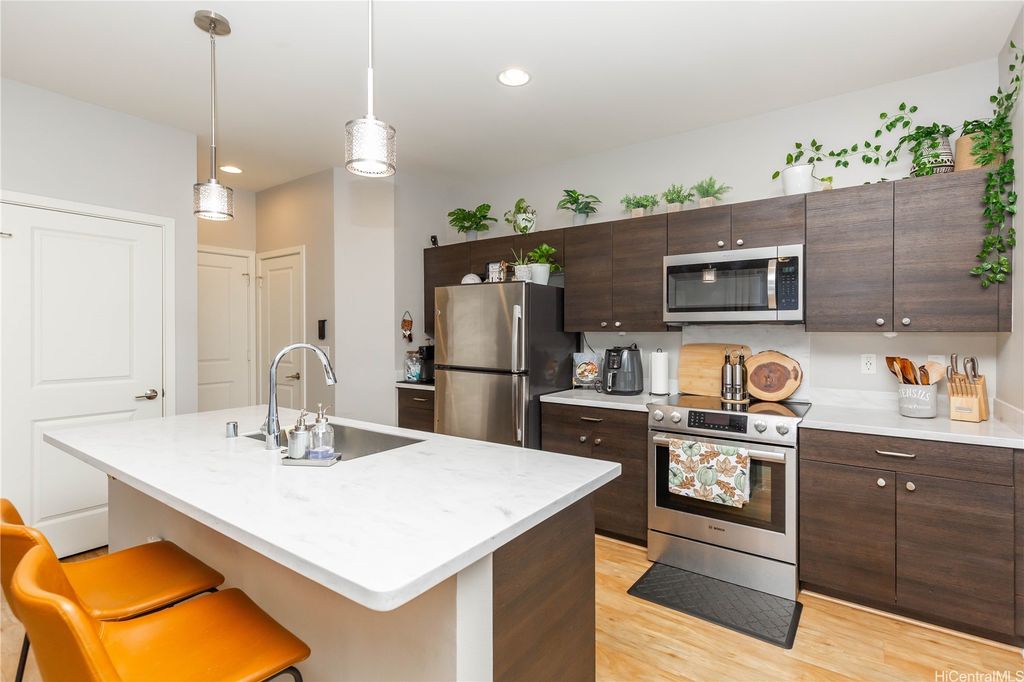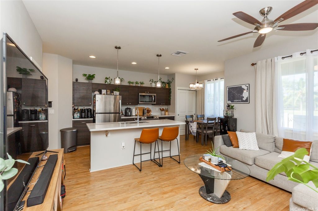 Welcome Home to this beautiful home in Seabridge. Featuring 4 bedrooms, 2 1/2 bathrooms, an open concept downstairs, and a cozy reading nook upstairs. Stunning golf course and sunset views await you in your spacious backyard. The kitchen features stainless steel appliances and a large pantry. The primary bedroom has expansive views of the Barbers Point Golf Course, an en-suite bathroom with dual vanity, and a large walk-in closet. Central AC to keep your home nice and cool all year long. Water and Sewer are included in the rent. Located close to KaMakana Ali'i, golf courses, and beaches. Come see all this property has to offer!