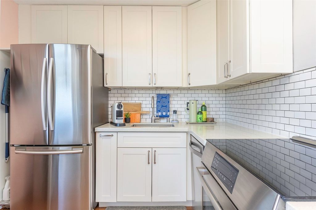 Pualei Circle at Its Finest! Don't miss this highly sought-after, rarely available 1-bedroom, 1-bathroom corner unit with parking in the desirable Diamond Head Gardens. Featuring in-unit washer and dryer, this move-in-ready home has been fully renovated with luxury vinyl flooring throughout. The upgraded kitchen features newer cabinetry, stainless steel appliances including a Bosch induction range, and Quartz countertops, while the bathroom showcases stylish tile work, a custom monkey pod vanity, and modern finishes. Relax on your private lanai and enjoy serene park and mountain views. High-speed fiber internet is available (Hawai"˜i Telcom fiber to each unit), with cable TV service also offered. Low maintenance fees in this well-managed building include beautifully landscaped grounds, a saltwater pool, and BBQ area. Perfectly located just a short stroll to Waikiki's sandy shores and iconic Diamond Head, with easy access to Kapiolani Park, the community garden, Monsarrat dining, shopping, and more. Minutes from KCC, Kapahulu Avenue, and Kahala. A must-see"”this one won't last long!