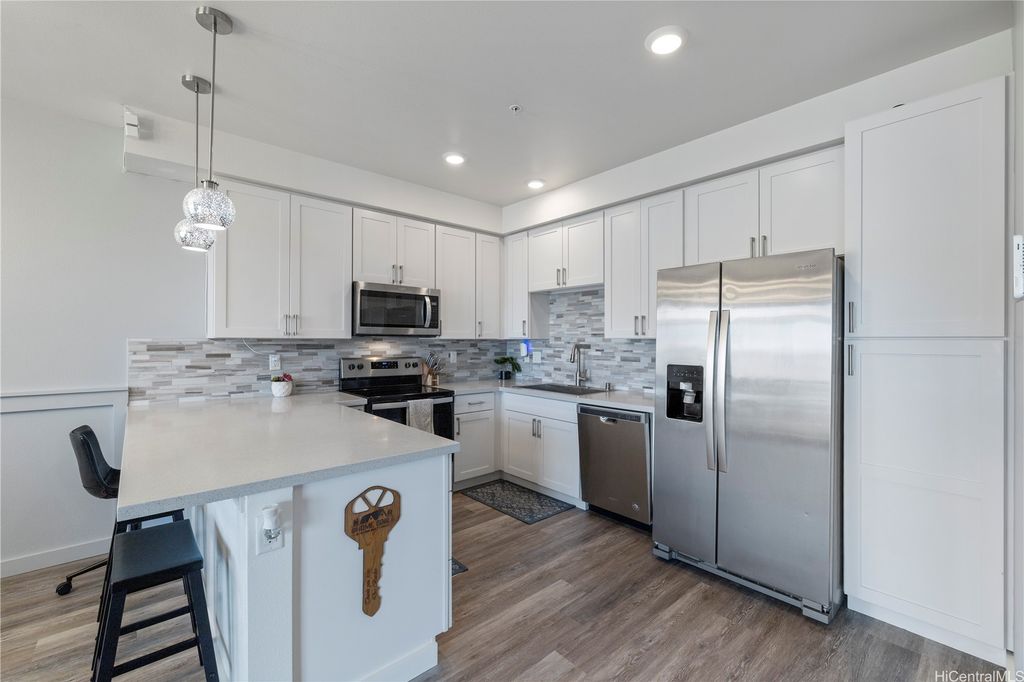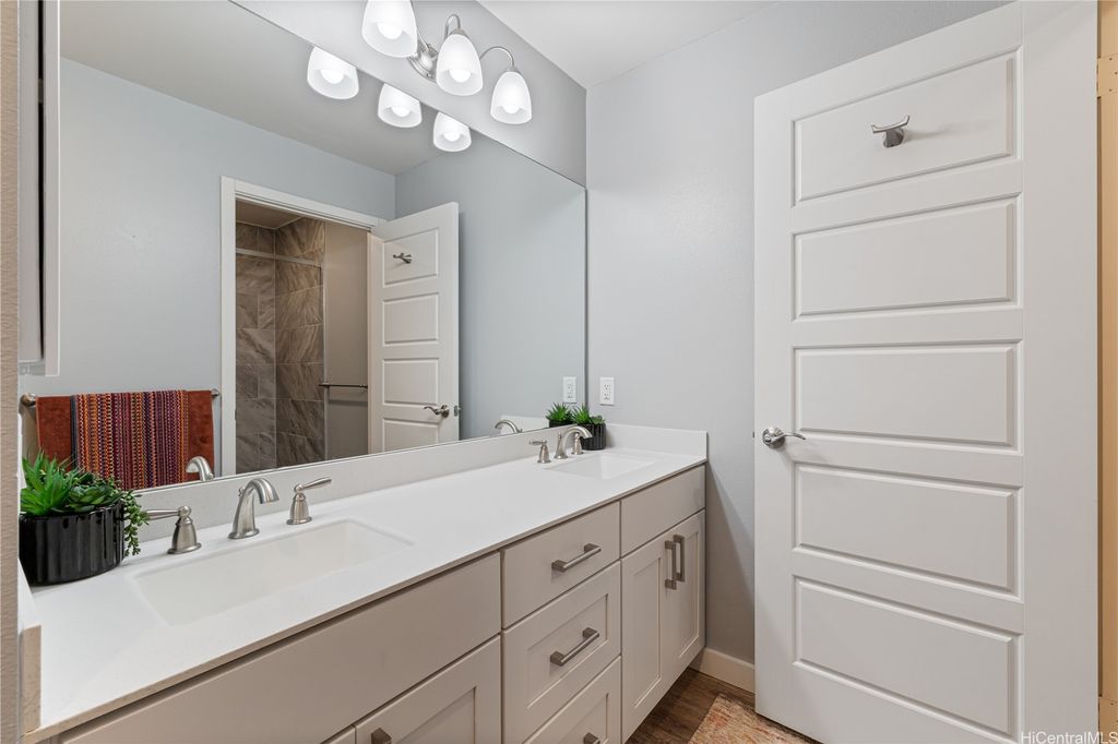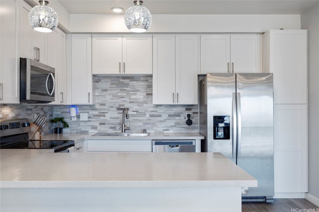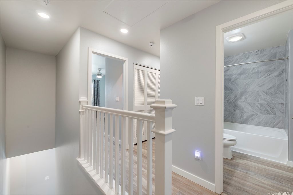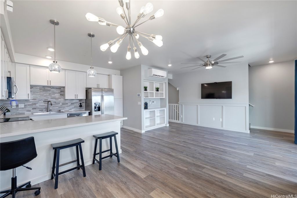***VA ASSUMABLE RATE @3.00%***Welcome to this recently upgraded 2-bedroom, 2.5-bath townhouse built in 2019, offering 1,140 sq ft of modern living. Recent improvements include fresh interior paint, luxury vinyl flooring throughout (no carpet), a custom kitchen backsplash, and updated light fixtures in the kitchen and dining area. Both bathrooms feature spa-inspired tile and stone showers, complemented by a brand-new split A/C system for year-round comfort. The garage transforms into a complete home gym( stays with the property) with Inspire cable machine, bench, dumbbells, plates, curl-z bar, barbell, kettlebells, and sandbag"”ideal for any fitness routine. Nestled in Hoopili, enjoy quick access to schools, parks, shopping, dining, and freeway connections. With two parking spaces, contemporary upgrades, and the rare chance to assume a VA loan at just 3%, this home is a true lifestyle and value opportunity.