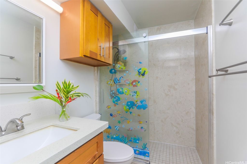 Ready-to-move-in 2-bedrooms, 1 bathroom with 1 assigned parking stall. Unit on the ground level. Great opportunity for owner occupant or rental. Centrally located Maile Terrace Apartments. Renovated title flooring, bathroom and kitchen in 2016. Split AC installed in 2018 in each bedroom just like brand new (never used by Sellers). Easy maintenance, walk-in shower with large lanai and storage. The large bedrooms feature ceiling fans. Community laundry. Near Ala Moana Shopping Center, Waikiki, Sam's Club, downtown, Queens Medical Center, and Straub Clinic. Pet friendly building (Need to verify). Property is sold AS-IS.