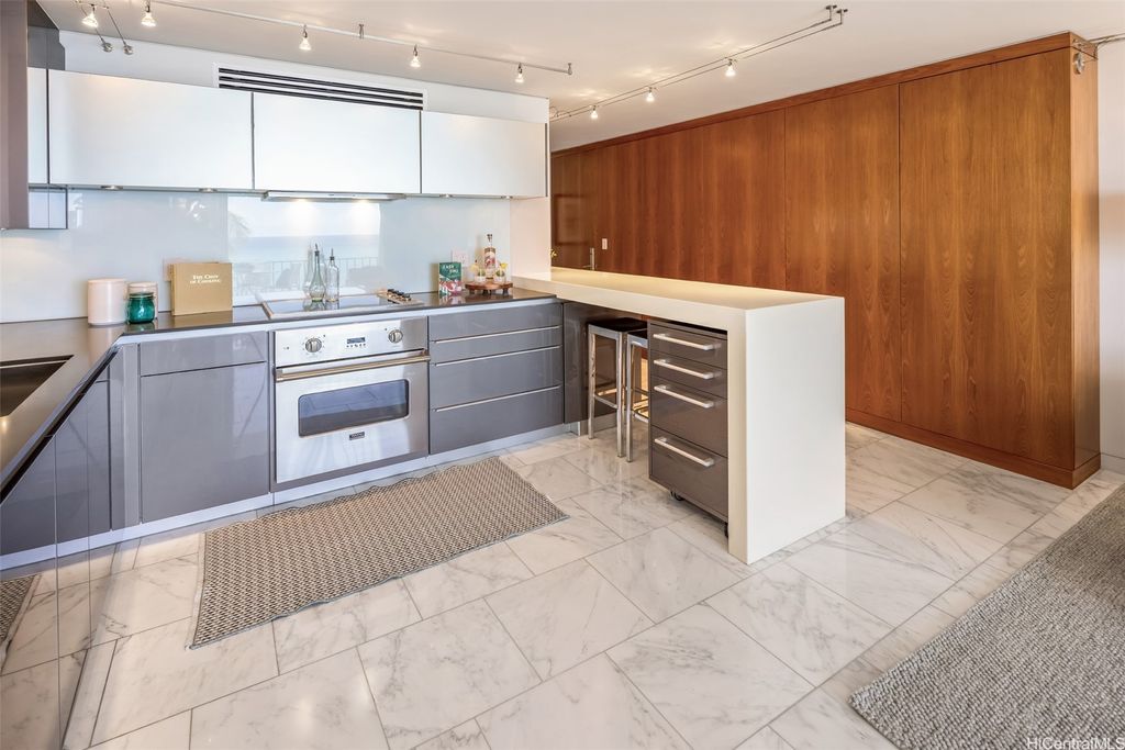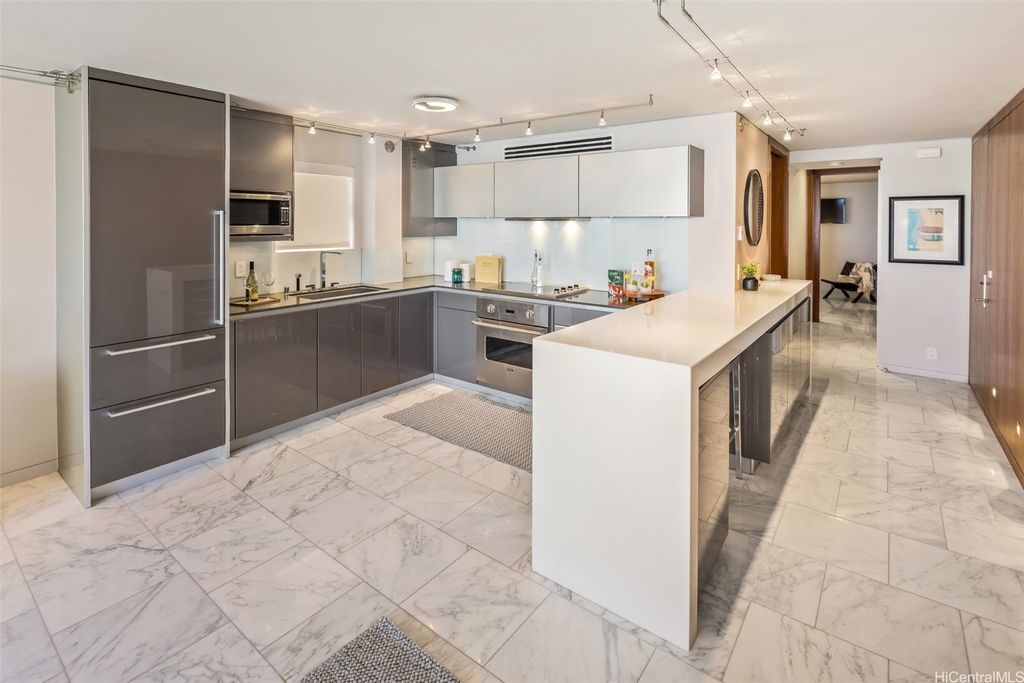 Sleek, modern, spectacular! Exquisitely renovated Gold Coast oceanfront apartment at the foot of Diamond Head - Designed by noted Houston architect, William Taylor - it features a custom Poggenpohl Kitchen, designer lighting, bespoke cabinetry with maximum storage, and a clean, minimalist look. Central AC, marble flooring throughout, new Fleetwood doors and windows. Embrace sun, surf, and paddling & leisurely walks in Kapiolani Park at the quiet edge of Waikiki.