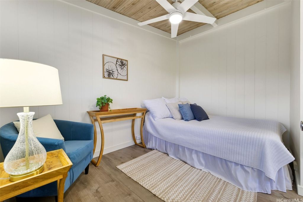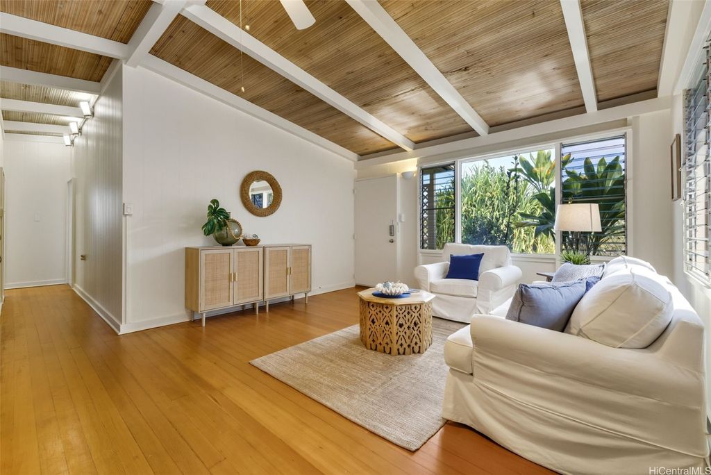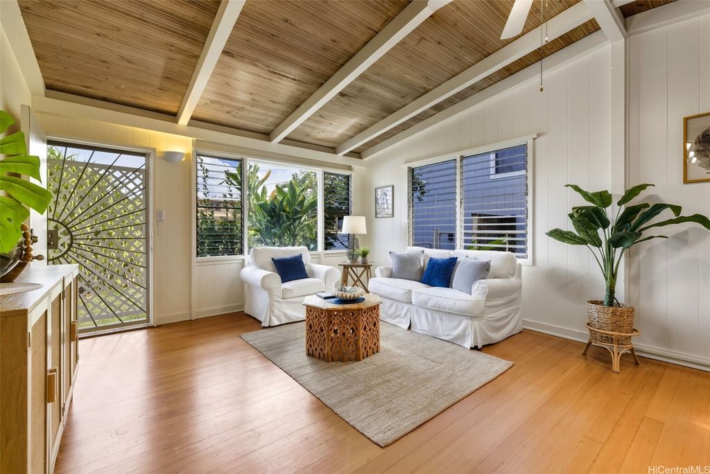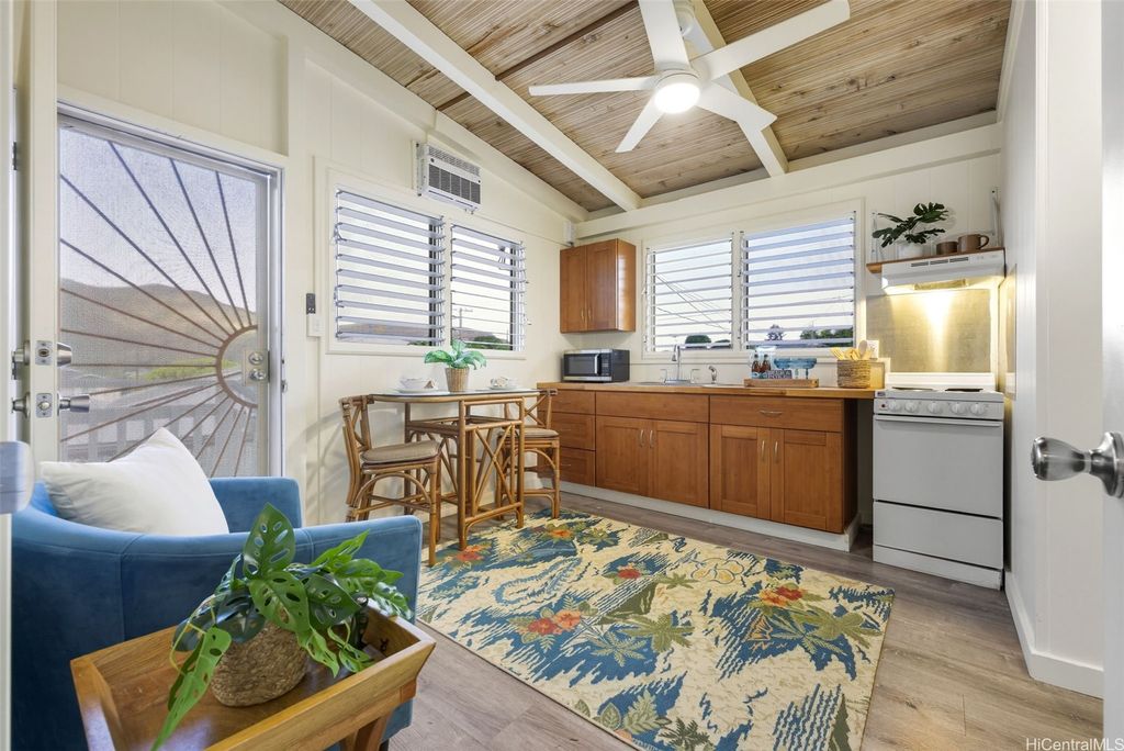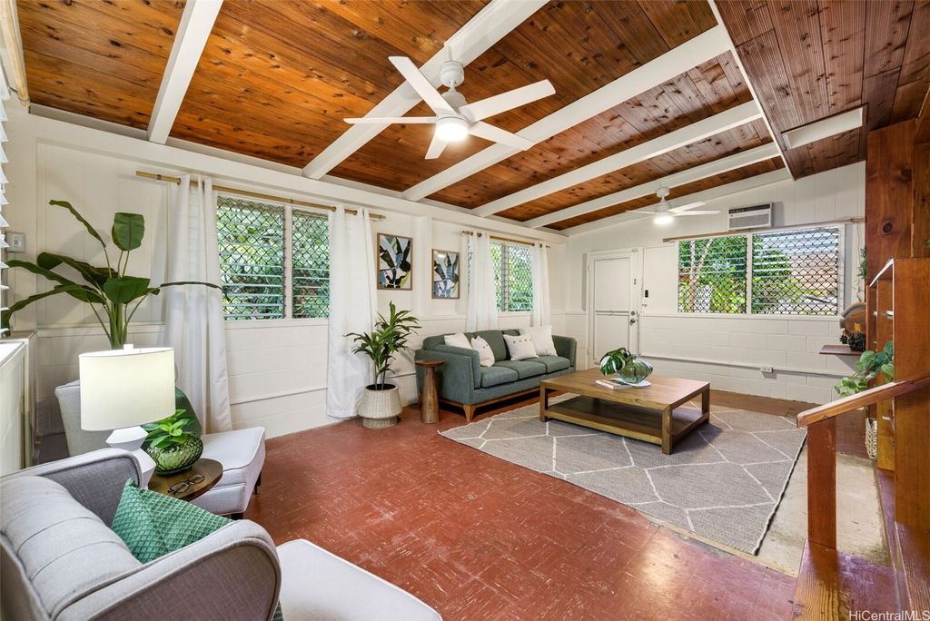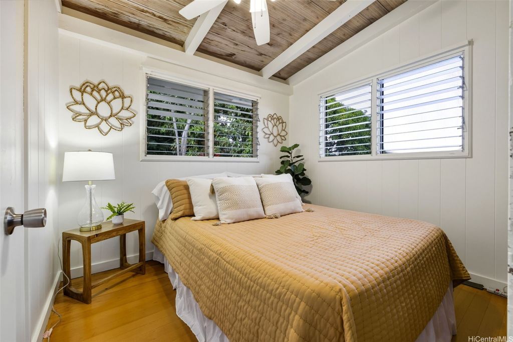 This 3-bed, 2-bath home blends classic island charm with thoughtful updates and flexible living. The expanded layout creates the perfect opportunity for an in-law suite, ideal for multi-generational living or visiting guests. The interior is full of warm, inviting details - from the white-washed combed pine ceilings to the stunning Douglas Fir hardwood floors that run through the main living areas. At the heart of the home is a kitchen that's both functional and beautiful. Solid cherry wood cabinets, composite stone countertops, a gas stove, and a brand-new refrigerator and dishwasher all come together in a layout that makes cooking and entertaining a joy. Enjoy excellent airflow with 7 ceiling fans, 2 AC units, and the added bonus of 24 OWNED solar PV panels. The yard is a true retreat. Both front and back yards offer plenty of space to relax, unwind, or entertain. Plus, a curated garden of native Hawaiian plants, herbs, and fruit trees"”including mango, guava, and avocado. If you've been looking for a Kailua home that offers character, functionality, and charm, this one is definitely worth a look.