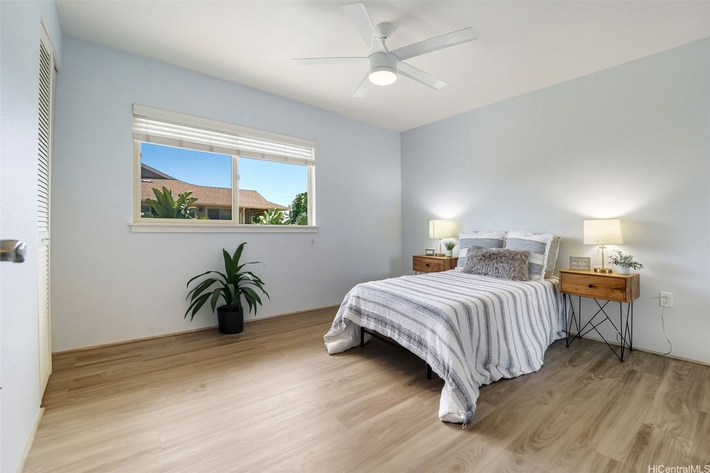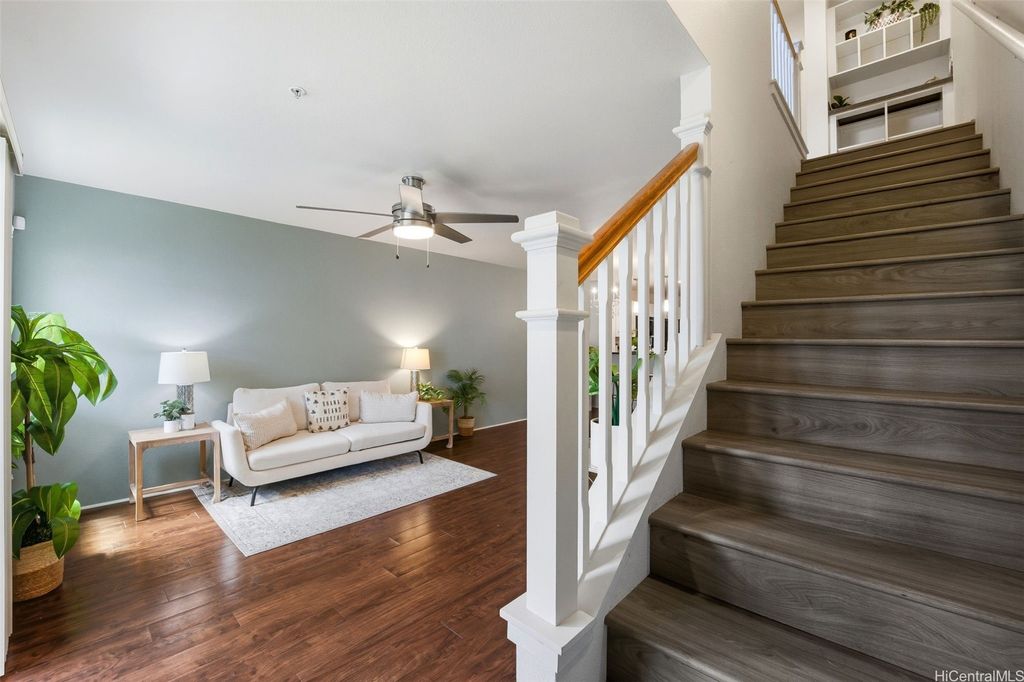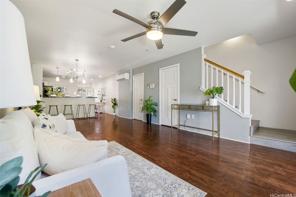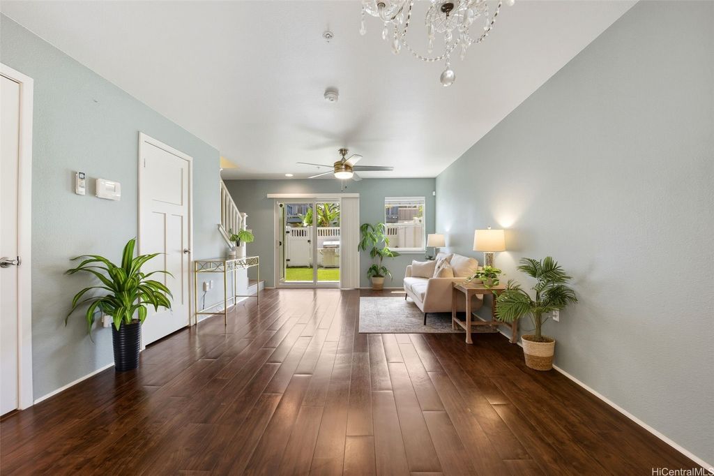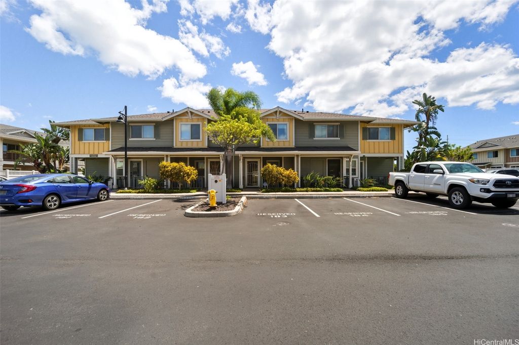 Rarely available in Mehana Olino! This one of a kind 2 story townhome has NO unit above or below and boasts one of the lowest maintenance fees in Kapolei, all while giving you the lifestyle you've been looking for. Featuring 2 full bathrooms upstairs, a convenient ½ bath downstairs, and 2 assigned parking stalls just steps away. Enjoy your own private backyard with low maintenance synthetic turf and a cozy lanai, perfect for relaxing or entertaining. Inside, you'll love the upgraded luxury vinyl plank flooring throughout, Corian kitchen counters, shaker cabinets, and newer appliances (dishwasher, washer, dryer). Split A/C units are installed in every room and living area to keep the home cool and comfortable year round, especially on the cooler side of the community. Mehana Olino offers incredible amenities including a community pool, dog park, jogging paths, playgrounds, multiple parks, and even a keiki racing park. All this while being minutes to schools, Target, Starbucks, Raising Cane's, restaurants, shops, and so much more. Don't miss your chance this rare home checks all the boxes! Schedule a private tour today.