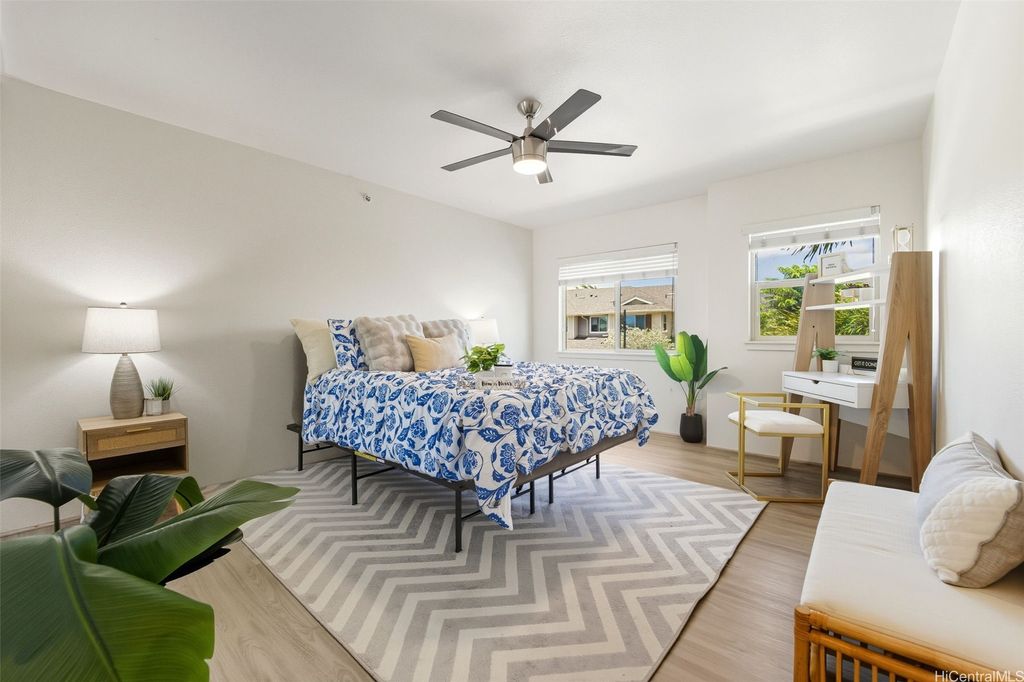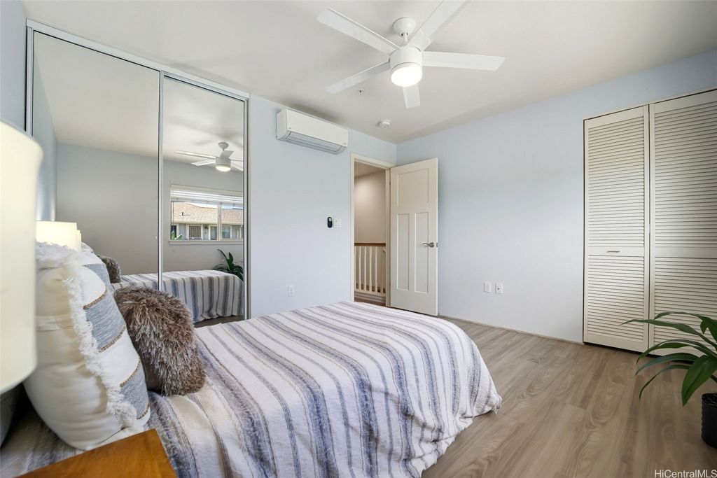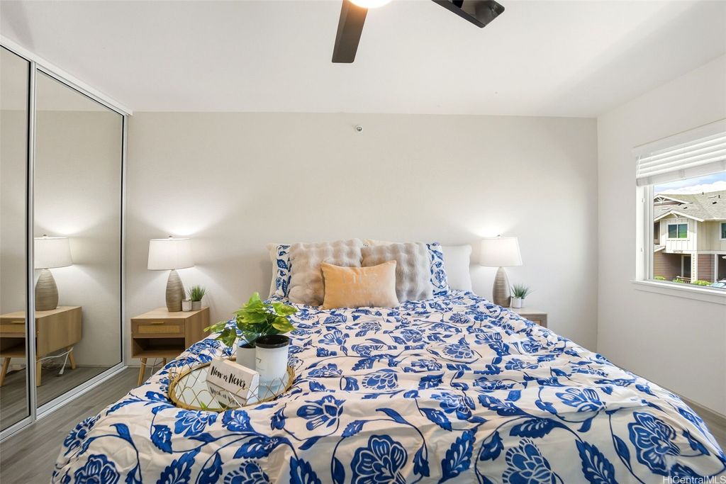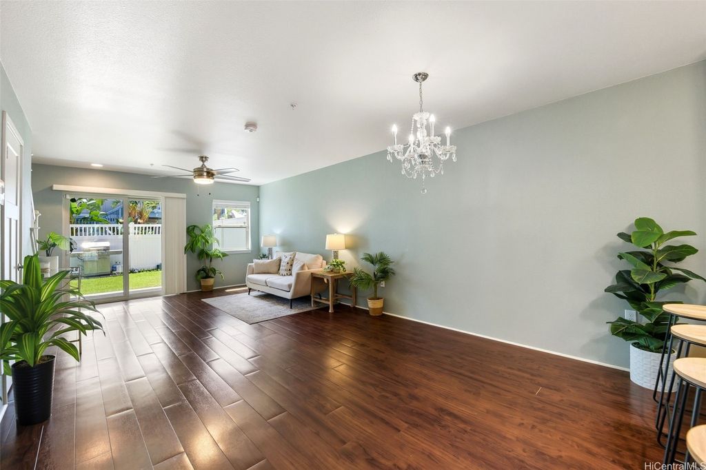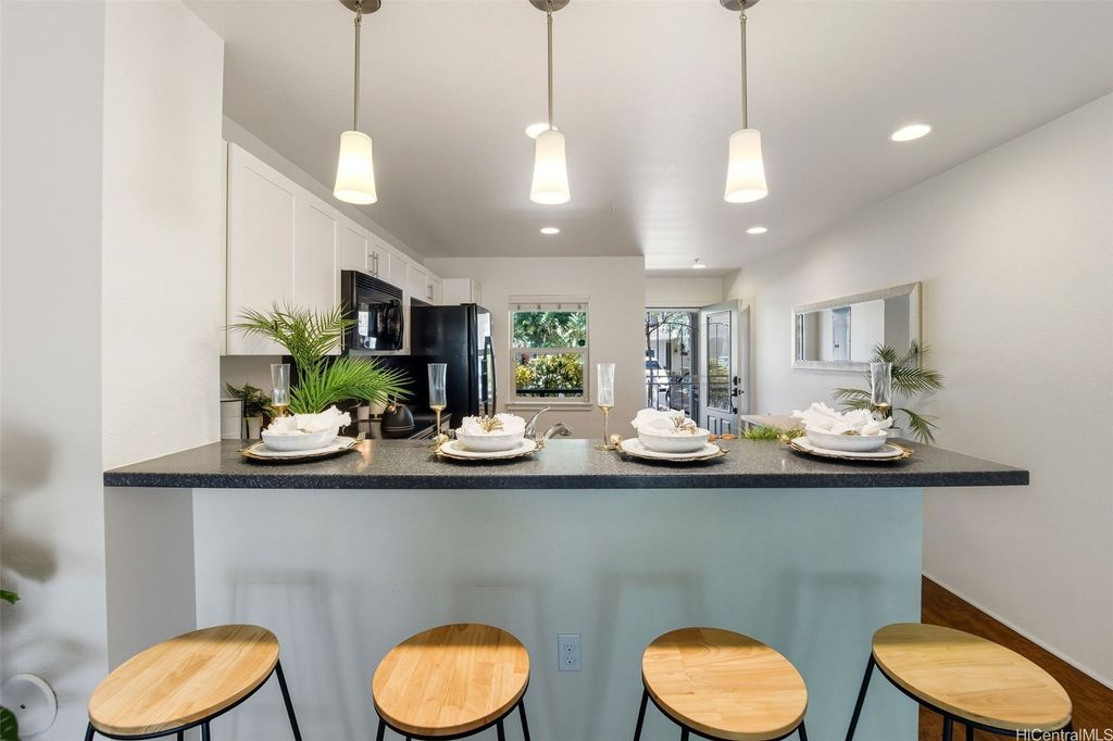 Rarely available in Mehana Olino! This one of a kind 2 story townhome has NO unit above or below and boasts one of the lowest maintenance fees in Kapolei, all while giving you the lifestyle you've been looking for. Featuring 2 full bathrooms upstairs, a convenient ½ bath downstairs, and 2 assigned parking stalls just steps away. Enjoy your own private backyard with low maintenance synthetic turf and a cozy lanai, perfect for relaxing or entertaining. Inside, you'll love the upgraded luxury vinyl plank flooring throughout, Corian kitchen counters, shaker cabinets, and newer appliances (dishwasher, washer, dryer). Split A/C units are installed in every room and living area to keep the home cool and comfortable year round, especially on the cooler side of the community. Mehana Olino offers incredible amenities including a community pool, dog park, jogging paths, playgrounds, multiple parks, and even a keiki racing park. All this while being minutes to schools, Target, Starbucks, Raising Cane's, restaurants, shops, and so much more. Don't miss your chance this rare home checks all the boxes! Schedule a private tour today.