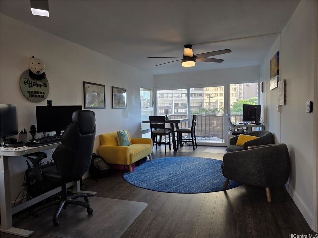 This move-in-ready 2-bedroom, 2-bath unit offers comfort, convenience, and style"”located on main bus lines and just minutes from Waikiki. Includes one dedicated parking stall. Enjoy a fully renovated kitchen and both bathrooms, featuring modern finishes and recently upgraded appliances. All-new flooring throughout enhances the clean, contemporary feel. Ceiling fans have been installed in every room, and upgraded window AC units provide efficient cooling. A standout feature is the enclosed living room, adding approximately 80 extra square feet of usable space"”ideal for a home office, media area, or guest lounge. Whether you're a first-time buyer, investor, or looking for a low-maintenance lifestyle near the beach, this property delivers.