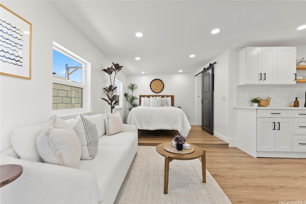 Today's #1 most sought after feature is multi-generational capability or rental income. This home checks all the boxes! Fully remodeled & transformed to offer refined simplicity in design, accented with modern finishes throughout: The main home is an 836 sf cozy 3 bedroom/1 bath open concept floor plan which manages to embrace the natural beauty of the outdoors while providing distinct living spaces. The 4th bedroom is a 360 sf DETACHED STUDIO with a full bath, kitchenette, spacious yard and private deck. Efficient use of space for both dwellings creates a sense of openness beyond the actual square footage. Brand new roof, Pella windows, double wall construction to interior and exterior, split AC in every bedroom and living area, stainless steel appliances, quartz counters, LVP and ceramic tile flooring, tiled shower surrounds with elegant shower glass paneling and recessed lighting. Each dwelling has its own private lanai and yard area, full sized washer & dryer and two parking each. Be the first to enjoy this newly remodeled home, hassle free and turn-key in Coconut Grove.