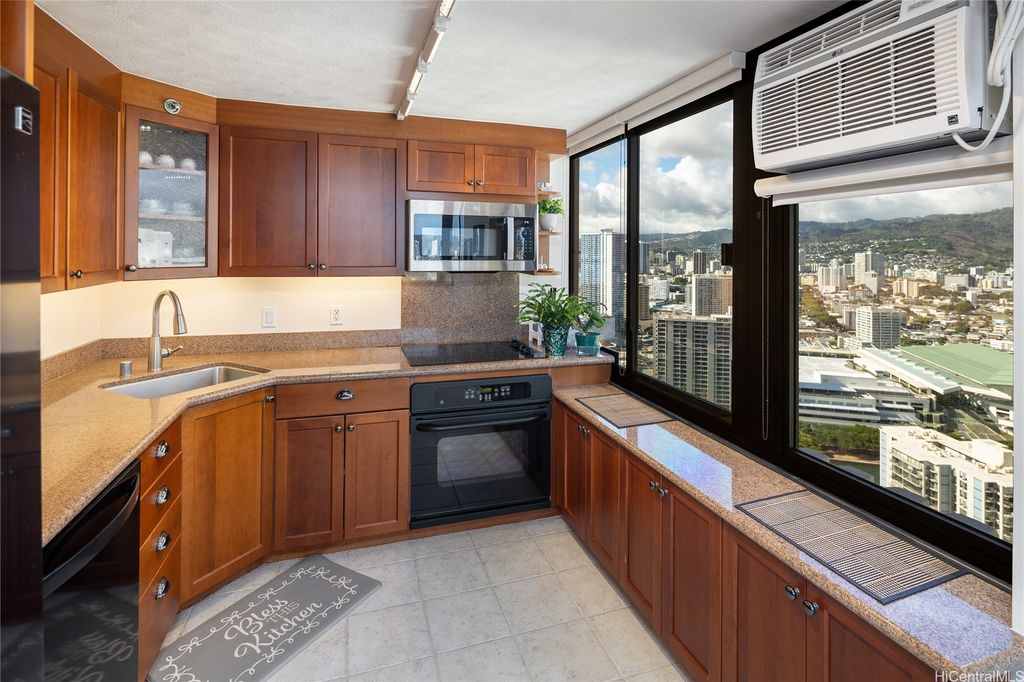 Welcome home to this ultra comfortable and spacious 2 bedroom, 2 bath unit with over 1,000 SQ FT of interior living space. Enjoy city, mountain, ocean, and Diamond Head views from throughout this unit. This unit comes fully furnished. All furnishings, cookware, and kitchen items were purchased within the last two years. See the pride of ownership in this well maintained sanctuary with soft wall to wall carpeting, cool AC, new window tint, and window shades. Conveniently located on the west side of Waikiki, out of the congestion and on the fringe of Ala Moana area. Close proximity to beaches, famous surf spots, Ala Wai Boat Harbor, world class shopping at Ala Moana Shopping Center, restaurants, eateries, and more. If you don't feel like going out then relax at home and enjoy some of the in-house amenities such as heated swimming pool, hot tub, putting green, rooftop deck with 360 degree views, BBQ areas, walking/jogging path, fitness center, and more. Don't miss this opportunity to own this turn key retreat in this quiet and mellow building with prompt elevators and only 4 units per floor.