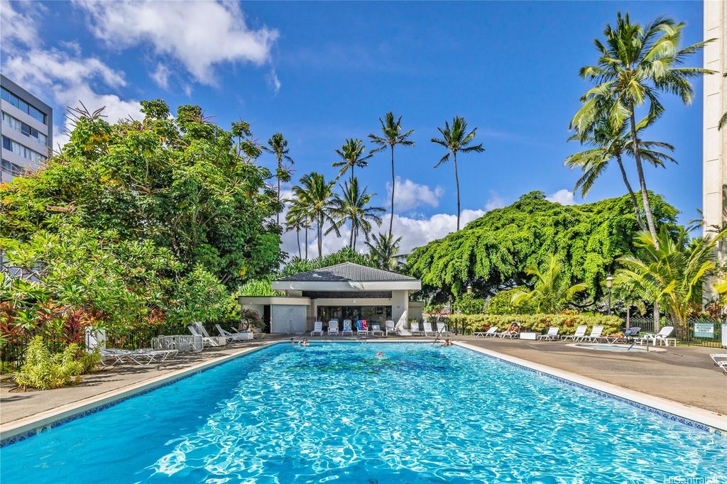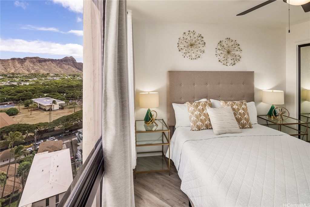 Welcome to your freshly renovated sanctuary at Liliuokalani Gardens, 1815 (King Tower)! 100% Hurricane coverage in place with no special assessment! Experience tranquil island living in this tastefully reimagined, never-lived-in oasis. Thoughtfully completed in Sept 2025, #1815 blends modern comfort with timeless serenity. Facing east, this home welcomes the sunrise in soft pastels, the rustle of coconut palms, and peaceful garden views rooted in royal legacy- this lush oasis once belonged to Queen Liliuokalani herself. Designed with privacy and safety in mind, this rare unit includes an in-home fire sprinkler system. Located just blocks from Waikiki Beach, The Zoo, Ala Wai Golf Course, Jefferson Elementary, Kapiolani Park, Kaimana Beach, and premier dining, this home is your serene retreat in a vibrant city setting. Resort style amenities include a koi pond, the largest residential pool in Waikiki, spa, BBQ pavilions, pickleball/tennis courts, EV charging stations, and 24/7 security-all surrounded by lush tropical gardens. HOA fee includes internet, cable, hot water, water and sewer. Assigned parking $300/year. 90-day minimum rental.