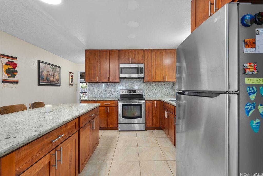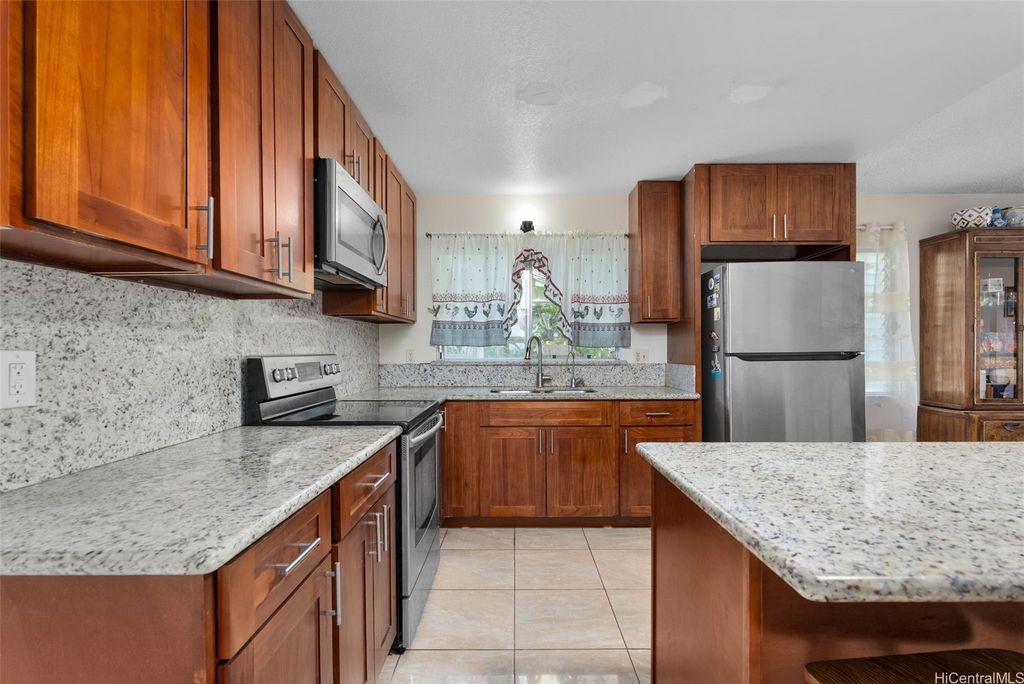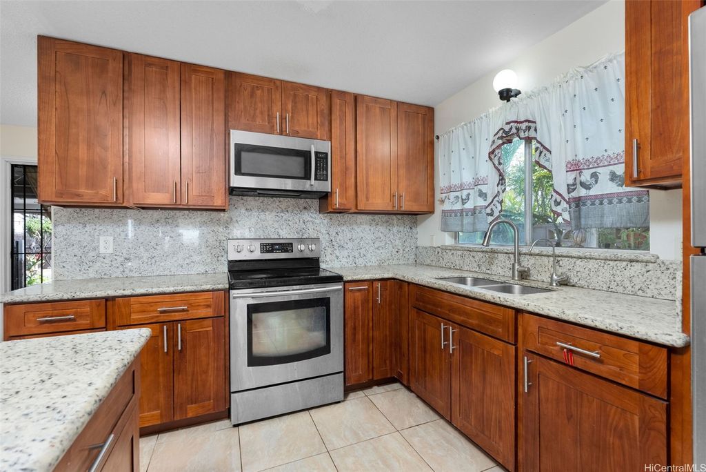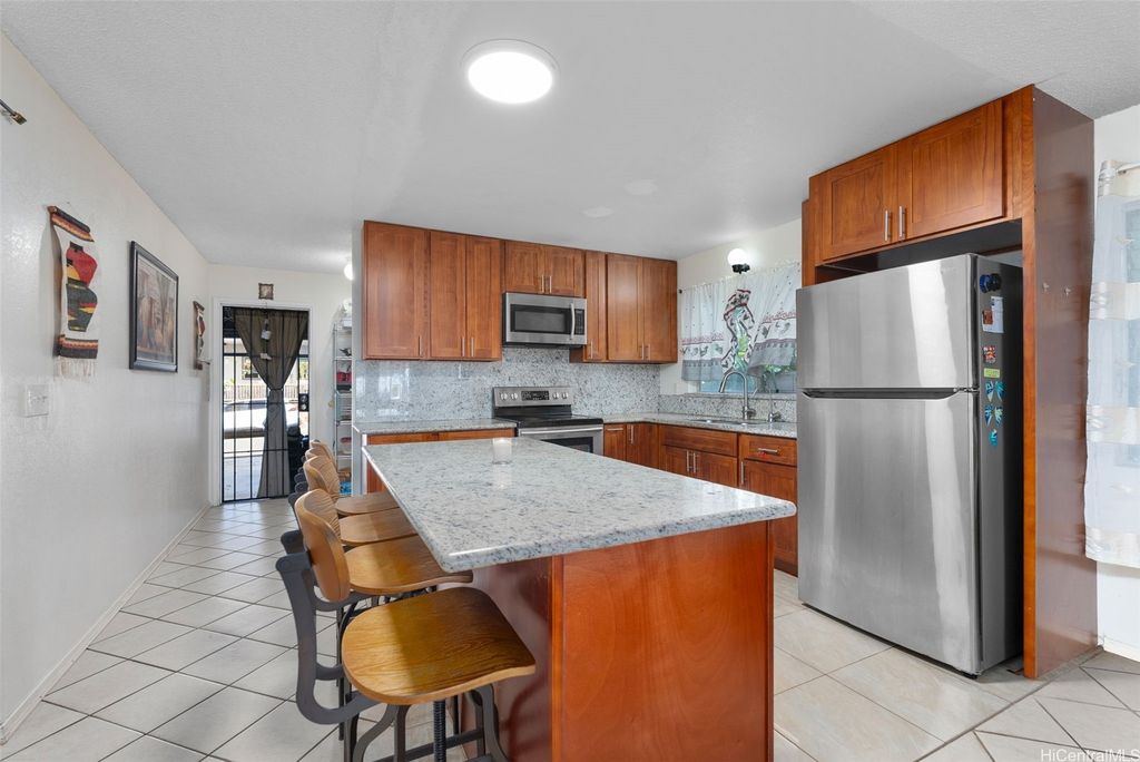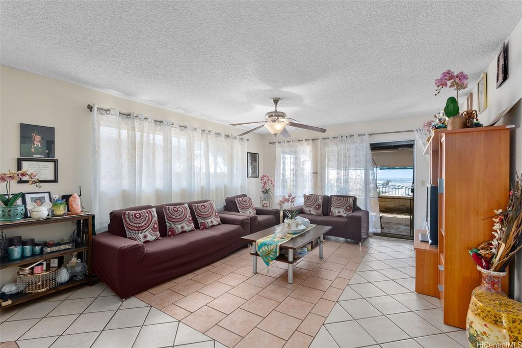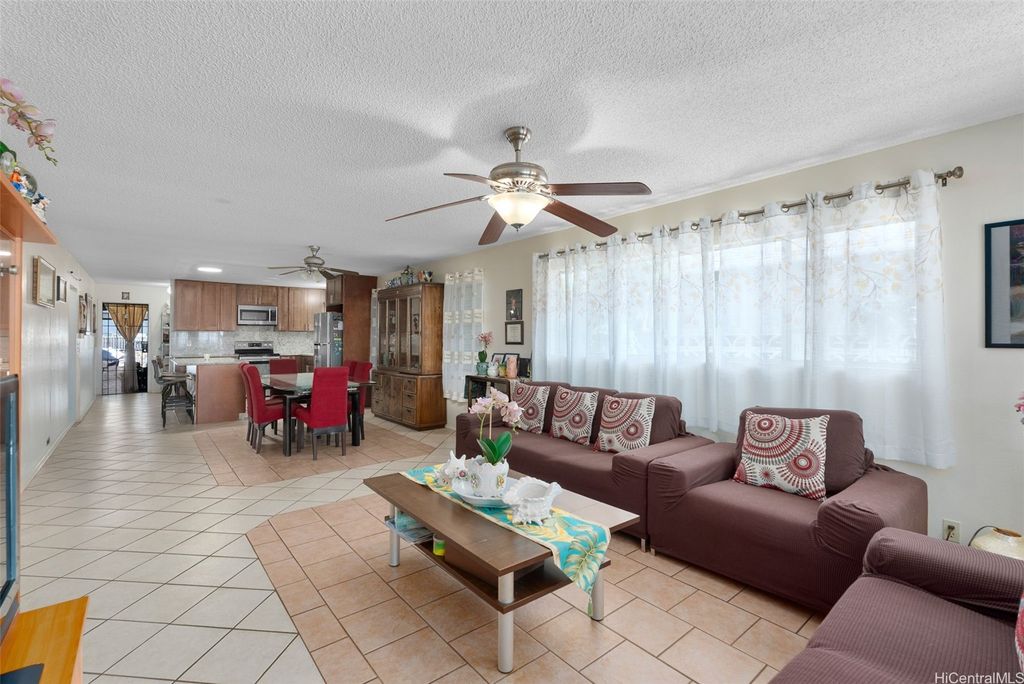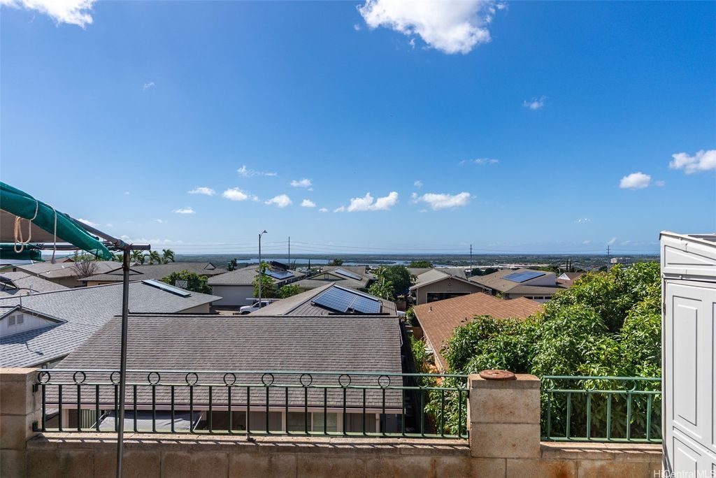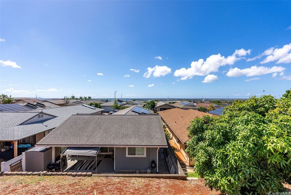 This well-maintained property has been a home to a family of almost 2-decades with a view of the coastline and Diamond Head right from your backyard. Imagine your view when relaxing in the morning with your coffee and/or relaxing time at days end. That's right, this panoramic view of the ocean and mountain directly from your future home. Come view this 3-bedroom, 2 full bath with a 2-car garage and driveway for additional parking home in Village Park. The flooring is equipped with ceramic tile throughout. The kitchen has been updated with a spacious countertop and island which opens to the living room perfect for hosting and gatherings. A spacious primary bedroom that will serve as your own sanctuary and two standard sized bedrooms. There are 20 owned photovoltaic panels as an added bonus lowering your electricity consumption and new roof in 2015. This home is in close proximity to school, public park, freeway access, Queens Medical Center, Ka Makana Alii, Walmart, Times and more.