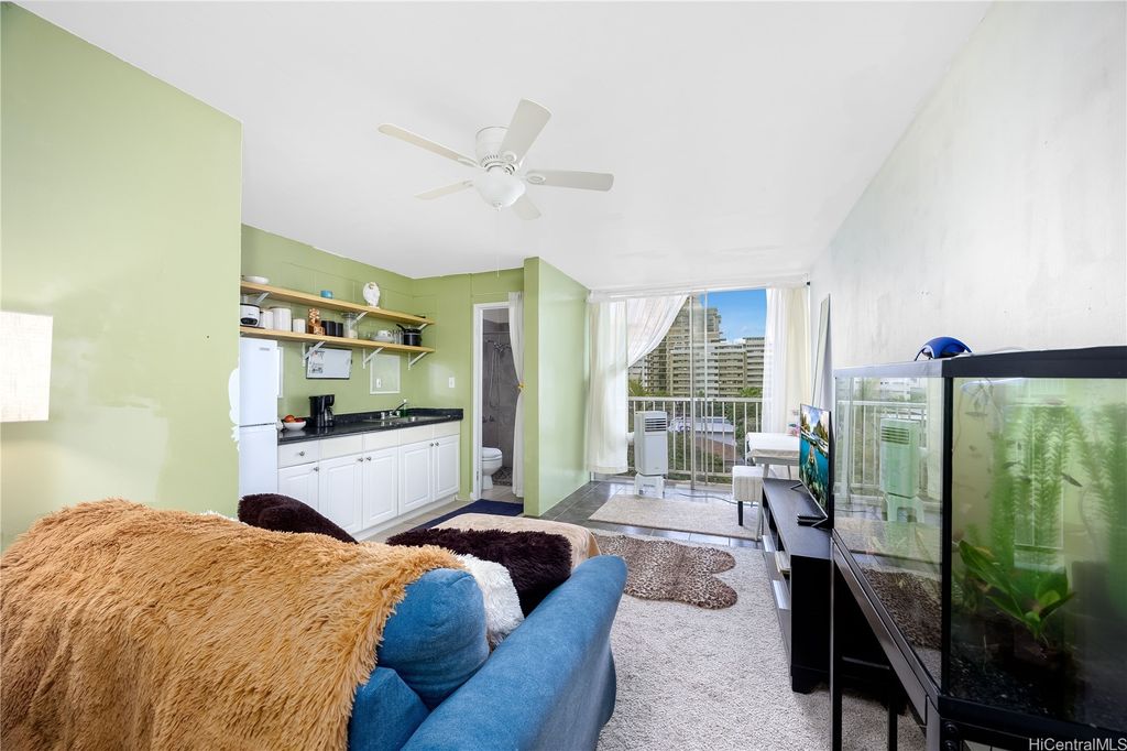 Enjoy Waikiki living with city views and your own front-row seat to the weekly Friday night fireworks! This charming and efficient studio features a kitchenette and bath. This studio unit offers an excellent location just moments from world-famous Waikiki Beach, shopping, dining, and entertainment. The maintenance fee conveniently includes essential utilities such as electricity, hot water, sewer, water, and common area expenses. The building provides secured entry and community laundry for convenience. Whether you're looking for a full time residence, vacation getaway, or investment property, this unit puts you right in the heart of it all. Don't miss out on this ideal investment that combines convenience with the comfort of island living.