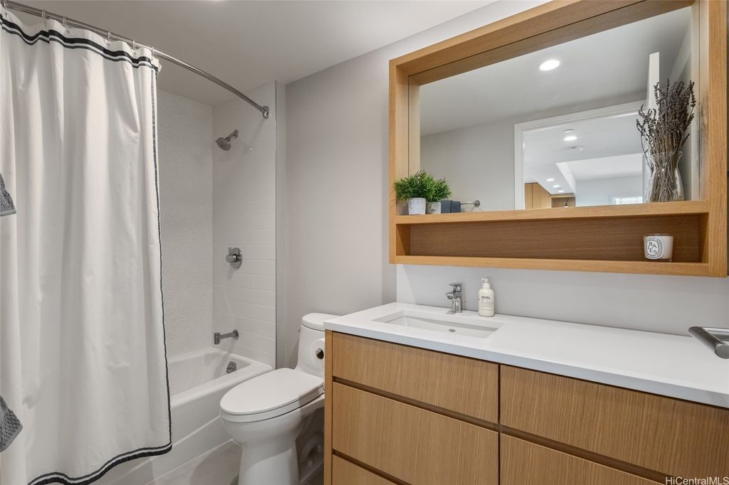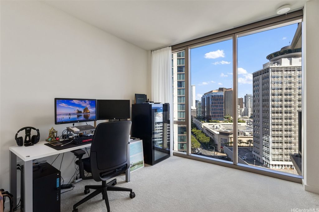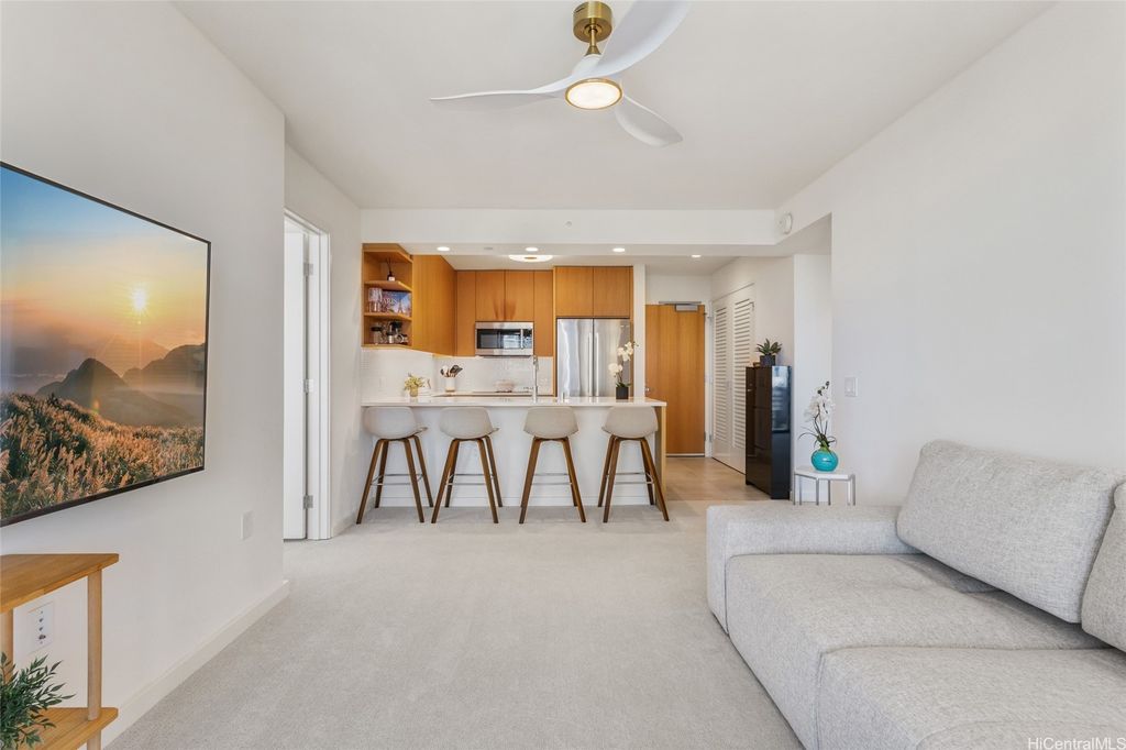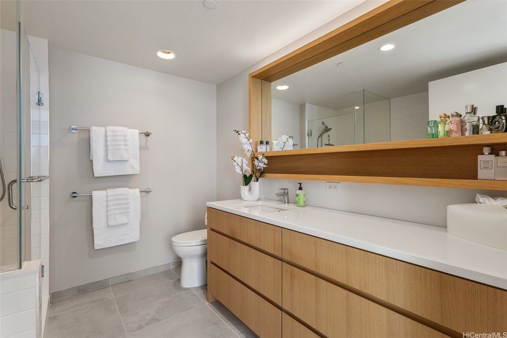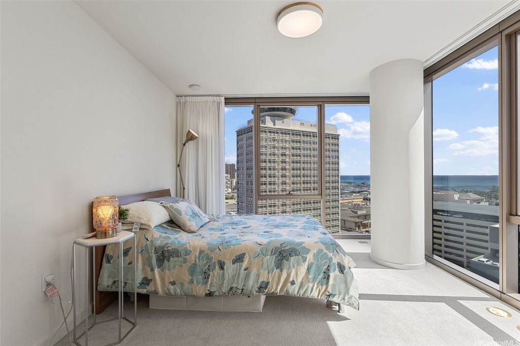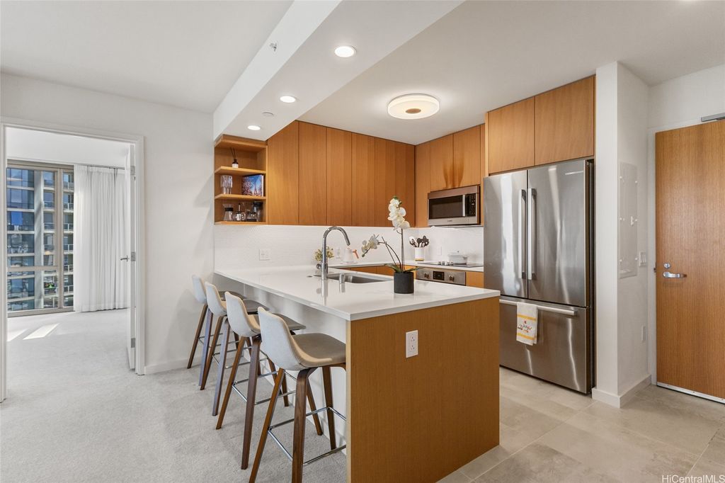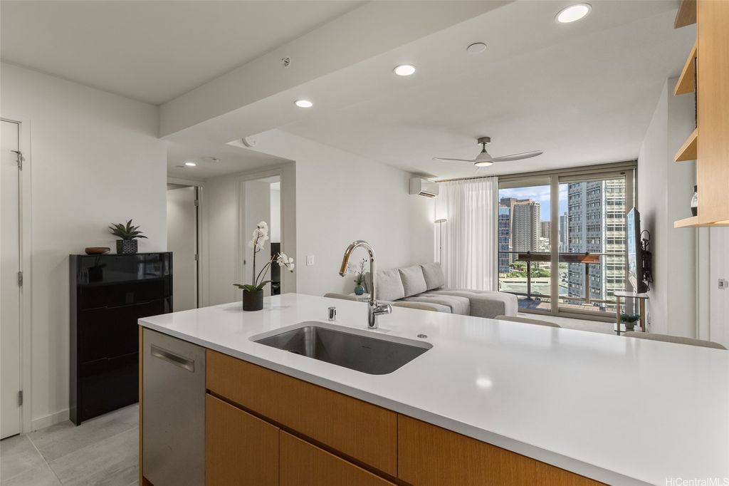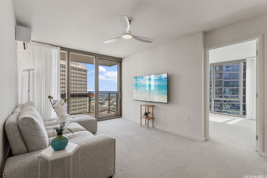 In a city full of new towers, SKY ALA MOANA WEST offers something rare, a luxury residence offering a peaceful retreat in the heart of Honolulu. Unit 1801, the premium "01" corner stack, offers blue ocean and city views through floor-to-ceiling windows, filling every room with light and inspiration. This 2-bed, 2-bath home is crafted for both beauty and function, featuring Bosch stainless steel appliances, quartz countertops, primary bathroom soaking tub, a walk-in closet, custom tailored drapery, and two covered parking stalls with storage. But what truly sets Sky Ala Moana apart is a healthy lifestyle at your fingertips: unwind in one of Honolulu's most expansive resort-style amenity deck with a pool, dedicated lap pool, spa, cold plunge, saunas, dog park, BBQ cabanas, and party rooms, plus on-site dining at Sera Hawaii and Michelin recognized Korean restaurant, Okdongsik. All within close proximity to Ala Moana Center and Ala Moana Beach Park. At Sky Ala Moana you don't just buy a condo, you claim a vibrant, connected way of living that blends luxury, convenience, and wellness.