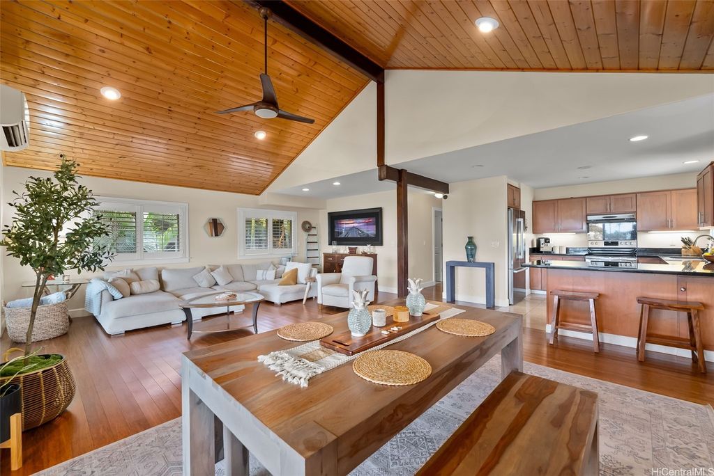 VA assumable loan at 4.25%!! This beautiful 2-bedroom, 2-bath home is located in the heart of Haleiwa town and just moments from a beautiful beach. Live the relaxed North Shore lifestyle just across from the water at Ali"˜i Beach Park. This well-maintained two-story home, built in 2012, blends comfort and convenience in one of O"˜ahu's most sought-after beach towns. Inside, you'll find an open-concept layout with high ceilings, hardwood floors, and modern finishes. The spacious living area connects to a functional kitchen, dining space, and a covered lanai, perfect for everyday living or entertaining. A fenced yard offers room for pets or outdoor fun, and the generous 2-car garage provides ample storage. Enjoy walking or biking to nearby shops, restaurants, and world-class surf. Whether you're looking for a full-time home, weekend getaway, or investment, this is a rare Haleiwa gem!