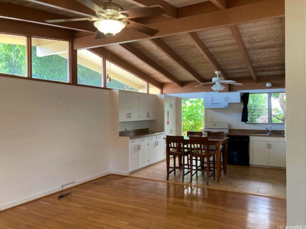 The family house has "home" feeling, is cool and shaded under two mango trees, and surrounded by green. Large open concept living room filled with bright sunny light. The high living room ceiling has wooden beams. Revitalized wood oak floors. Fairly large bedrooms, and the primary bedroom has its own sink and toilet. Big open kitchen with loads of storage, a Window over the sink gets valley breezes. Lime, plumeria, and lichee trees. Private driveway into a flag lot nestled in a quiet and safe neighborhood. Huge roomy carport with outside parking. Location is in the heart of town, close to beaches, Diamond Head, Kahala Mall, Kapiolani Park, Waikiki, Foodland, Safeway, Times, and Long's (CVS). Nearby to schools, University of Hawaii, Kapiolani Community College (KCC), Chaminade, Sacred Hearts Academy, and the famously good school - Liholiho Elementary School, only 2 blocks away. Up the hill from Iolani School. The bus stops very close. Do not disturb the tenant. ADU Permit Approved.
