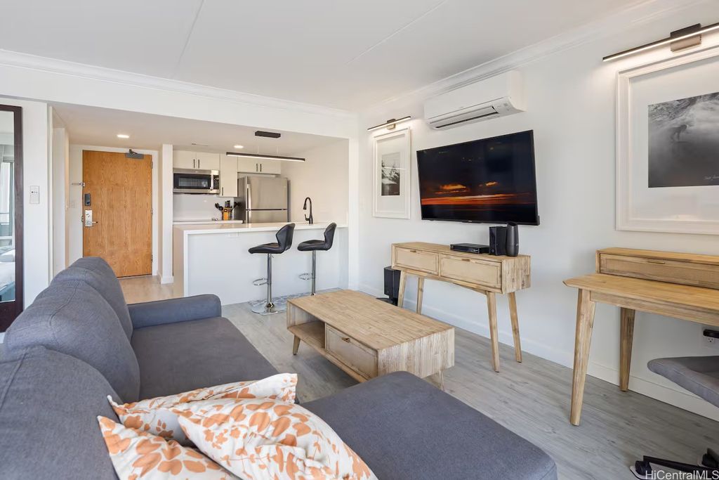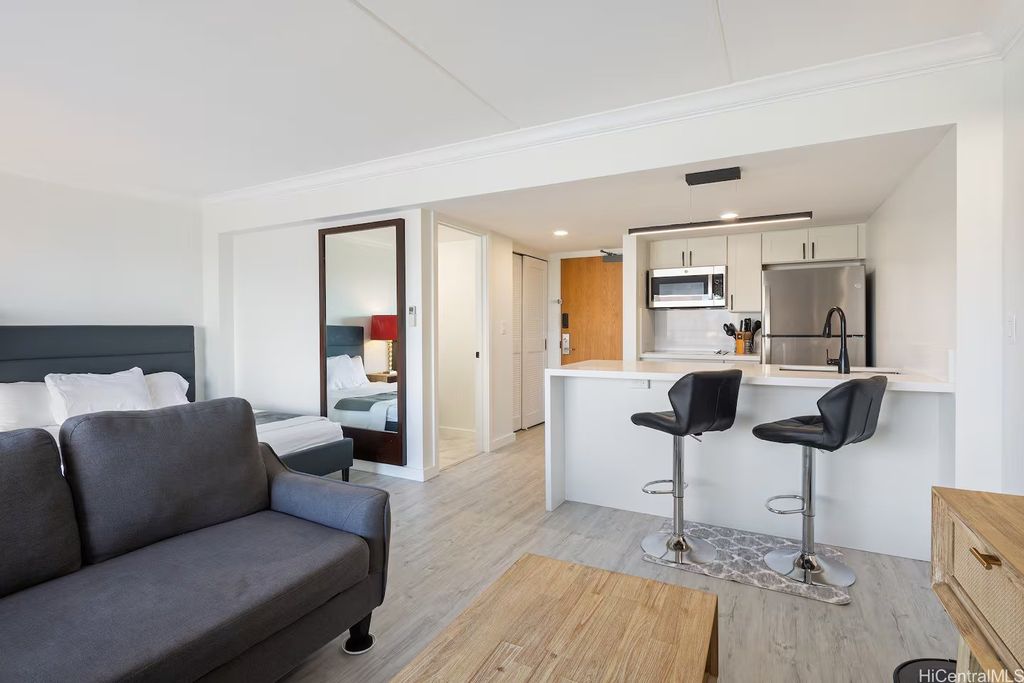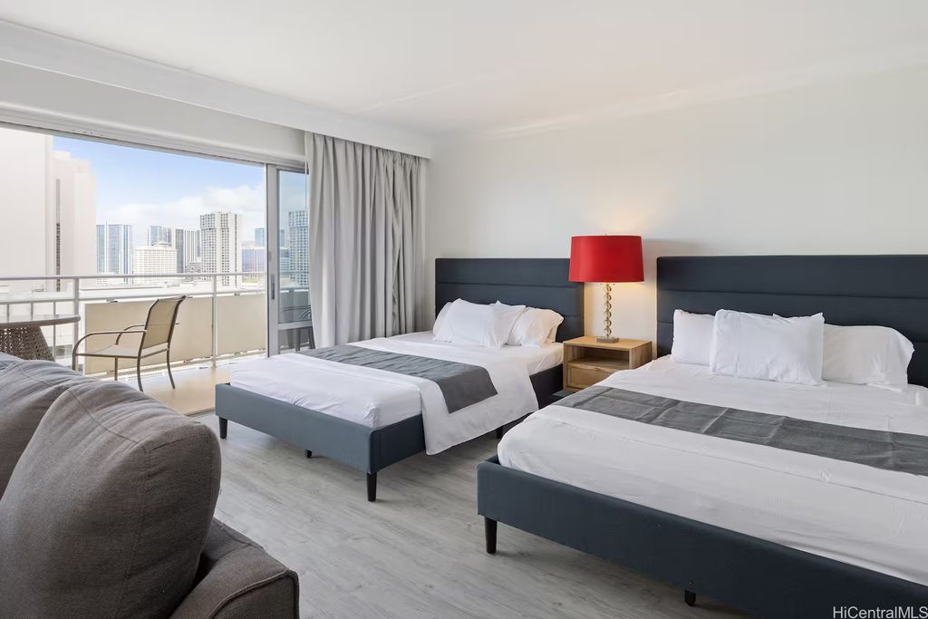 All Brand-New Remodeled 2023 Ocean Marina Sunset Views at Ilikai! This unit has the best direct ocean views available. While relaxing in your spacious condo or sitting on your shaded lanai, gaze out the stunning blue ocean and watch the sail boats or beautiful Hawaiian sunsets. This beautiful, completely renovated condo is outfitted, a 55" flat screen smart TV, internet work desk, kitchen with breakfast bar, fridge, and microwave. The 500sf condo with a huge 120sf lanai has gorgeous modern style furniture, including two queen beds and a sofa bed. The condo also has a split-system air conditioner and free high-speed Internet. The Ilikai is a landmark condominium hotel on Waikiki beach, located between the 5 star Hilton Hawaiian Village and Ala Moana Beach Park. There are dozens of restaurants, shops and attractions within easy walking distance.