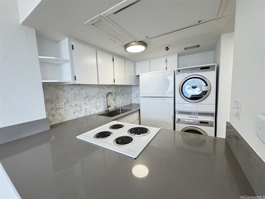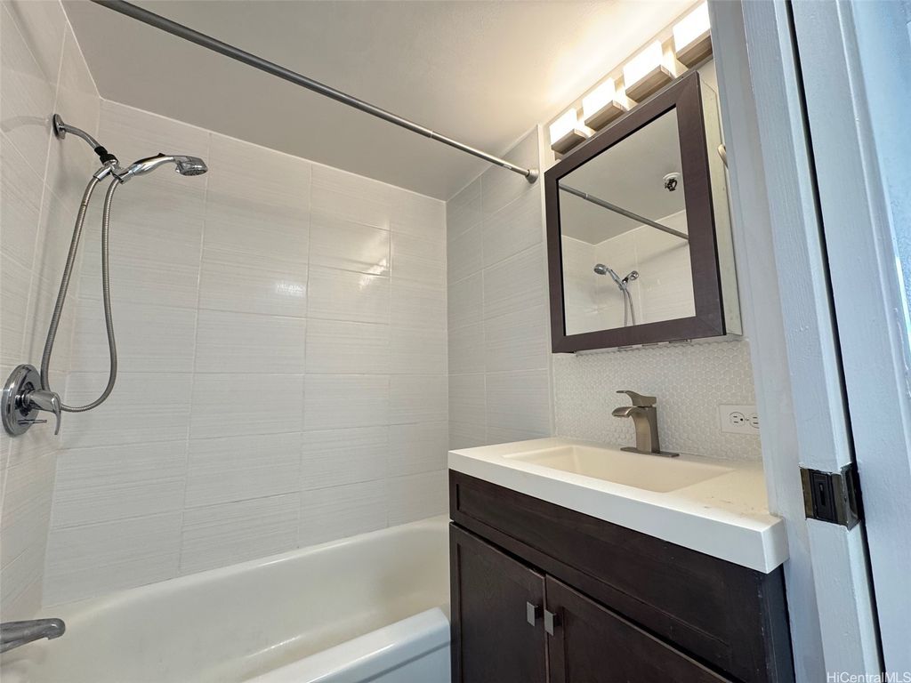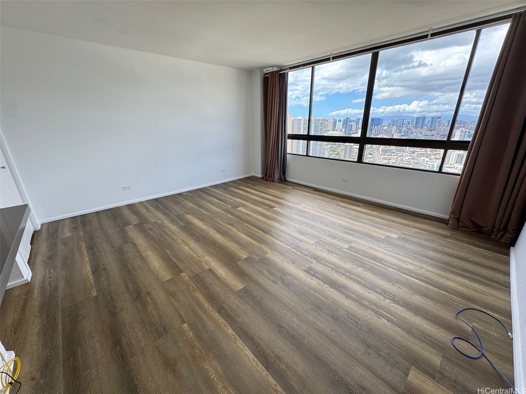 Newly renovated studio unit with 1 bathroom and 1 assigned parking space at Iolani Court Plaza. This charming unit boasts modern vinyl flooring, sleek new cabinets, quartz countertops, and an updated bathroom. Conveniently located near Iolani School, UH Manoa, Waikiki, Market City Shopping Center, and major bus lines. Enjoy access to excellent amenities, including BBQ grills, a swimming pool, jacuzzi, party room, tennis courts, and a putting green. All utilities included. The unit is available from 10/15/25. No pets and no smoking allowed. Don't miss this opportunity!