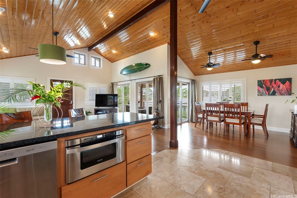 This beautiful 3-bedroom, 2.5-bath home in Haleiwa Town offers an exceptional opportunity to live just across the street from the beach. Surf, swim, or play, all just a short distance from your front door at Ali'i Beach Park. Built in 2012, this home features high ceilings, hardwood floors, ample storage, a large 2-car garage, and a spacious layout designed for comfortable living. The open-concept living area flows seamlessly, creating an inviting space for relaxation and entertainment. The flexible ground-floor area offers the perfect opportunity to work from home or accommodate guests. Enjoy the convenience of modern amenities and the proximity to local shops, restaurants, and the beach. With its prime location and excellent features, this property is a must-see for those looking to embrace the vibrant North Shore lifestyle.