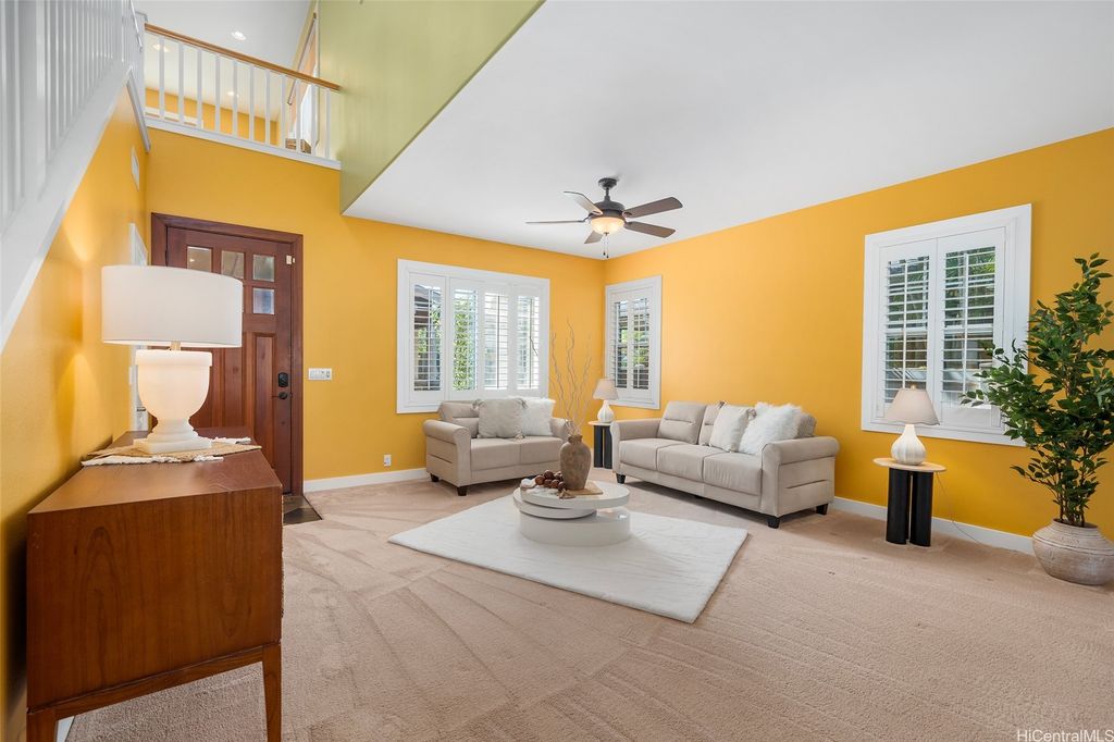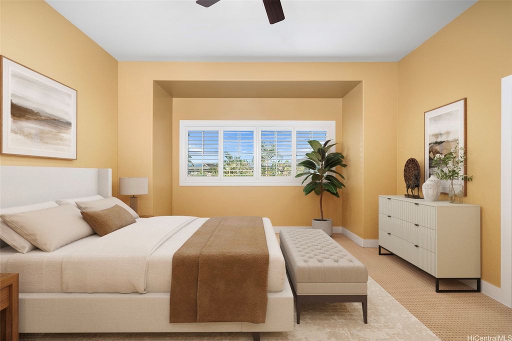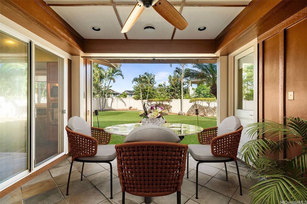 Escape to your own private oasis in this 4-bedroom, 3.5-bath home in the desirable Ewa by Gentry Haleakea neighborhood. This energy-efficient property features 23 owned PV panels, two Tesla batteries, solar water heater, and water filtration system, ensuring comfort and savings. Stay cool year-round with central AC. Enjoy the perfect blend of indoor and outdoor living with a beautifully covered lanai and a spacious backyard. A separate 1-bedroom, 1-bath casita offers a private space for guests or a home office. Located close to several nearby parks. This home combines modern amenities with a serene island lifestyle. Sold as-is.