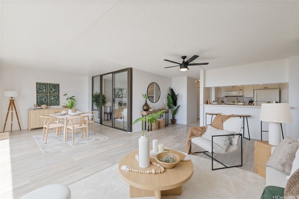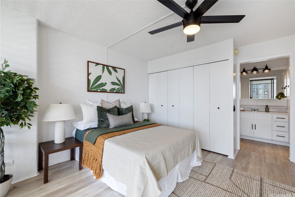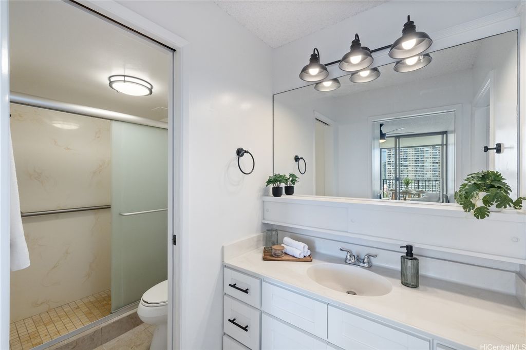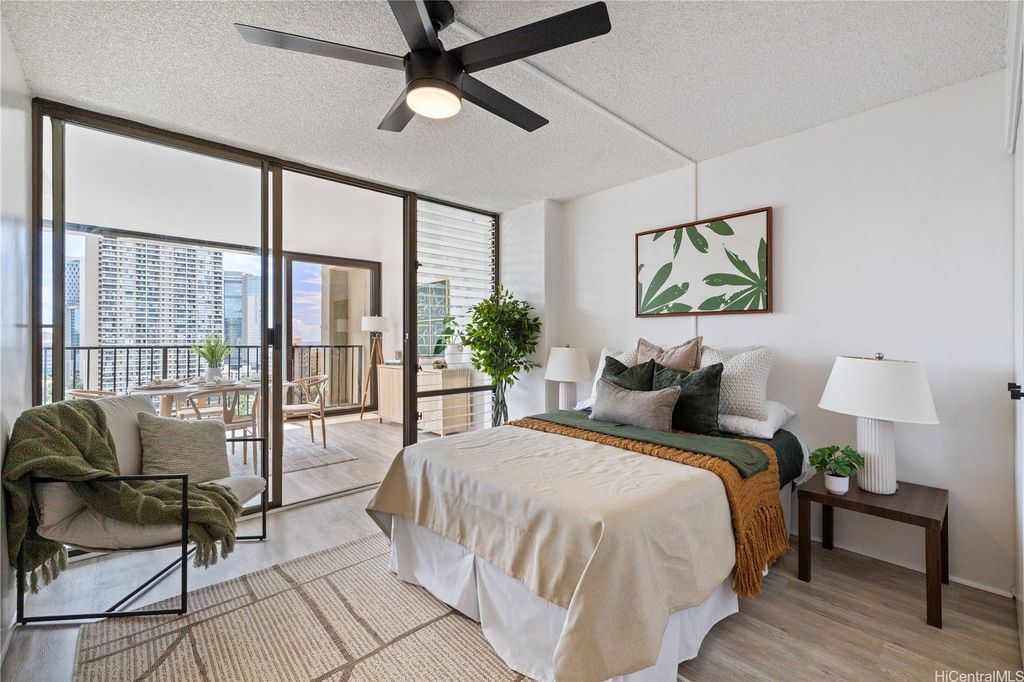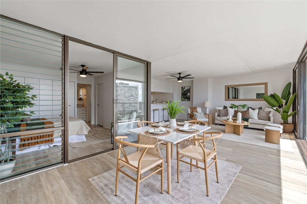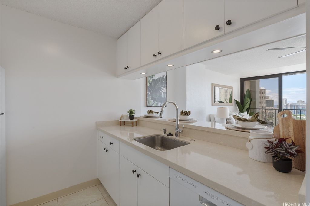Wake up every day to the beauty of Honolulu in this captivating 1-bedroom, 1-bath home at Kaimana Lanais. With 810 sq. ft. of expanded interior space, the enclosed lanai creates an airy, open layout designed for both relaxation and entertaining. Freshly updated with luxury vinyl flooring, new light fixtures, sleek Corian countertops, and crisp paint, this residence blends modern comfort with timeless island style. Floor-to-ceiling multi-slide doors bring in dazzling views of the Waikiki's skyline, vibrant city, ocean, Diamond Head, and spectacular sunsets"”your personal postcard from paradise. The walk-in shower adds a touch of everyday luxury, while building amenities elevate your lifestyle with a pool, recreation room, surfboard racks, secure entry, and pet-friendly living. Perfectly located in Kapiolani, you're minutes from Waikiki, Ala Wai Golf Course, UH, beaches, parks, shopping, and entertainment. Move-in ready, meticulously maintained, and waiting for you"”schedule your showing today!