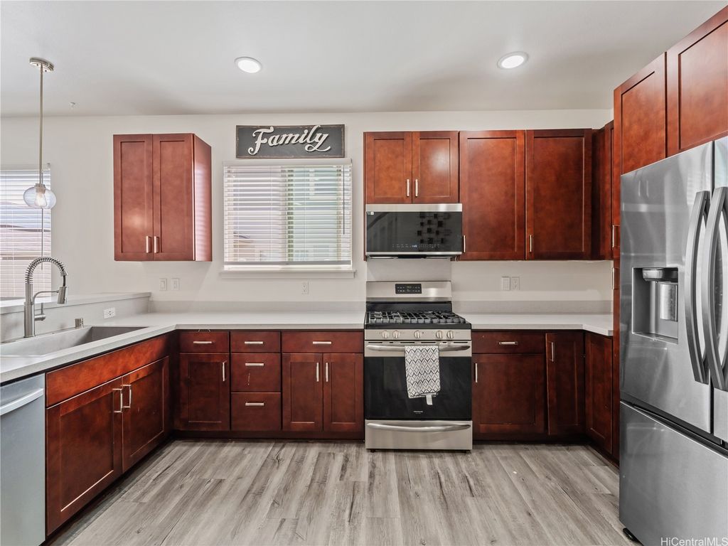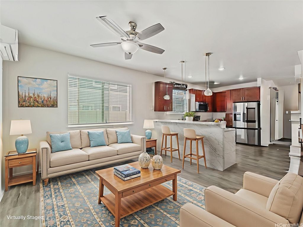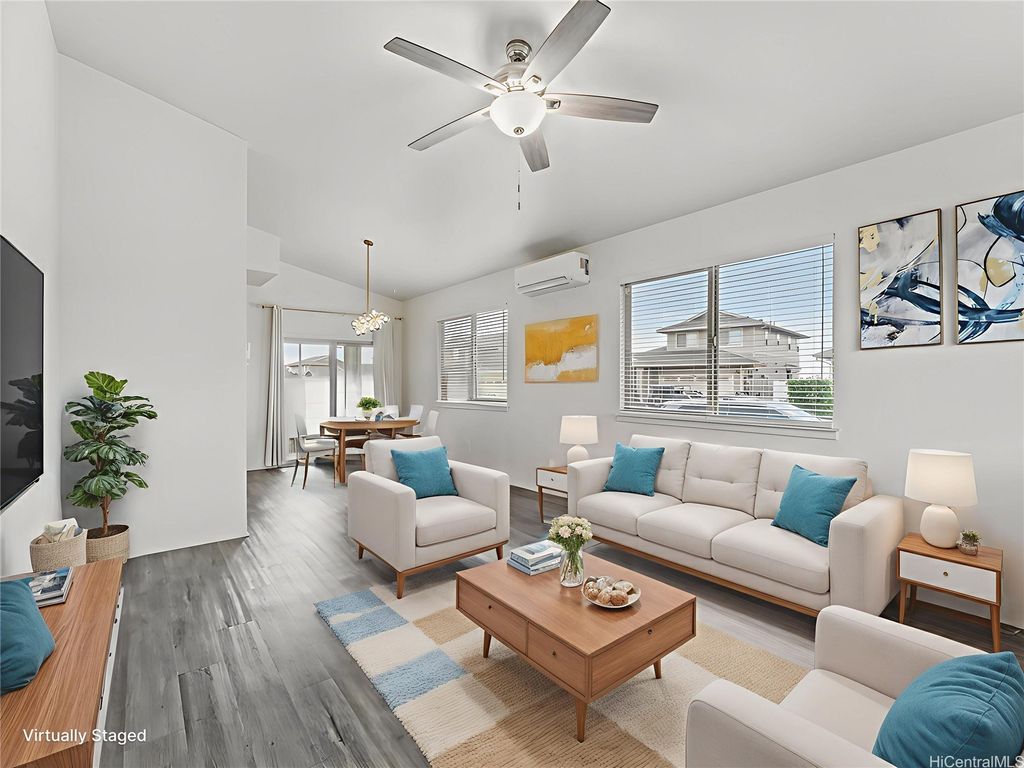 Dreaming of your slice of paradise in the thriving Ho'opili community? Don't let this immaculate 4-bed, 2.5-bath gem in Iliahi slip away"”it's a spacious stunner, just as amazing as the day it was built, featuring sleek builder-installed vinyl planks on the first floor and plush, inviting carpeting on the stairs and second level for that perfect blend of style and comfort. Stay blissfully cool through Ewa's hot, hot, summers thanks to owned solar panels and a battery system"” it'll keep you feeling auurite! Transform your private yard into an entertainer's haven for unforgettable evenings with friends under the stars. And the location? Just mere steps from Ka Makana Ali'i Mall, UH West Oahu, Costco, Walmart, the Kroc Center.. literally! Right in between of Ewa Beach and Kapolei. Don't feel like driving? It's a quick walk/jog to the Konane neighborhood park, community center, dog park, and three handy rail stations. You've been waiting for a home like this! Come check 'em out! Mahalo!
