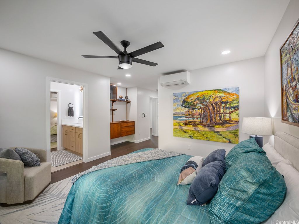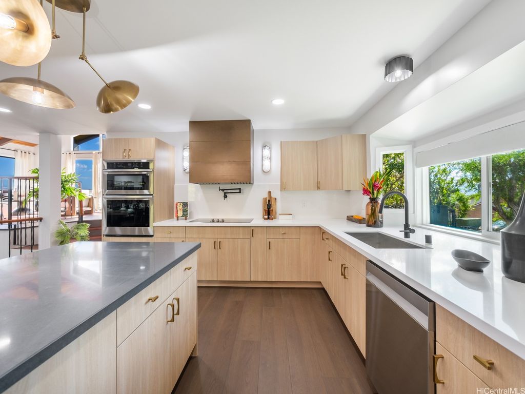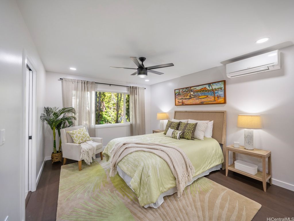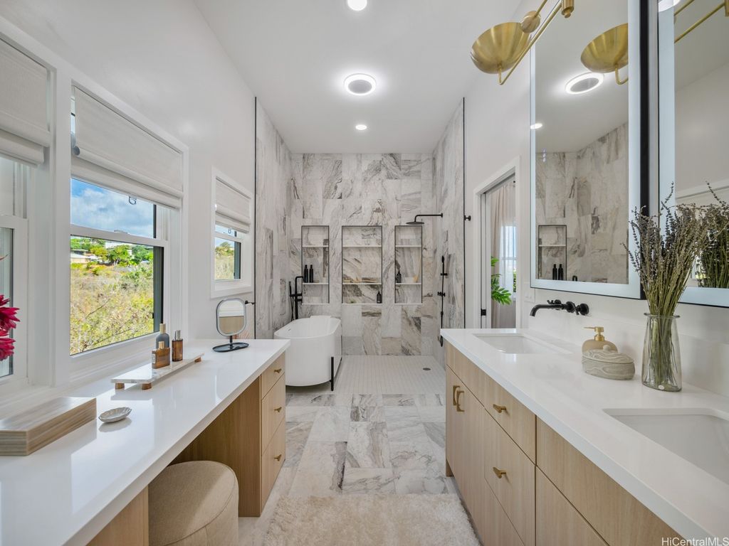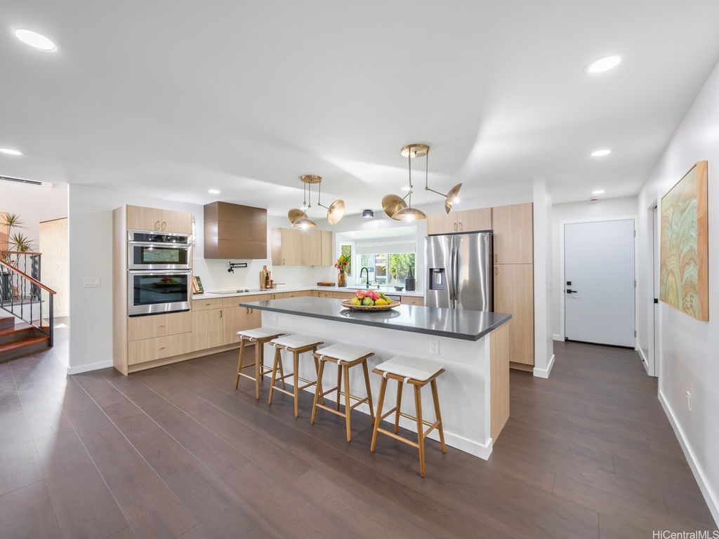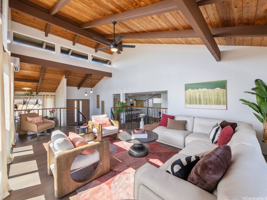 Welcome to this unparalleled residence that rivals the most prestigious neighborhoods and redefines luxury living in Aiea Heights. This exceptional home has been fully + meticulously renovated and boasts expansive ocean views, 5 spacious bedrooms, 3.5 bathrooms and sits on an oversized 20,711 sf lot. With beautiful high ceilings and steel-frame construction, this home offers unique mid-century modern architecture that flows seamlessly throughout the indoor and outdoor spaces. The primary bedroom suite on the main floor is a haven of tranquility, complete with a large, luxurious en suite bathroom that promises a spa-like experience every day. Designed for both relaxation and entertainment, this home features a wrap-around deck, sophisticated cigar + whiskey lounge, an indoor sauna, and a rumpus room with a wet bar"”perfect for hosting guests or unwinding in style. Located on a highly desirable street with underground utilities and great curb appeal. This property also holds potential for future development on the lower part of the lot, extending down to the street below, offering possible investment opportunities.