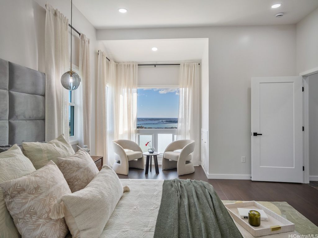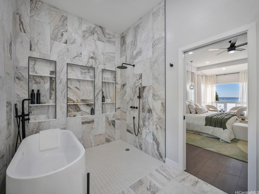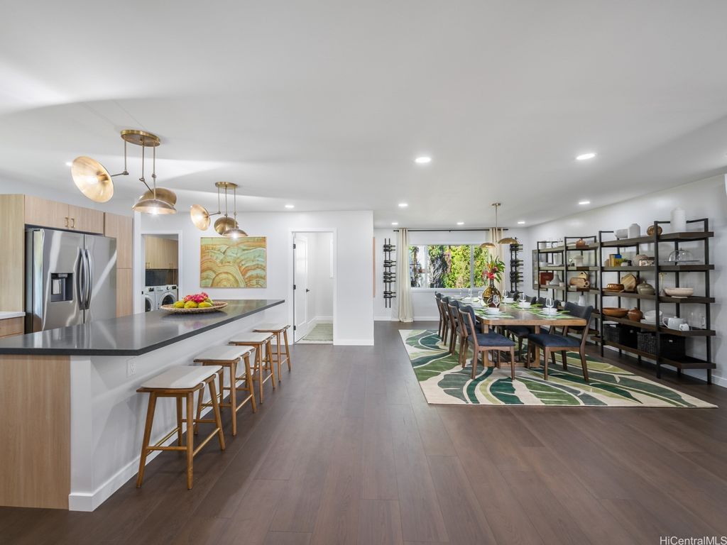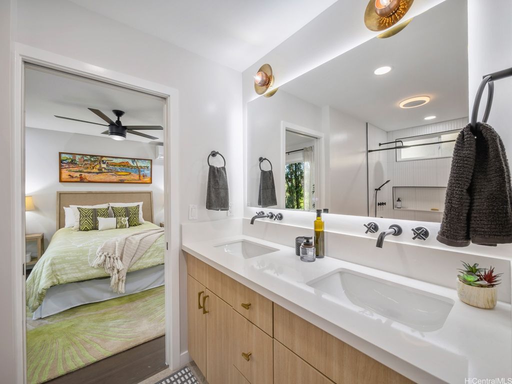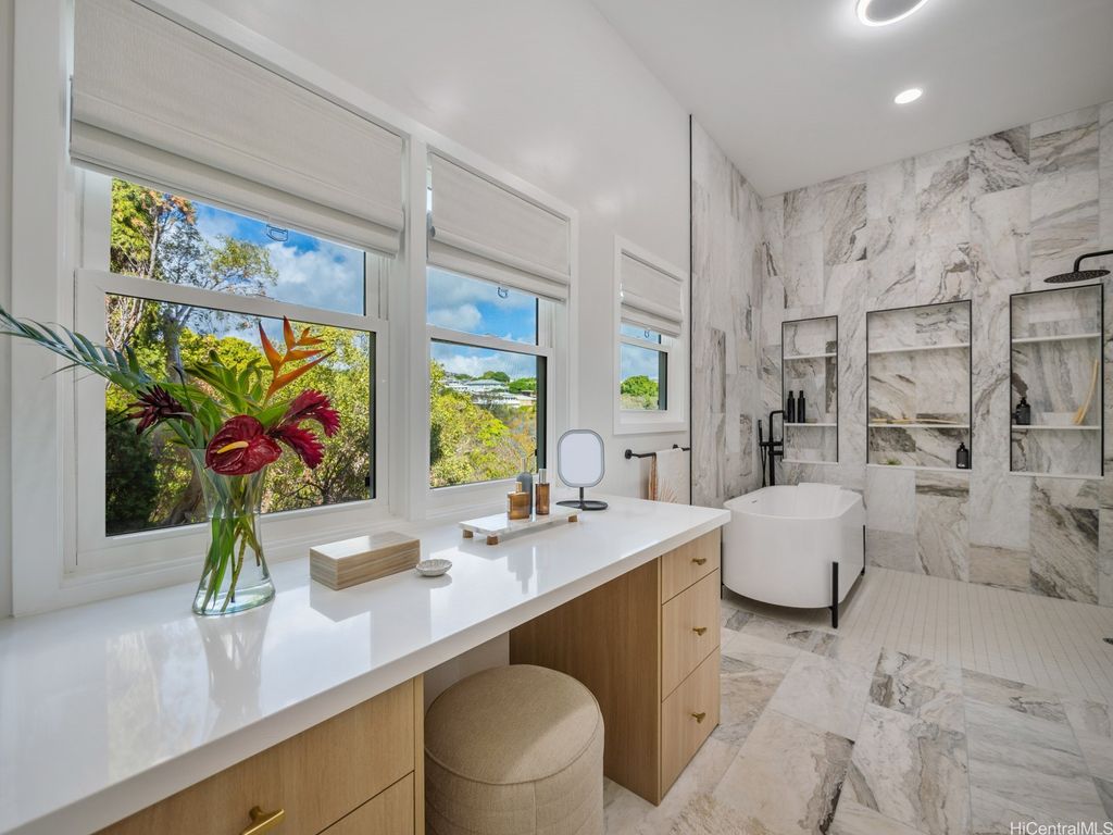 Welcome to this unparalleled residence that rivals the most prestigious neighborhoods and redefines luxury living in Aiea Heights. This exceptional home has been fully + meticulously renovated and boasts expansive ocean views, 5 spacious bedrooms, 3.5 bathrooms and sits on an oversized 20,711 sf lot. With beautiful high ceilings and steel-frame construction, this home offers unique mid-century modern architecture that flows seamlessly throughout the indoor and outdoor spaces. The primary bedroom suite on the main floor is a haven of tranquility, complete with a large, luxurious en suite bathroom that promises a spa-like experience every day. Designed for both relaxation and entertainment, this home features a wrap-around deck, sophisticated cigar + whiskey lounge, an indoor sauna, and a rumpus room with a wet bar"”perfect for hosting guests or unwinding in style. Located on a highly desirable street with underground utilities and great curb appeal. This property also holds potential for future development on the lower part of the lot, extending down to the street below, offering possible investment opportunities.