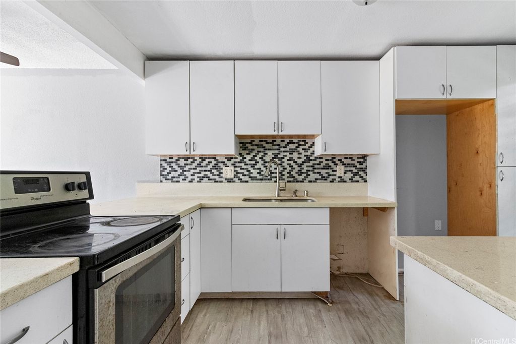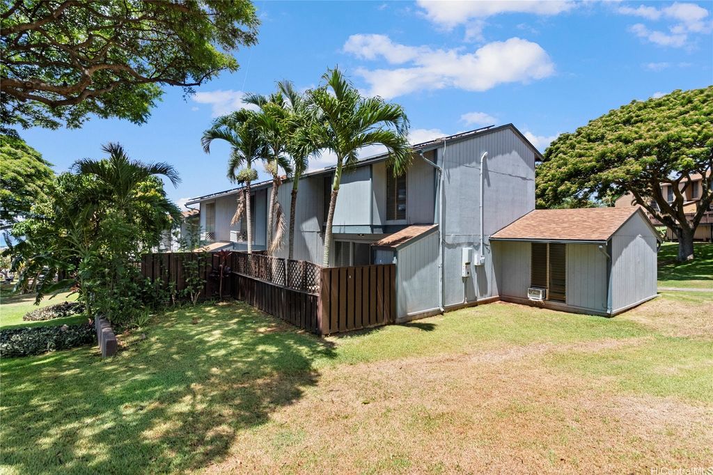 This spilt level townhome with no one above or below, 4 bedroom 2 bath townhome w/2 assigned parking spaces and fenced back yard has over 1200 sq. ft. of living space and storage. Nice floor plane that includes primary bedroom & full bath on 1st floor w/walk in closet and a separate laundry room. Located in upper Makakilo two blocks from Maukalani elementary school.