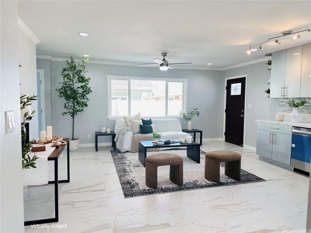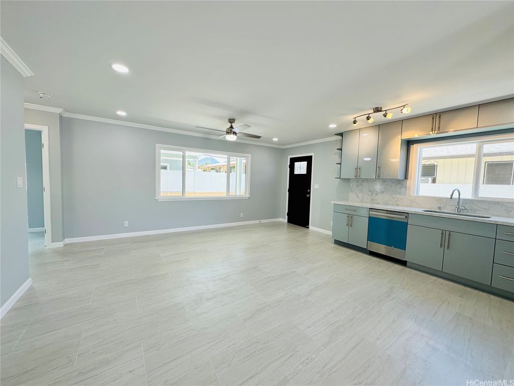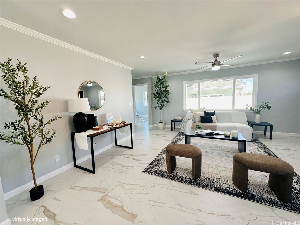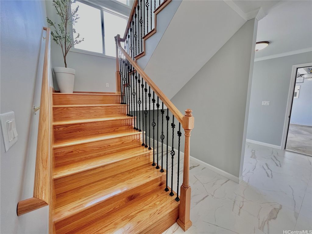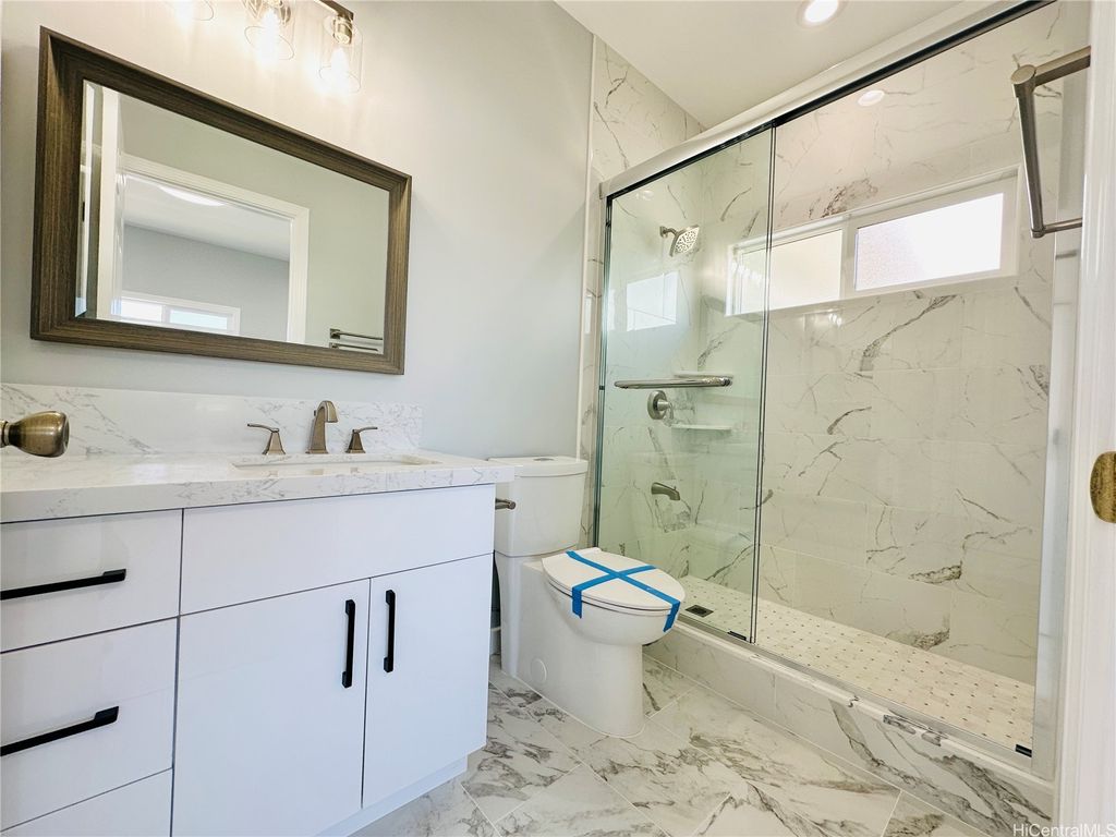 Stunning brand new constructed and beautifully designed contemporary 2-story home featuring 5 bedrooms, 4 bathrooms & 2-car garage with quality materials and finishes. Highlights include porcelain tiles, luxury vinyl plank flooring, recess lights, beautiful kitchen cabinetry & countertops, split AC, and more. This property offers a flexible floor plan, great for extended family living. Upper level: 3/2 with full kitchen, dining, living room, and a spacious open lanai for unwinding after a long day. Lower level: 2/2 with wetbar, family room, and a covered patio perfect for the backyard BBQ and entertaining. The open-concept kitchen flows effortlessly into the dining and living areas, creating the perfect space for family gatherings and lasting memories. Large spacious yard for entertaining or gardening. Fully fenced with a motorized gate for privacy. Located near shopping, schools, parks and minutes away from Pokai Bay Beach Park. CPR with no common area or HOA fees. Property tax not yet updated.