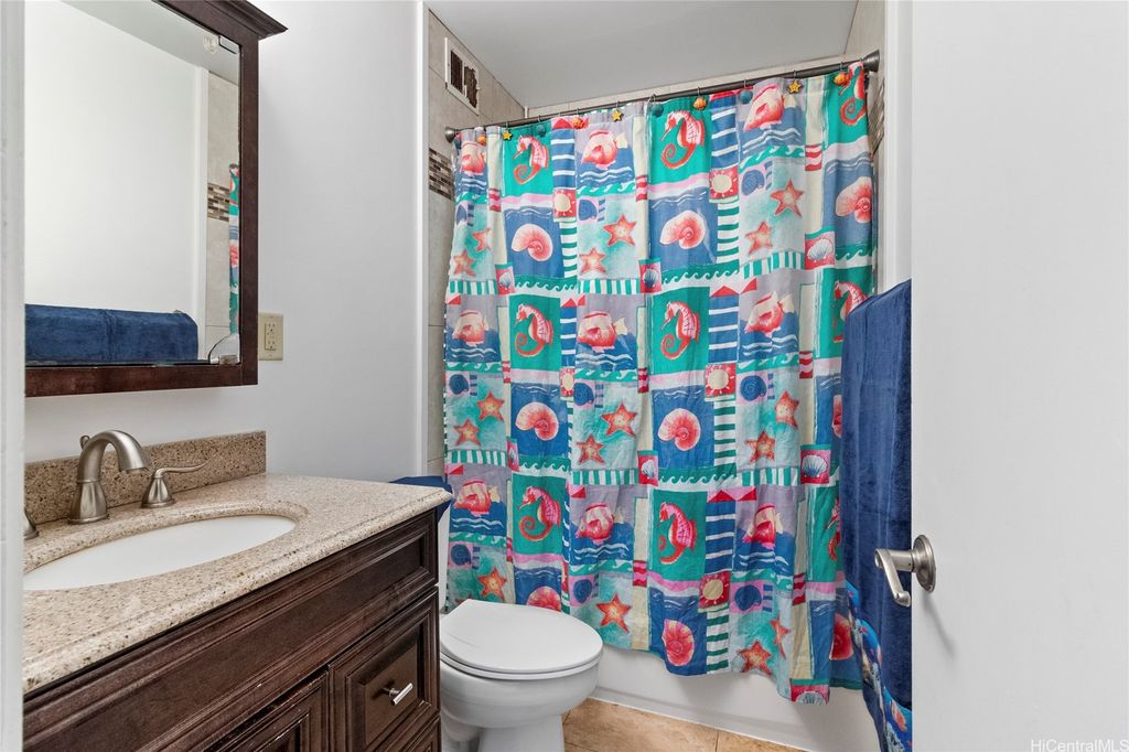 Fabulous unobstructed ocean view of Kaneohe Bay from kitchen, living and primary bedroom. Natural cool breezes from the oceanside enables comfort living. Well cared for unit bought in 2018 that includes popcorn ceiling removal, crown molding, extra under counter storage with enlarged granite countertop and engineered cherry hardwood floors. Unit has what every buyer looks for ... secured entry, washer/dryer, dishwasher, 6 guest parking stalls, car wash area, tennis court, playground and street parking. Meeting/Conference room and an excellent resident manager living on property. A 10 minute walking distance or 5 minutes drive to Windward mall Longs, Safeway, K Bay poke shop, and numerous restaurants. Maintenance fee includes electricity, hot water, sewer, water, cable, cable boxes and internet. Sold As Is.