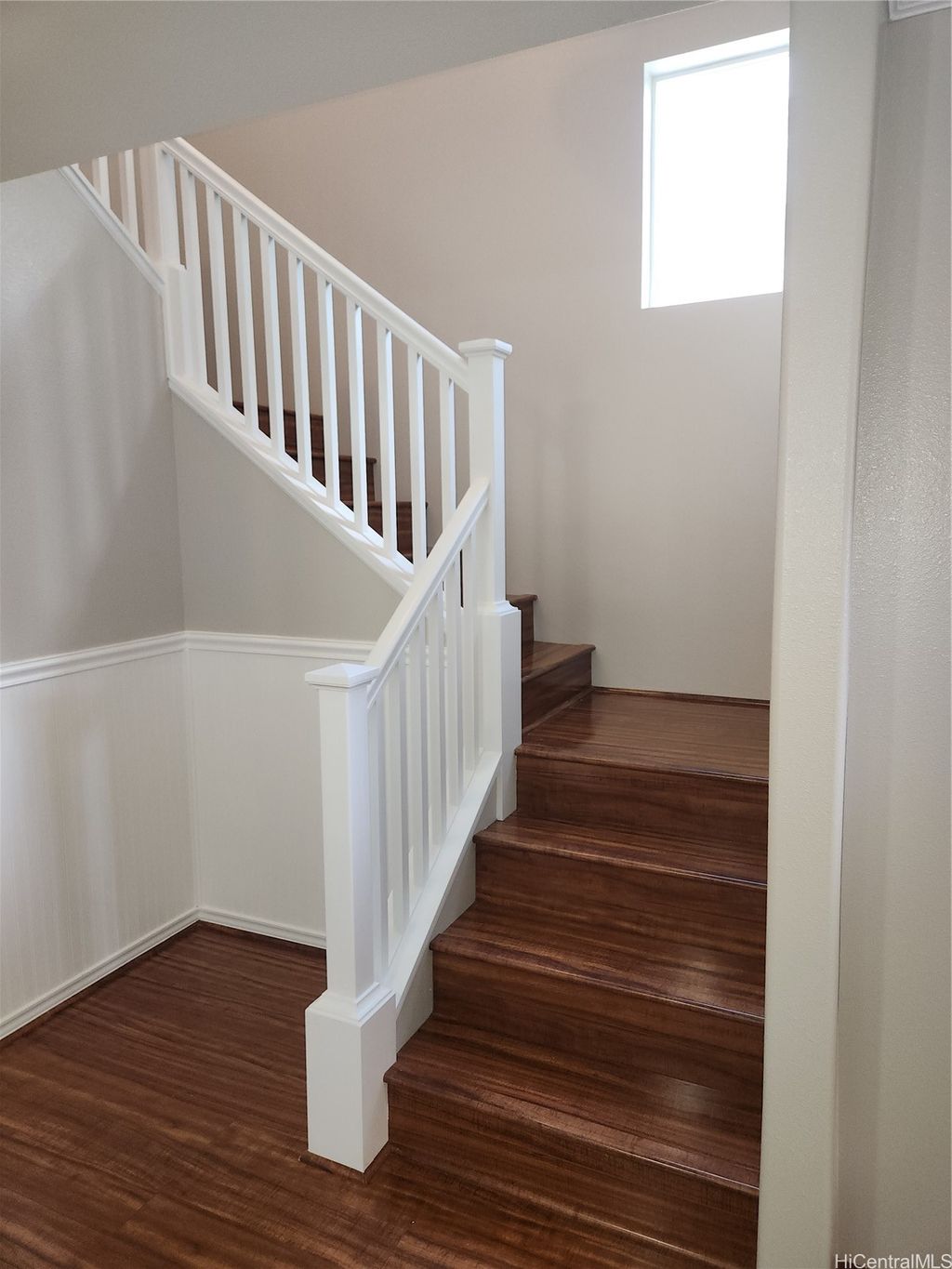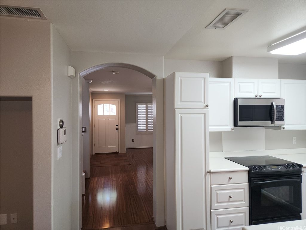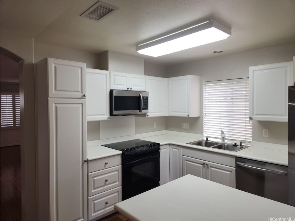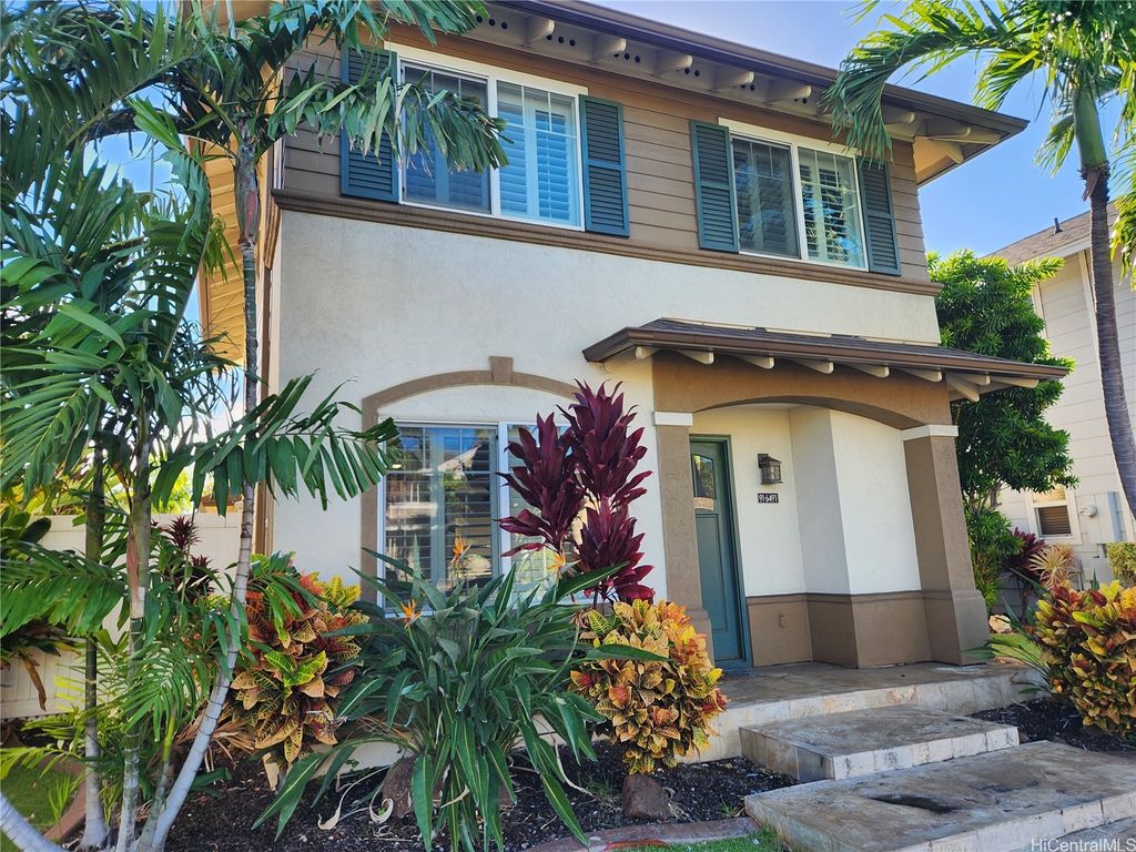 Ke Noho Kai in award winning Ocean Pointe neighborhood. Two story home with 3 bedrooms and 2 baths upstairs, and living room, family room, half bath downstairs. Freshly painted interior, upgraded laminate flooring throughout, tiled kitchen & bath, Central Air conditioning, Photovoltaic system to save on electricity bill, Samsung appliances, fenced yard. two-car enclosed garage and covered walkway from garage to home, which is not a common feature in the area. It also has an extra parking pad in the fenced yard area. Available for immediate occupancy. Lots of visitor parking stalls nearby. Yard service included. One year lease. Must have good credit and income. No smoking. Renters insurance required. Application fee $30 per adult. Owners may consider one cat or one small to medium sized dog. Tenant pays own utilities.