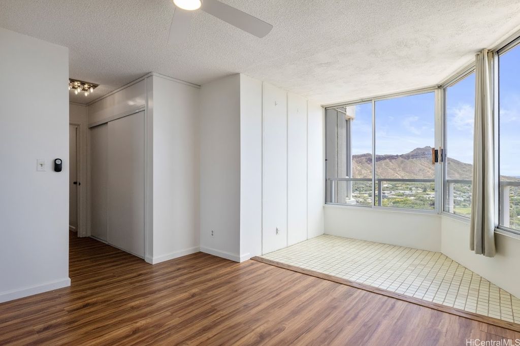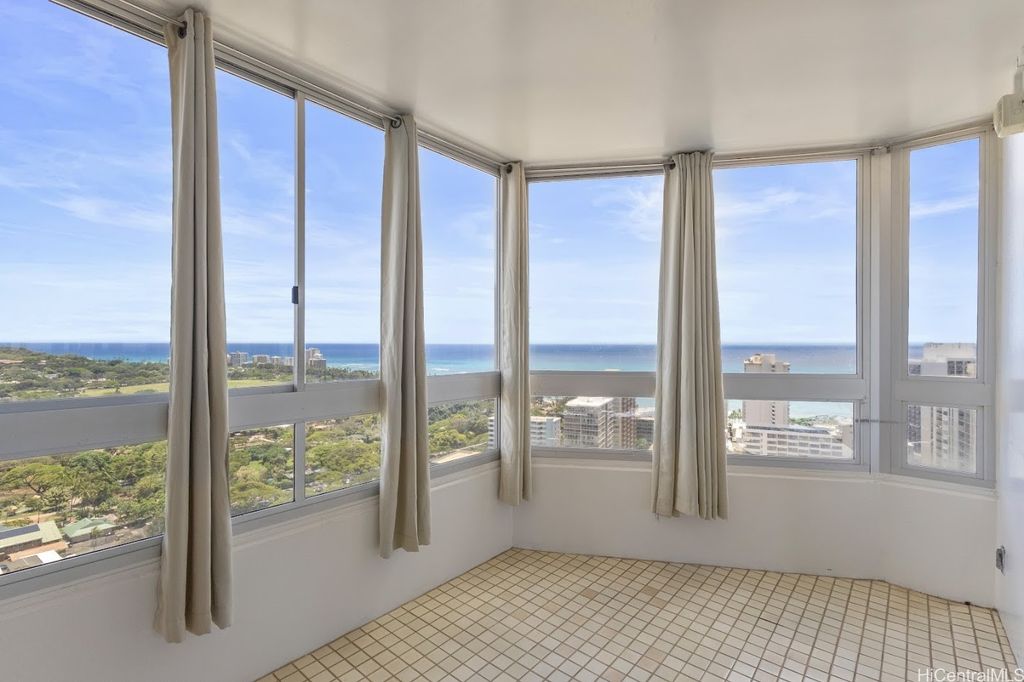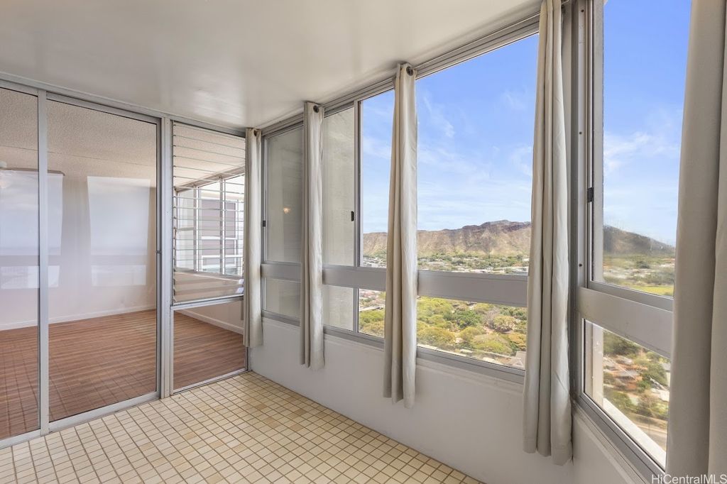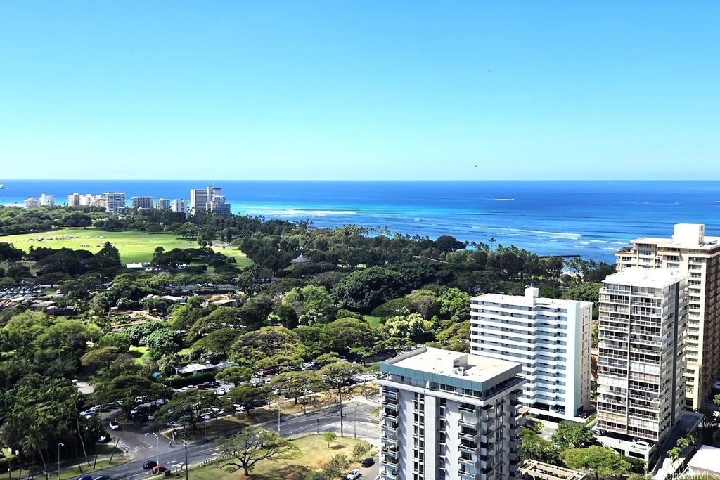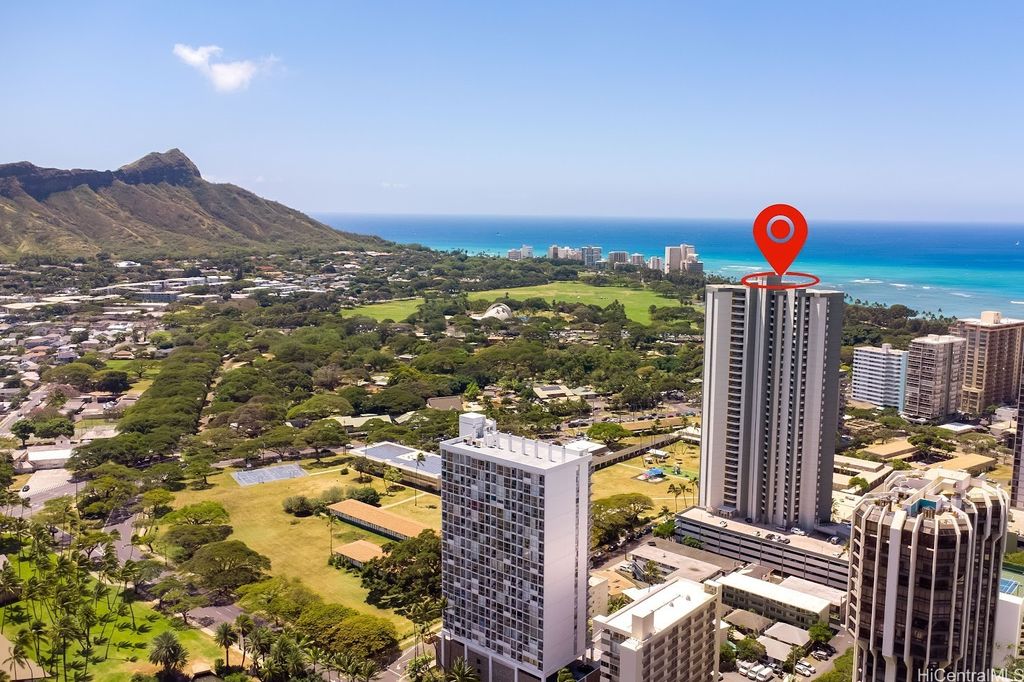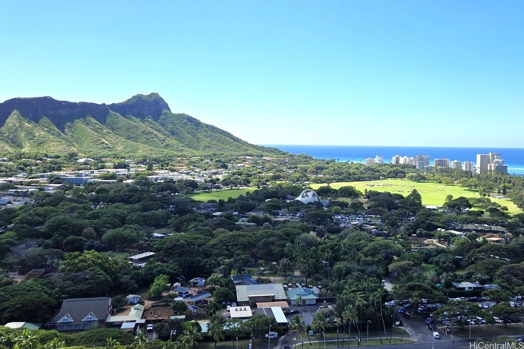 Discover Diamond Head Vista #3102, a rarely offered 2-bedroom, 2-bath home on the 31st floor in the highly desired "02" stack. From this prime vantage point, enjoy sweeping, postcard-perfect views of Diamond Head, the Pacific Ocean, and Waikiki's glittering skyline. Two enclosed lanais provide the ideal setting for morning coffee or evening cocktails while taking in the ever-changing scenery. The residence itself is mostly original yet very well cared for - bright, clean, and move-in ready, giving you the option to update at your own pace and style. Situated at the quieter end of Waikiki, the building is just minutes from Kapiolani Park, the Honolulu Zoo, world-renowned beaches, golf, shopping, and dining. Diamond Head Vista is a secure, well-managed community with thoughtful amenities such as a pool, guest parking, on-site manager, and inclusive maintenance fees that cover electricity, water, sewer, cable, and internet. One assigned parking stall completes this outstanding offering. A rare chance to secure panoramic views and endless possibilities in one of Honolulu's most coveted addresses!