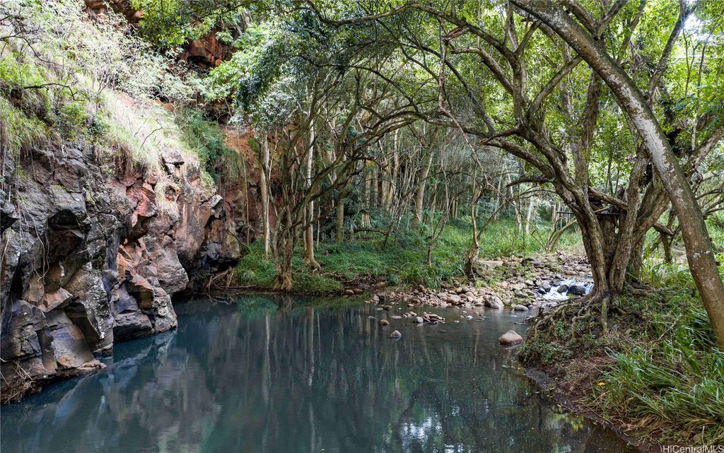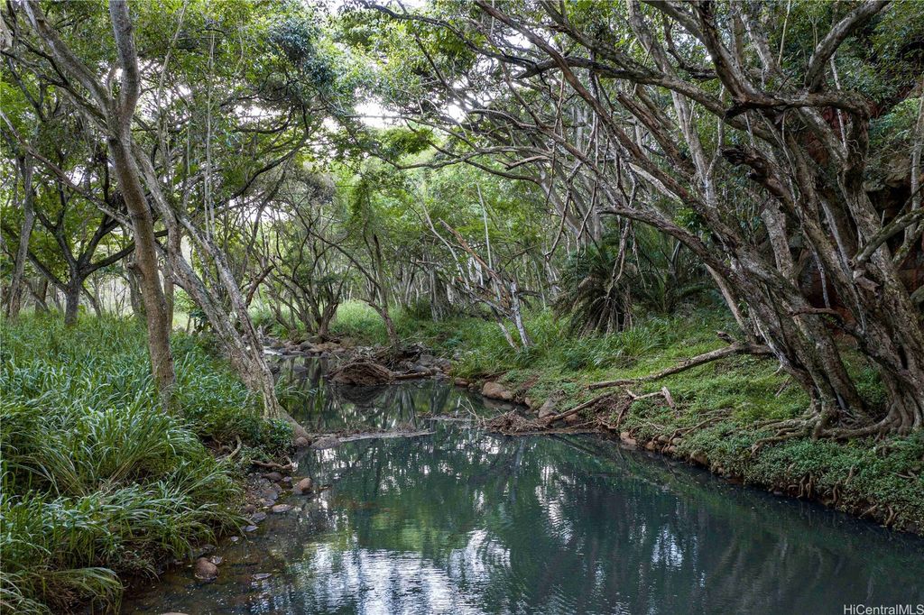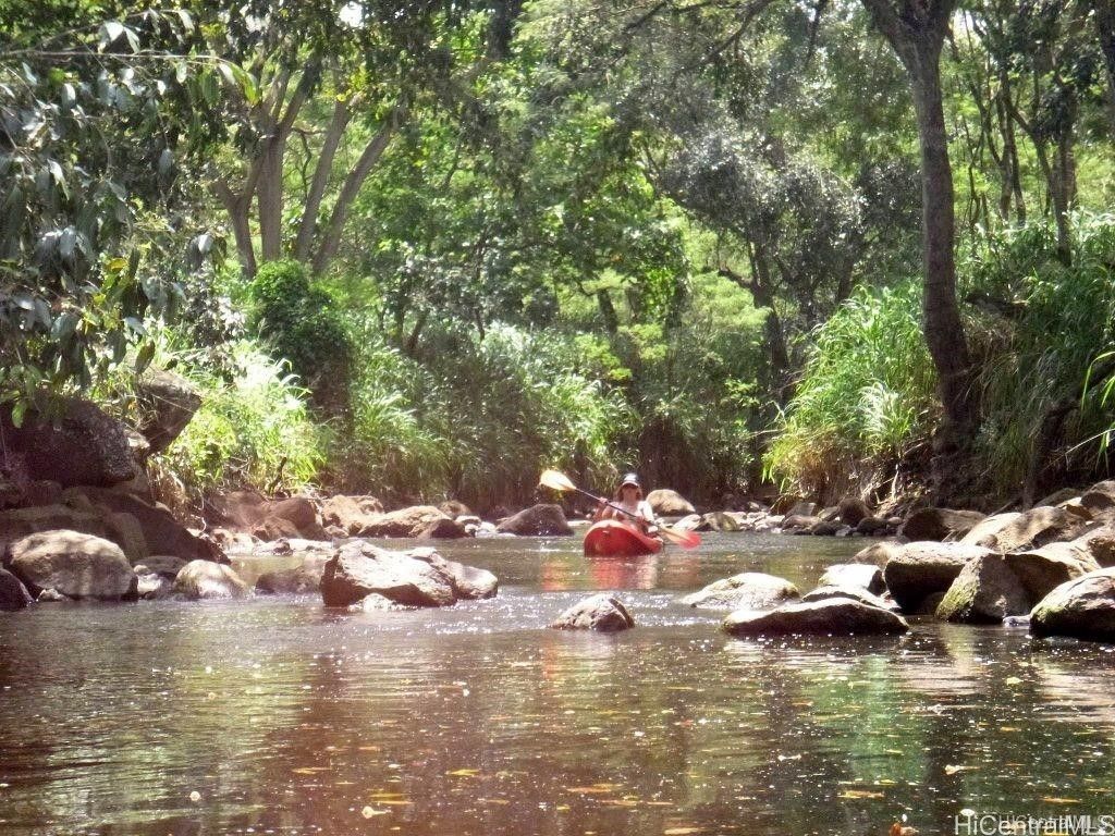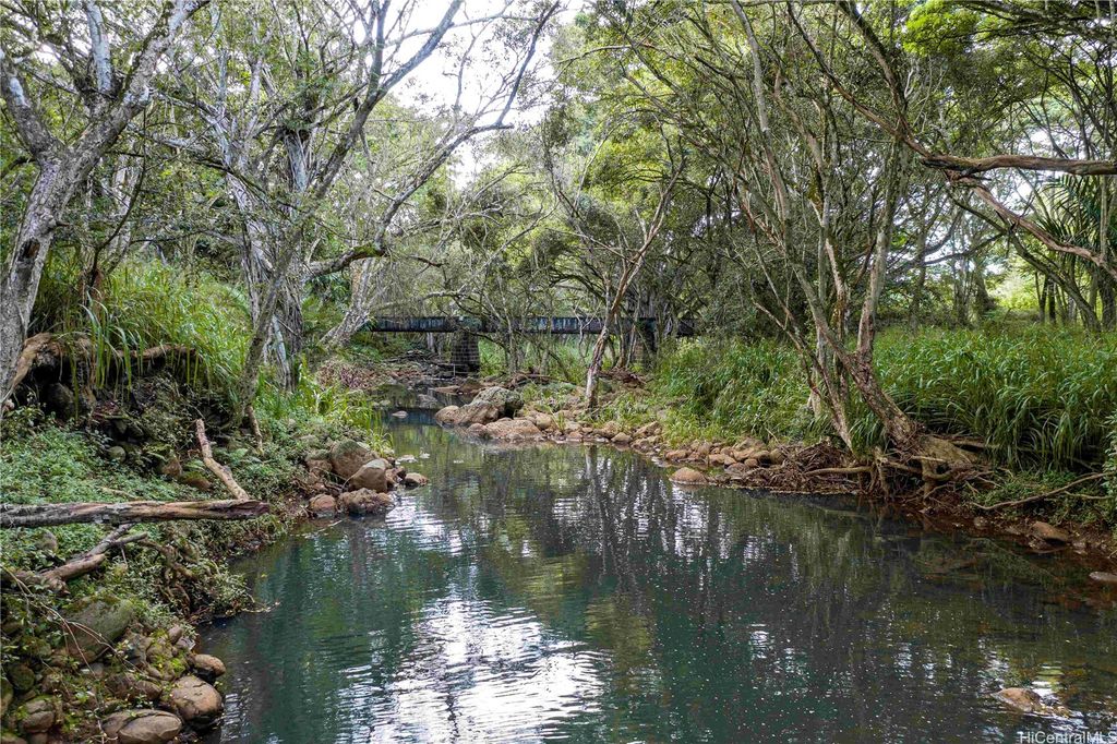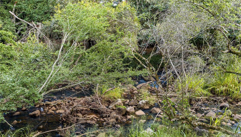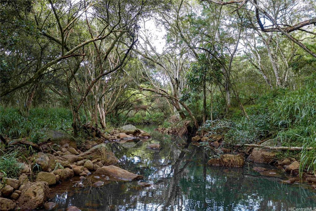1.6 acres of Anahulu Stream Front land which allows 1 farm home up to 5,000 sqft on the 1st floor and can do a second floor. Can also build supporting barns and AG structures. Can build up to a maximum of 1,000 sqft AG structures without a permit for fast use. Perfect for grazing or farming. Direct stream front for prawn fishing and fun. Paddleboard or kayak from the river located near the property to Haleiwa Harbor and Beach Park for fun in the sun. Additional lots are available if you need more space. Visitors say this is one of the most beautiful pieces of land they have seen in rural Oahu and is the best-kept secret on the North Shore. Perfect for a family compound, farm, or yoga retreat. Build a yurt or 1,000 sqft footprint AG structure with a second floor today and enjoy the land while you design and build your custom farm dwelling. A ten-minute bike ride to the center of Haleiwa town. Easy access to Kam Hwy and no north shore traffic. A magical place in the Anahulu Valley. Price includes future electrical and freshwater access if and when approved and completed (special terms apply).