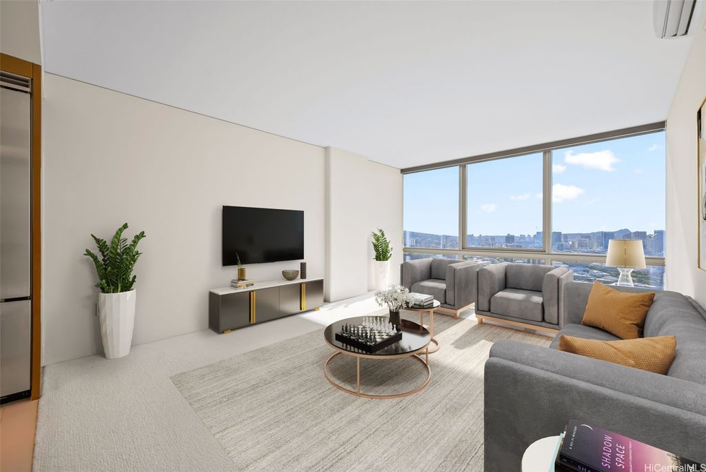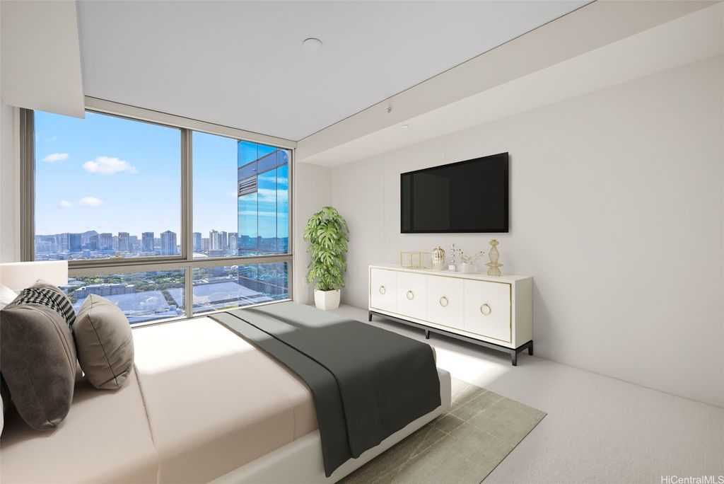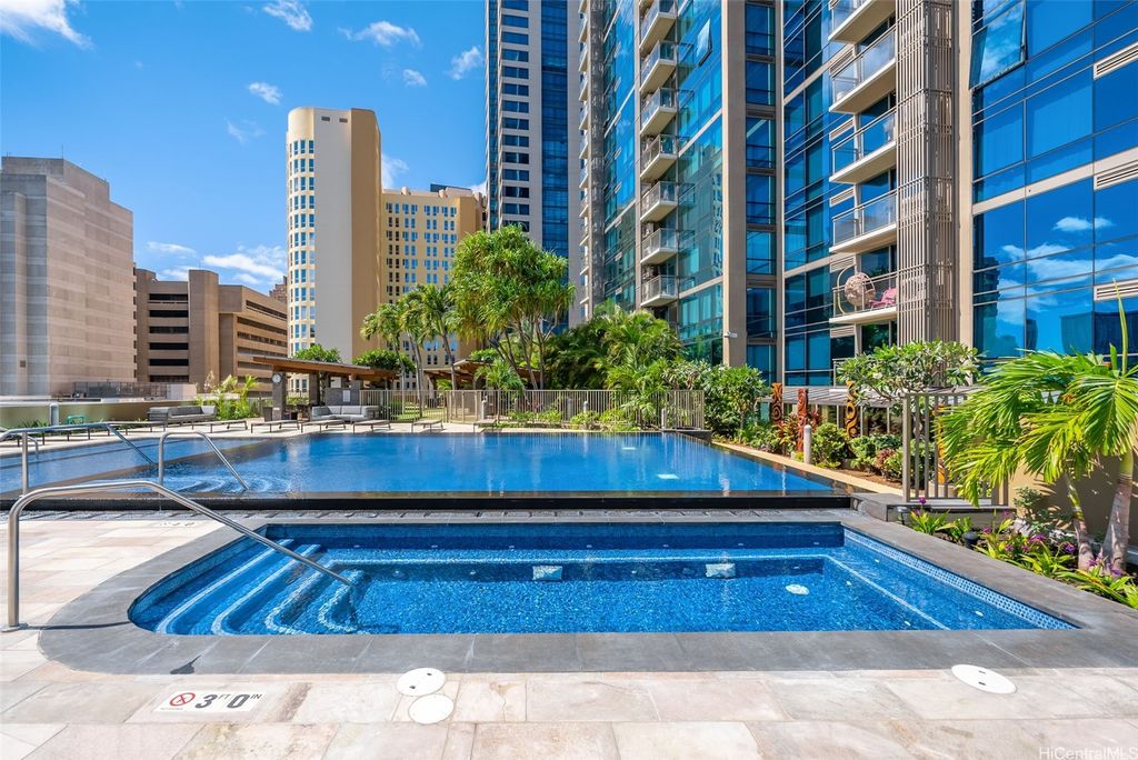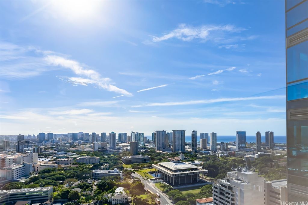This spacious 1-bedroom penthouse at Capitol Place offers stunning views of Diamond Head, the ocean, city skyline and Punchbowl Mountain from every room. Floor-to-ceiling windows fill the home with natural light, while the gourmet kitchen features an island, wine fridge and modern finishes. Other highlights include split ACs, a walk-in closet, motorized window shades and a dedicated storage locker. Rarely lived in, with recent 2024 upgrades such as a new water heater, dishwasher, washer/dryer, carpet, and paint. Capitol Place is a well- managed building with 24-hr security, friendly staff, EV charging stations and resort-style amenities: fitness center, yoga room, movie theater, infinity and wading pools, whirlpool, BBQ cabanas, playground, dog park, and meeting/party room. Convenient Downtown Honolulu location near freeway ramps, dining, shopping, medical facilities and just minutes to Ala Moana Center and Salt Kakaako. A few photos have been virtually staged(enhanced).