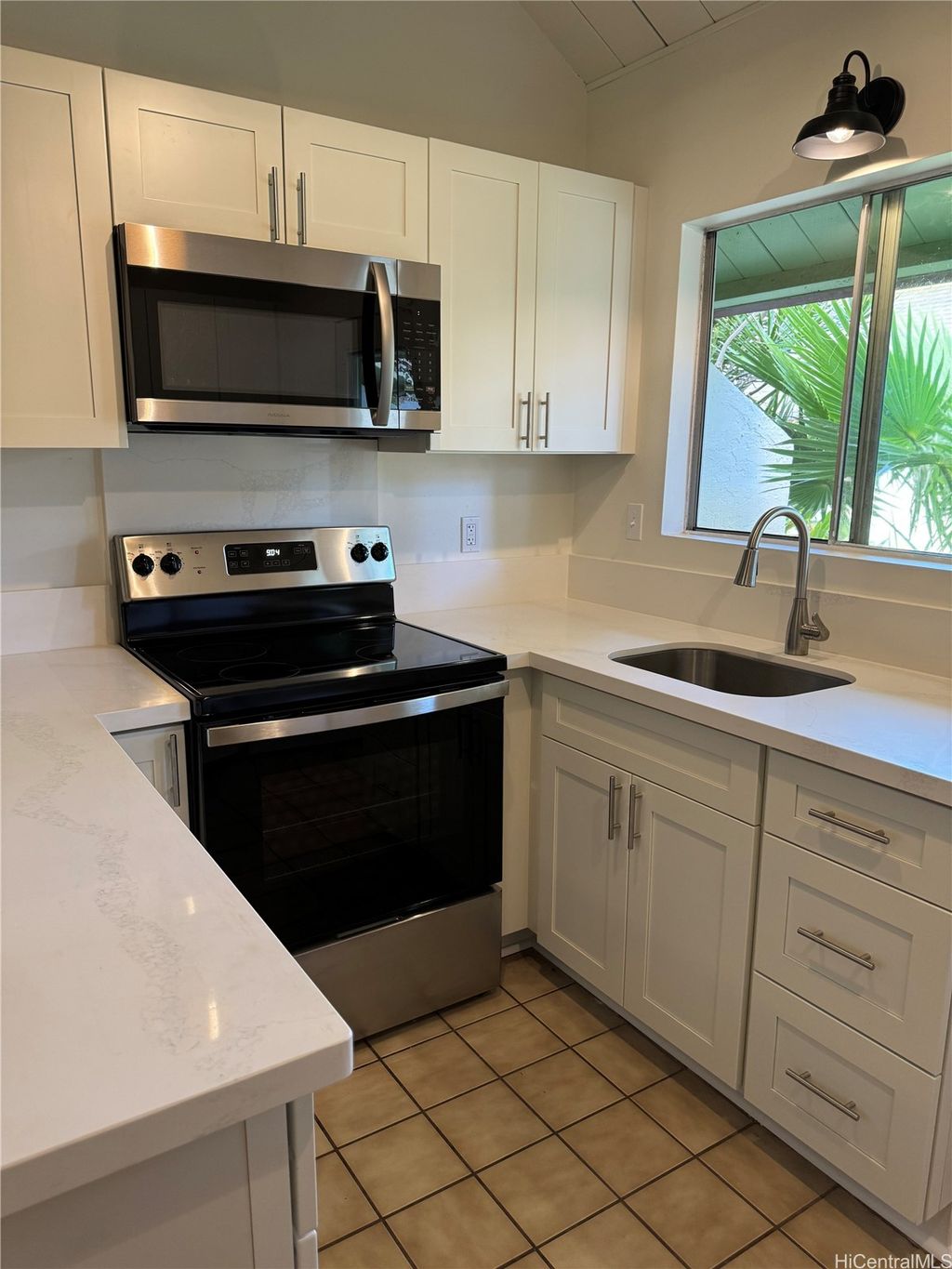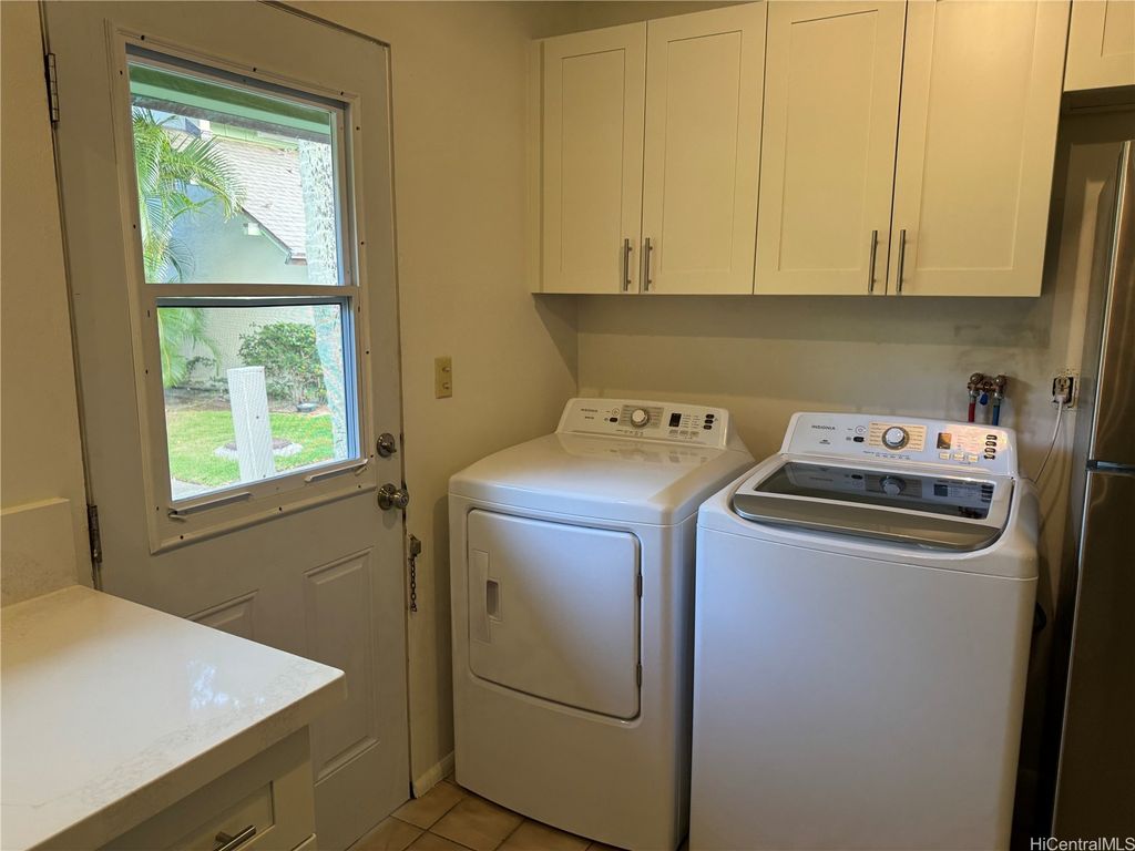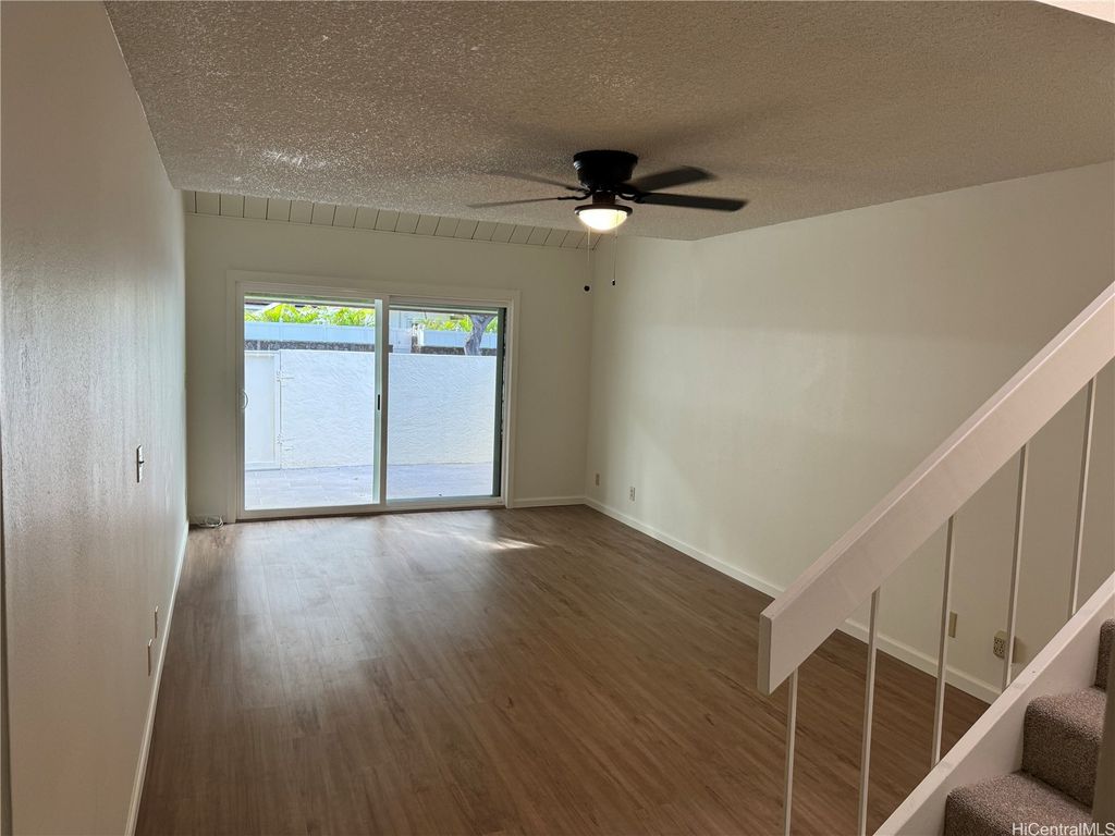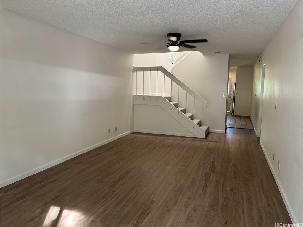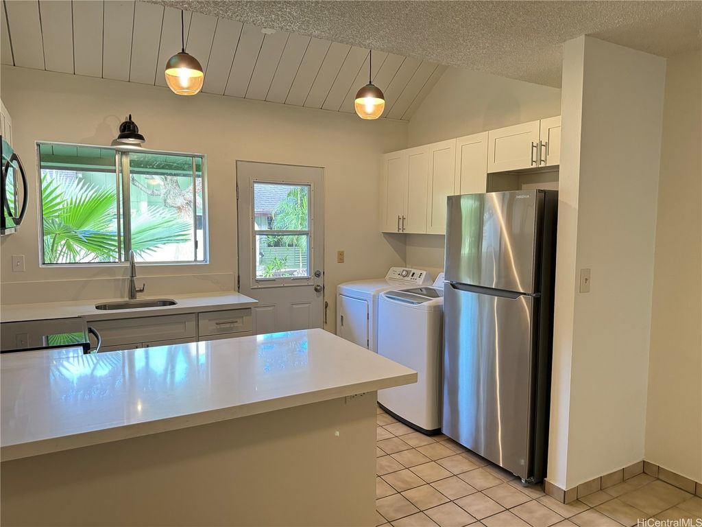 Newly renovated three bedrooms, two baths, two open parking. Split-level, new flooring in kitchen and living room. Bedrooms have new carpet, paint, appliances, and washer/dryer. Private lanai with a gate that leads out to the main street for convenience. Basic cable included. The tenant pays for electricity, water/sewer, internet, and phone. 'NO A/C" Community pool with recreation area. Next door to elementary school, bus line, and much more. No Smoking! No Pets! Minimum one-year lease.