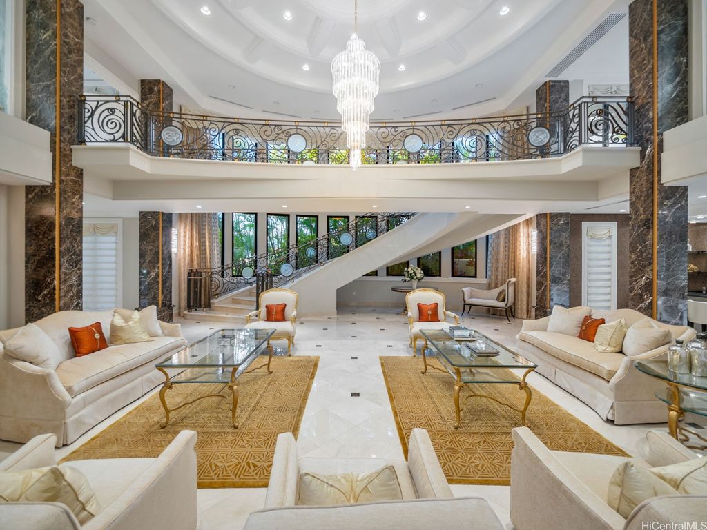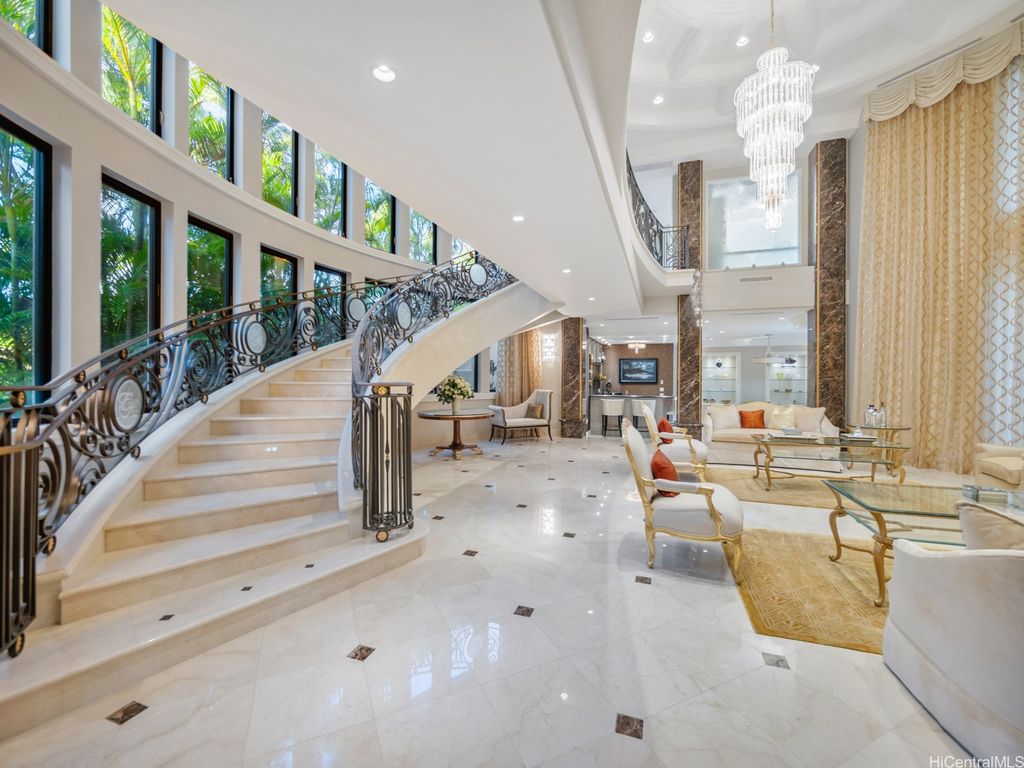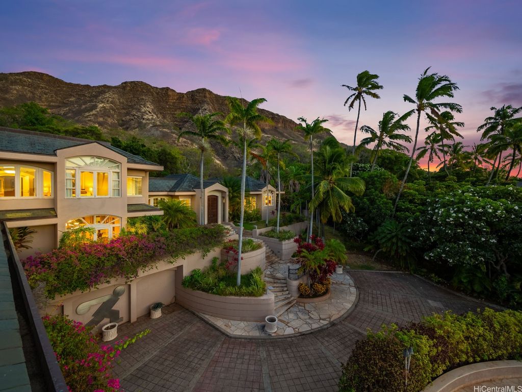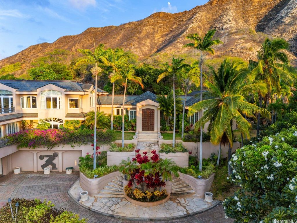 Welcome to the private, gated "DIAMOND HOUSE" a truly one-of-a-kind masterpiece in Hawaii! This luxurious mansion offers over 16,000 sq. ft. sophisticated living space with 8 bedrooms, 9 full bathrooms, and 2 half bathrooms. The estate is designed for the ultimate in luxury living, with a dramatic tropical landscape showcased as living art - complete with a half-moon fountain pool and a cascading custom waterfall. Highlights include:Grand princess staircase leading to a primary suite with breathtaking ocean, Diamond Head and Waikiki views. Swarovski chandeliers and exquisite imported finishes throughout,3000+ bottle wine cellar for collectors, butler's pantries & wet bars for refined entertaining, 4-car garage + 6 driveway spaces for ultimate convenience when your guests arrives. Beyond the home itself, enjoy the serenity of your private paradise - hiking among plumeria, listening to Hawaiian birdsong, and watching butterflies drift through the gardens. This iconic estate was crafted by the legendary developer Jack Myers, blending timeless elegance with unmatched craftsmanship. Gated entry ensures both privacy and security for your family and guests. Don't miss this opportunity!