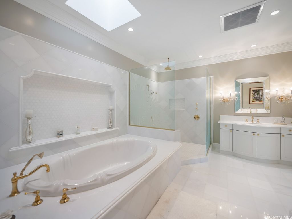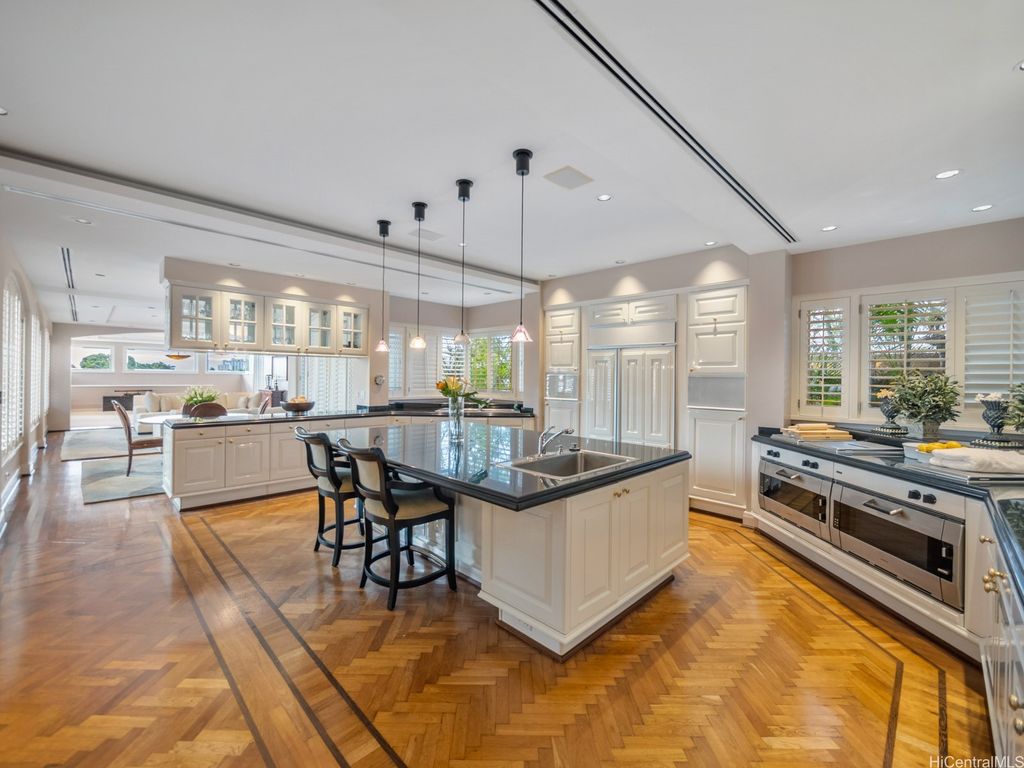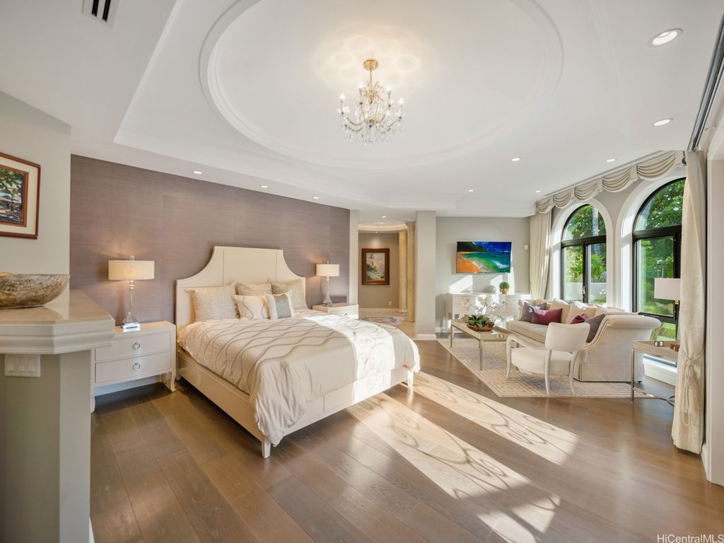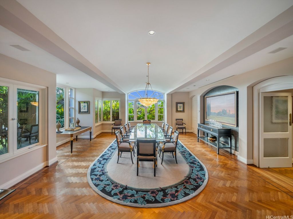 Welcome to the private, gated "DIAMOND HOUSE" a truly one-of-a-kind masterpiece in Hawaii! This luxurious mansion offers over 16,000 sq. ft. sophisticated living space with 8 bedrooms, 9 full bathrooms, and 2 half bathrooms. The estate is designed for the ultimate in luxury living, with a dramatic tropical landscape showcased as living art - complete with a half-moon fountain pool and a cascading custom waterfall. Highlights include:Grand princess staircase leading to a primary suite with breathtaking ocean, Diamond Head and Waikiki views. Swarovski chandeliers and exquisite imported finishes throughout,3000+ bottle wine cellar for collectors, butler's pantries & wet bars for refined entertaining, 4-car garage + 6 driveway spaces for ultimate convenience when your guests arrives. Beyond the home itself, enjoy the serenity of your private paradise - hiking among plumeria, listening to Hawaiian birdsong, and watching butterflies drift through the gardens. This iconic estate was crafted by the legendary developer Jack Myers, blending timeless elegance with unmatched craftsmanship. Gated entry ensures both privacy and security for your family and guests. Don't miss this opportunity!