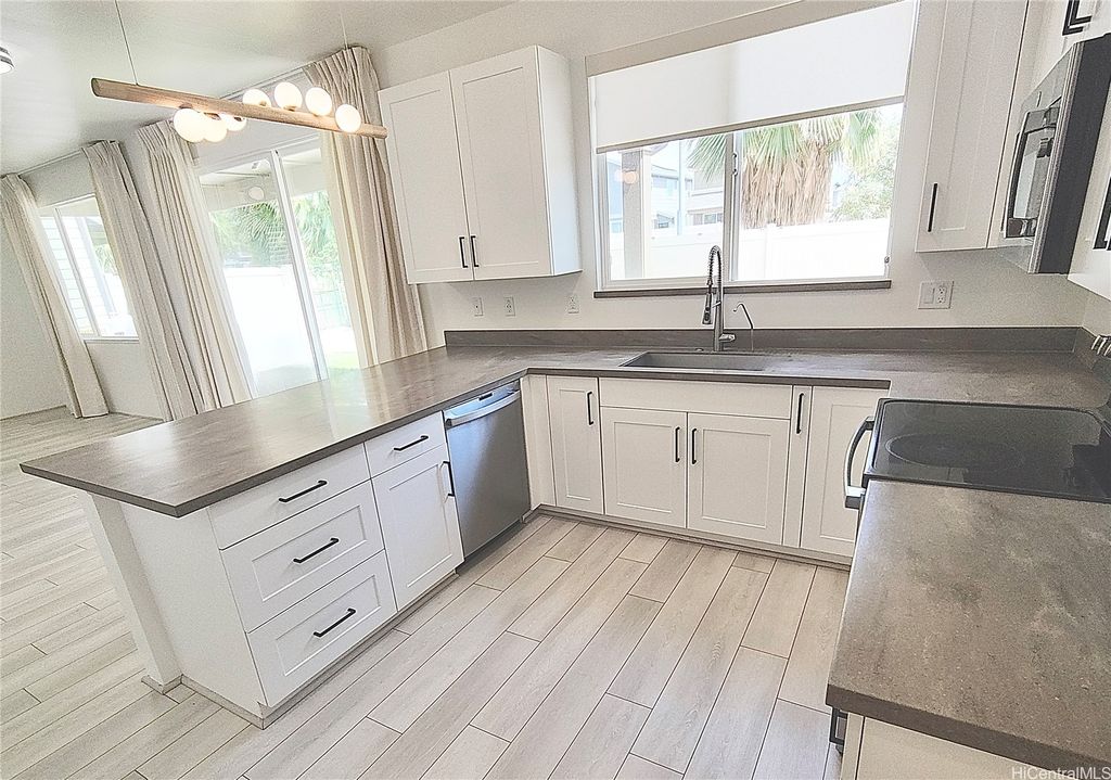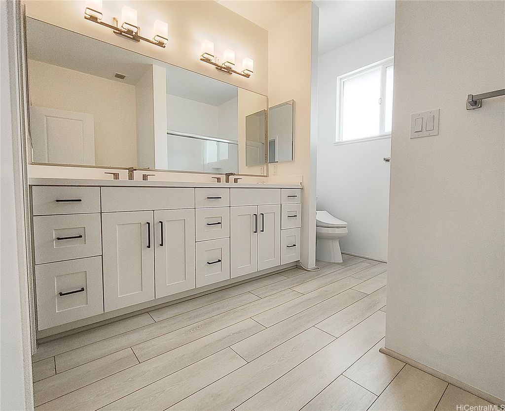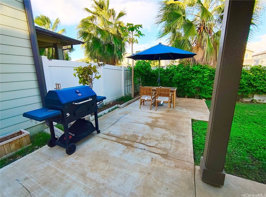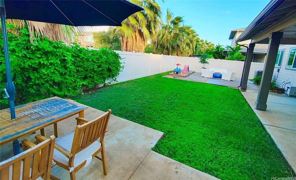Welcome to Ewa by Gentry - Makamae, where pride of ownership and community spirit shine through every street. This beautiful home blends modern comfort with thoughtful design "” featuring 9-foot ceilings, an open floor plan, and a kitchen centered around a large island that brings everyone together. Enjoy indoor-outdoor living with a covered lanai just off the living room and landscaped front and back yards perfect for relaxing or entertaining. The first-floor bedroom and full bath offer convenience for guests or multi-generational living, while the upstairs primary suite provides a peaceful retreat with a walk-in shower, Toto bidet, and organized closet system. Two additional bedrooms are bright, airy, and versatile. Energy-efficient upgrades include a 20 SEER central A/C system, solar water heater, dual-pane windows, and fiber-optic internet. A Halo water filtration system, Leased Photovoltaic system includes the following: (18) panels from Mission Solar Energy LLC, TXI6-370120BB Inverters 1 x SolarEdge Technologies SE6000H-USSN One Tesla Battery Storage, and EV charger complete this eco-friendly home. Discover the best of island living "” by appointment only.