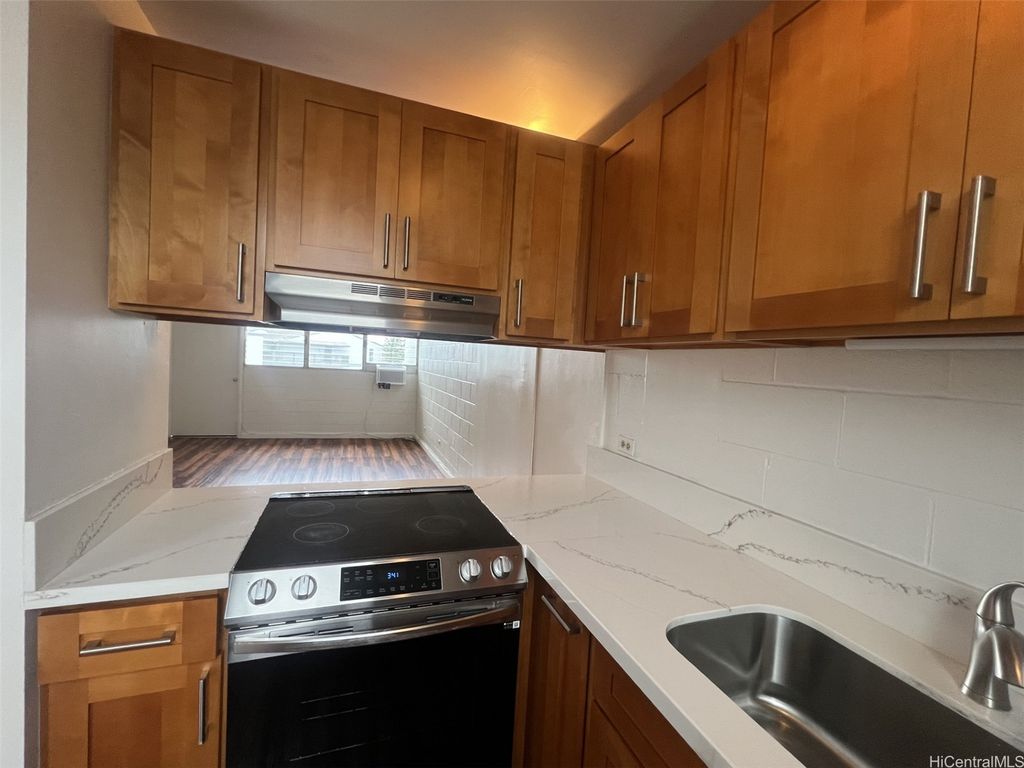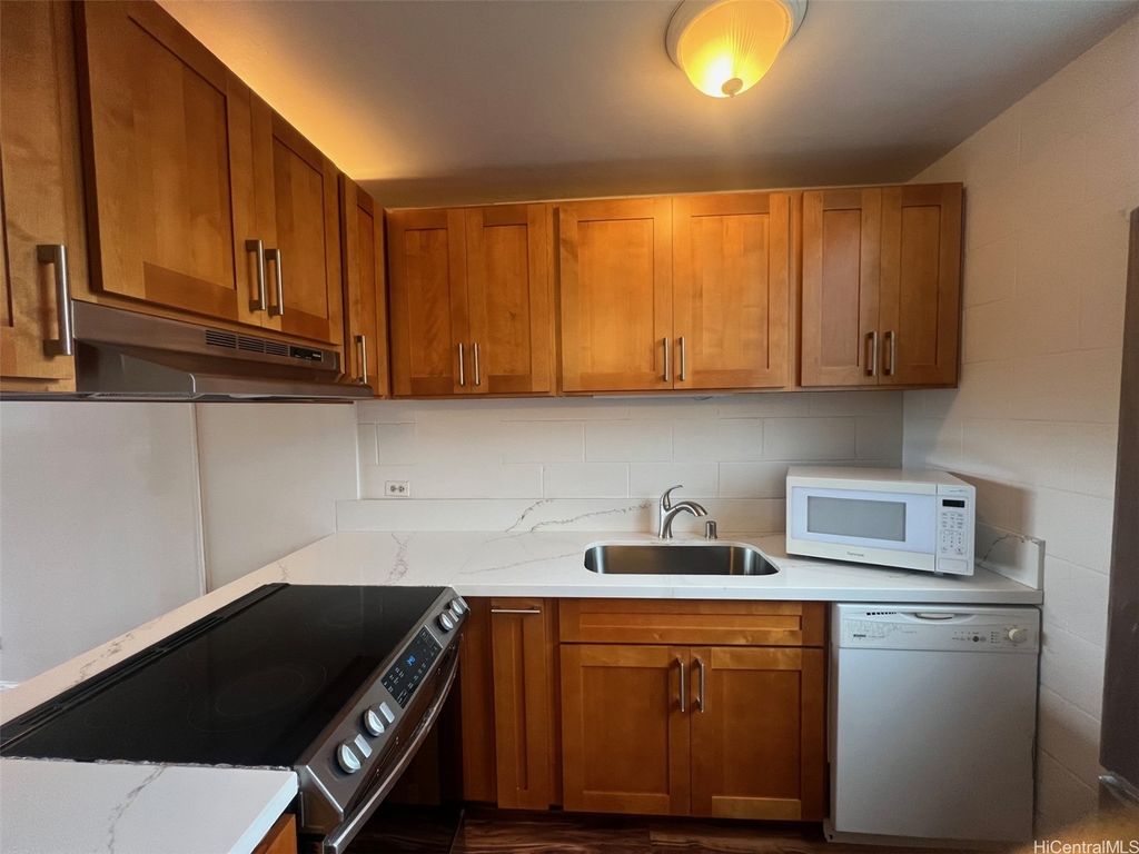 2 BEDROOMS, 1 BATH, one parking, 2 new window AC units and washer & Dryer in the unit. in the heart of Kaneohe. This split-level unit features two bedrooms and one bathroom upstairs, with the kitchen and living room conveniently located downstairs. Upgraded kitchen and bathroom. Enjoy views of the Koolau Mtn Range spacious private lanai. Laminate flooring throughout living room for easy cleaning. The building has Keyed access a Trash Chute and Resident Manager. Amenities include a community pool, BBQ areas, a Basketball Court, a Car Wash station, and more. EZ access to Marine Corps Base Hawaii (MCBH), H3 freeway, hiking, shopping, Windward Mall, Windward Community College. Call/Text (808) 292-5888