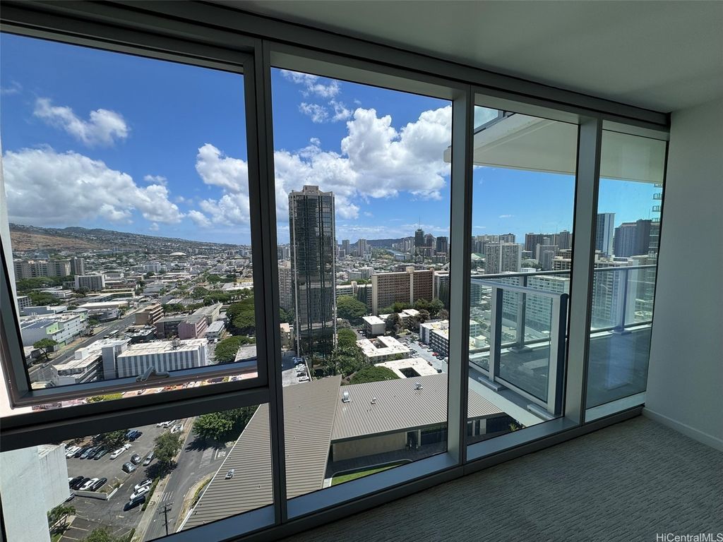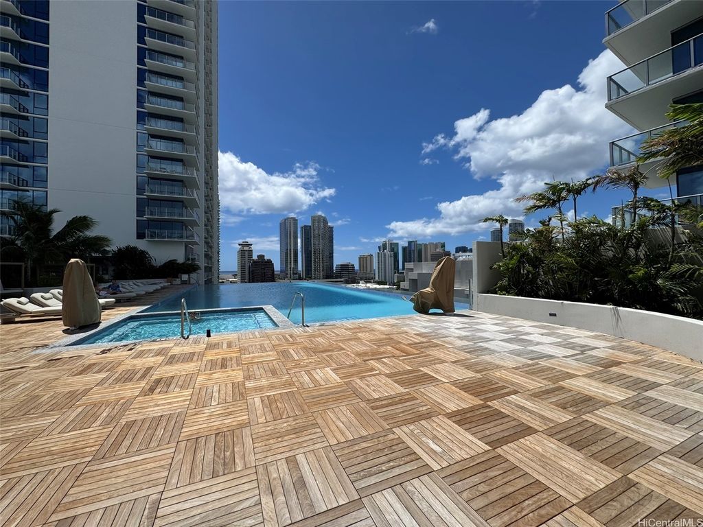 Be the first to live in this brand new unit located at The Park on Keeaumoku, Honolulu's newest residential landmark. Cozy living space of 606 sq. ft. and a 92 sq. ft. covered lanai, one-bedroom, one-bath, with one covered parking. Split AC units, floor-to-ceiling windows with mountain and city views. Quartz counter-tops, new stainless steel appliances, vinyl plank flooring, carpeted bedroom. Separate laundry room. Featuring resort-style amenities: Infinity pool, spa, sauna, cabanas, BBQ pavilions, gym, yoga room, movie theater, meeting/party rooms, 24-hour security and patrol, bike racks. Perfectly located near Ala Moana, shopping, restaurants, entertainment, and more. Utilities include water/sewer/trash, Basic Cable/Internet. NO Smoking! NO Pets! Renters Insurance Required! Minimum one-year lease.