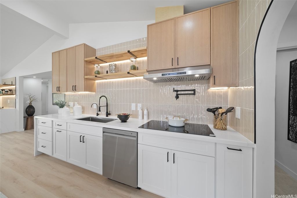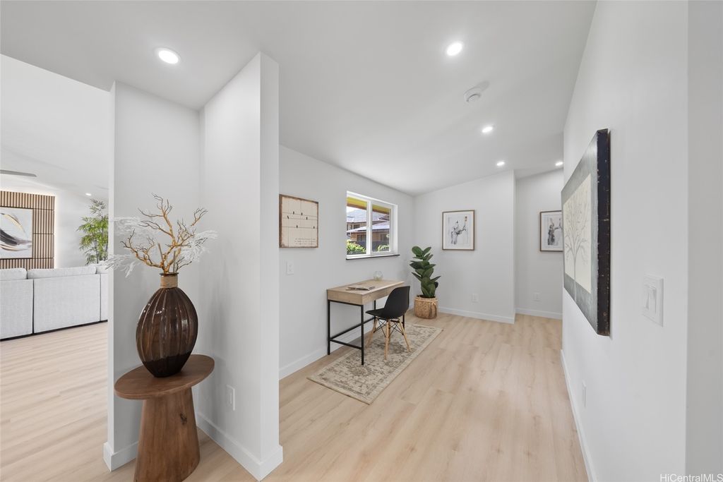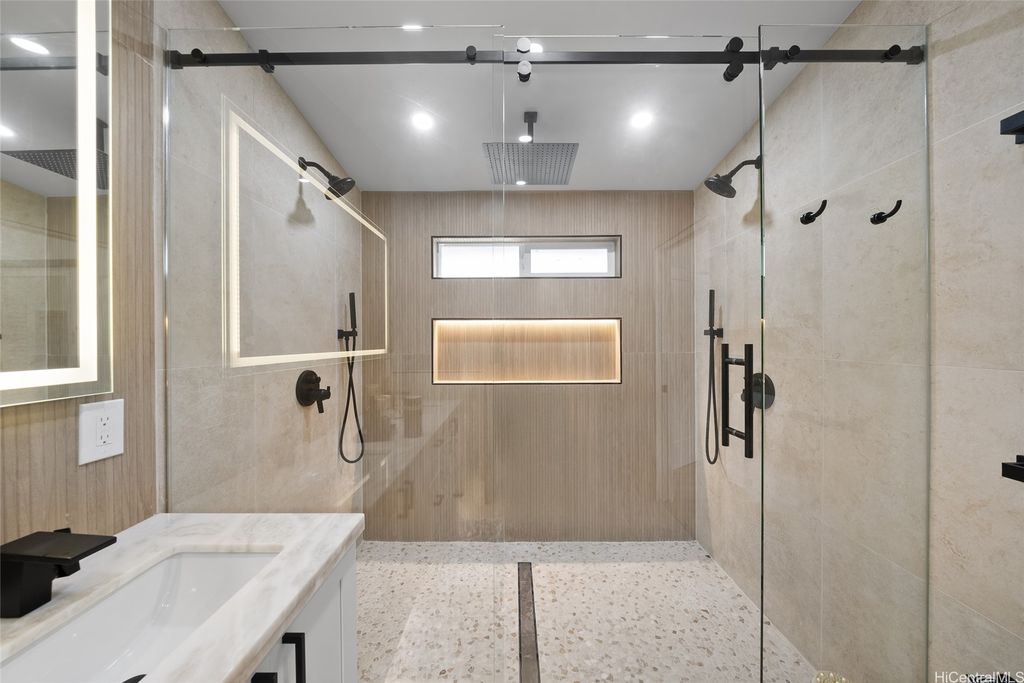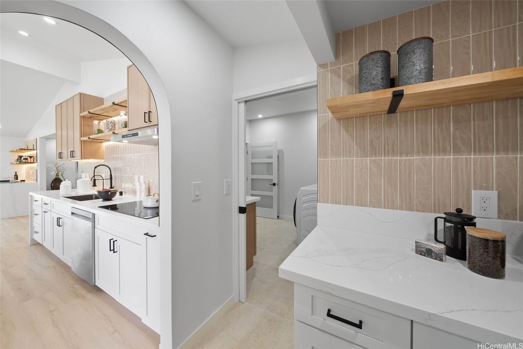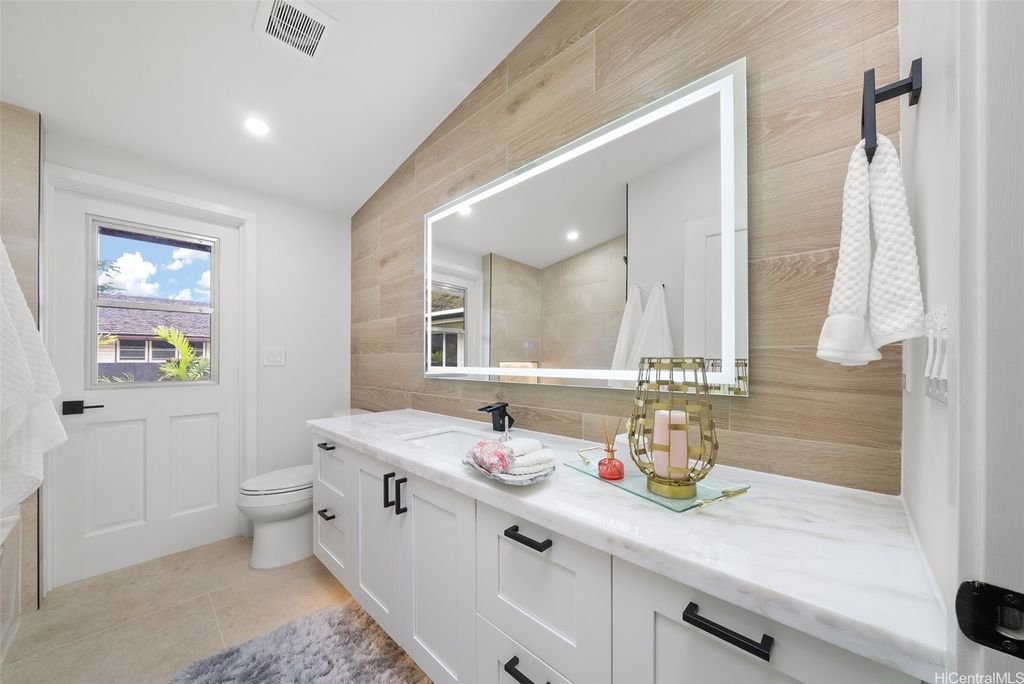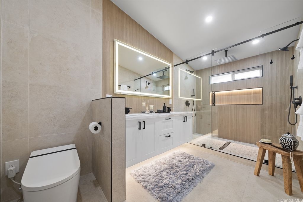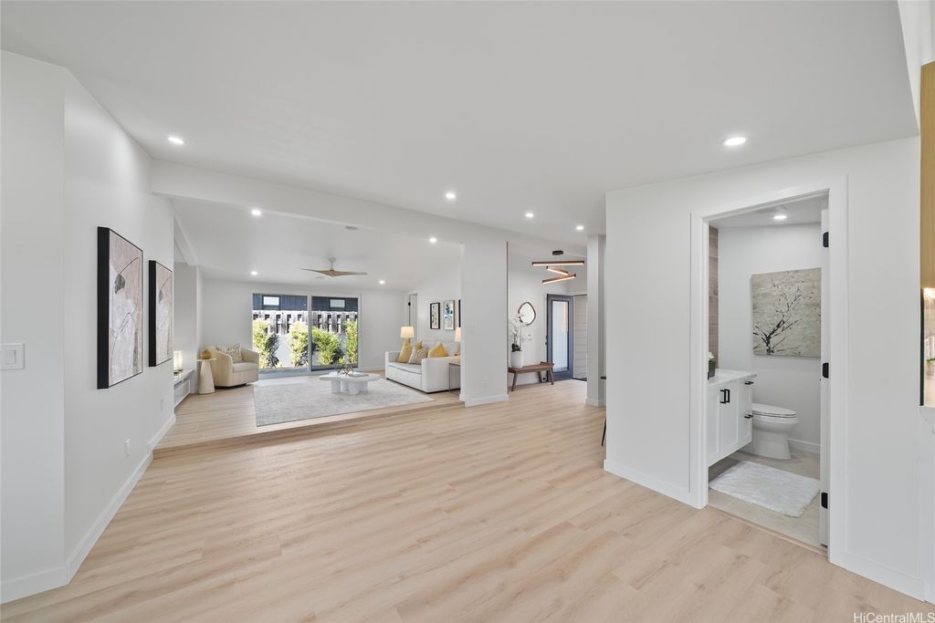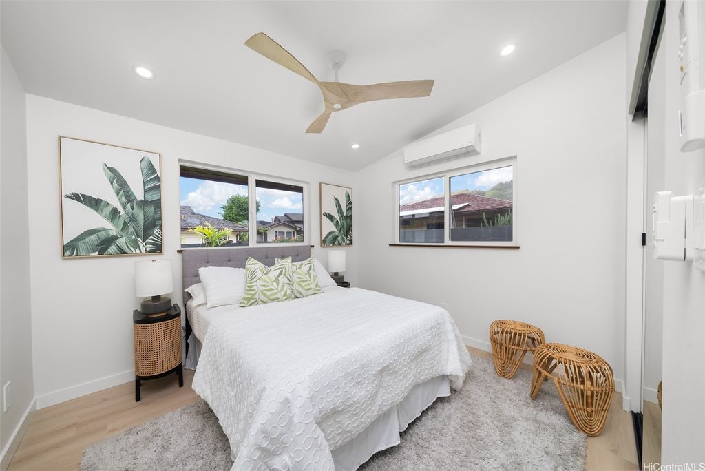 Impeccably remodeled single-level home on a large, level lot in highly desirable Manoa, known for its lush valley views, cooler breezes, and convenient access to top schools, parks, cafés, and shopping. A true open-concept layout with two spacious living areas creates a seamless flow. Built-in wall speakers fill the home with rich sound, while four energy-efficient split A/C units keep each room cool and comfortable. The stunning primary suite offers a peaceful retreat with a beautifully designed bedroom, expansive walk-in closet, and spa-inspired bathroom. Additional bedrooms are bright and inviting, complemented by all-new bathrooms throughout. The sleek modern kitchen connects effortlessly to the living and dining spaces, perfect for gatherings and everyday life. A large laundry room adds convenience and storage. Outdoors, the flat, oversized yard provides space to play, entertain, or create your dream outdoor living area. Every detail has been thoughtfully upgraded with quality finishes; move-in ready home combining luxury, and family comfort.