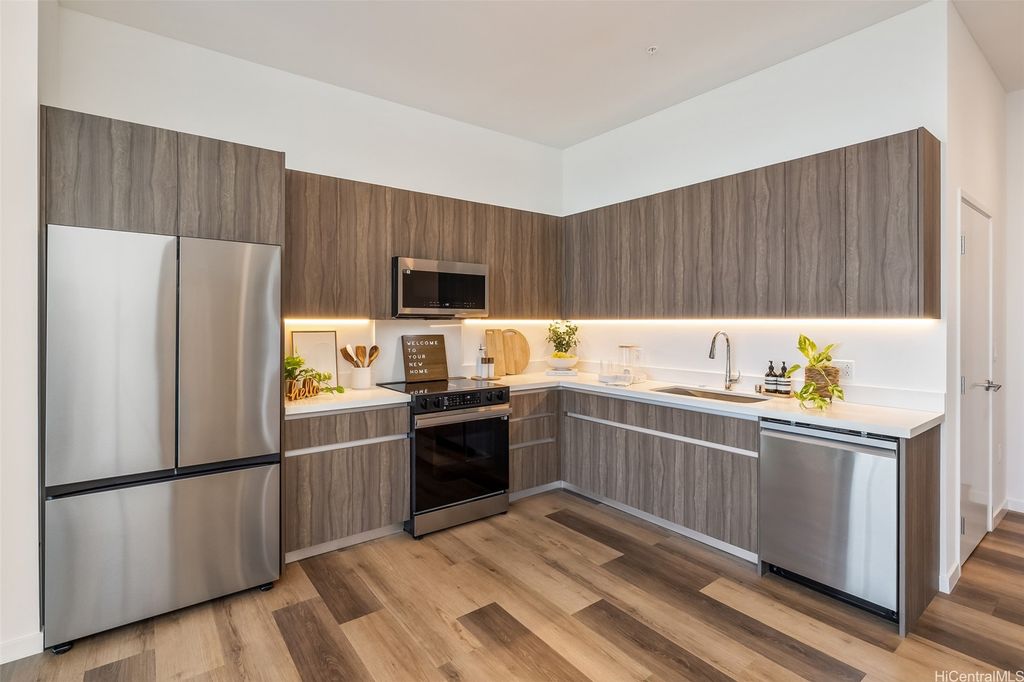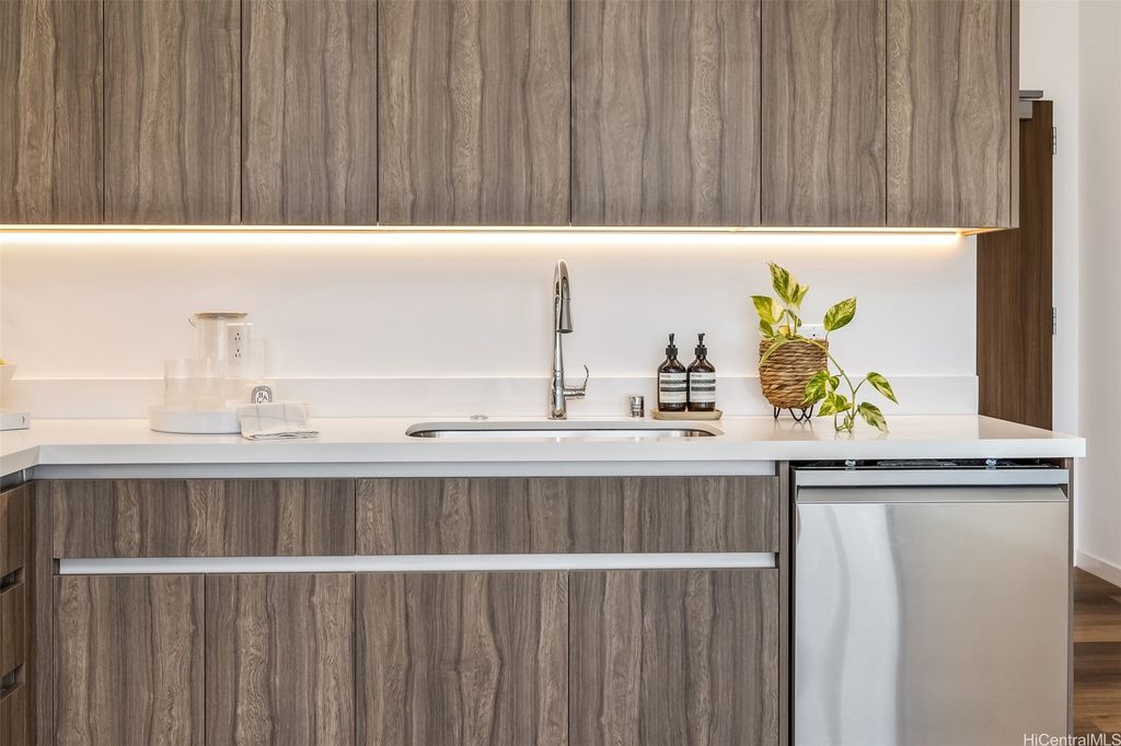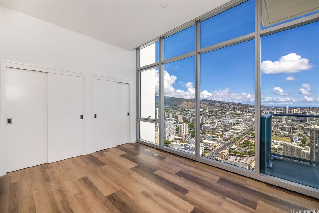 Spectacular high ceilings define this top-floor, penthouse-level residence with views not only of Diamond Head and the ocean, but all the way over Kahala to Maunalua Bay! The 07 is the largest floor plan of the three 1bds on the 44th floor, and features a stunning lanai. The wide bedroom layout takes full advantage of the view, with tall, floor-ceiling glass. Upgraded with LVT flooring in the bedroom and automatic shades, this home is ready to move into and has never been occupied. The parking stall is amazing, on the lowest gated level diagonally across from the entrance to the tower elevators. The Park on Ke"˜eaumoku is Midtown Ala Moana's newest condominium, known for its spacious amenity area featuring a huge infinity pool and hot tub, huge party rooms, lots of private BBQ cabanas, gym, saunas, theater, and more. Don't miss this special penthouse!