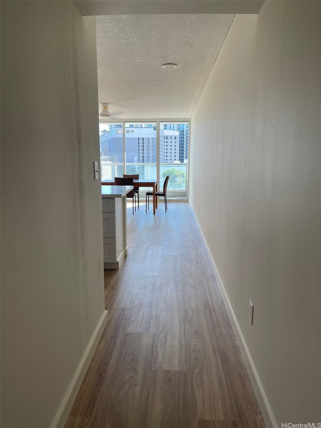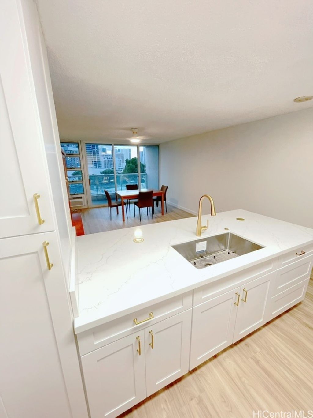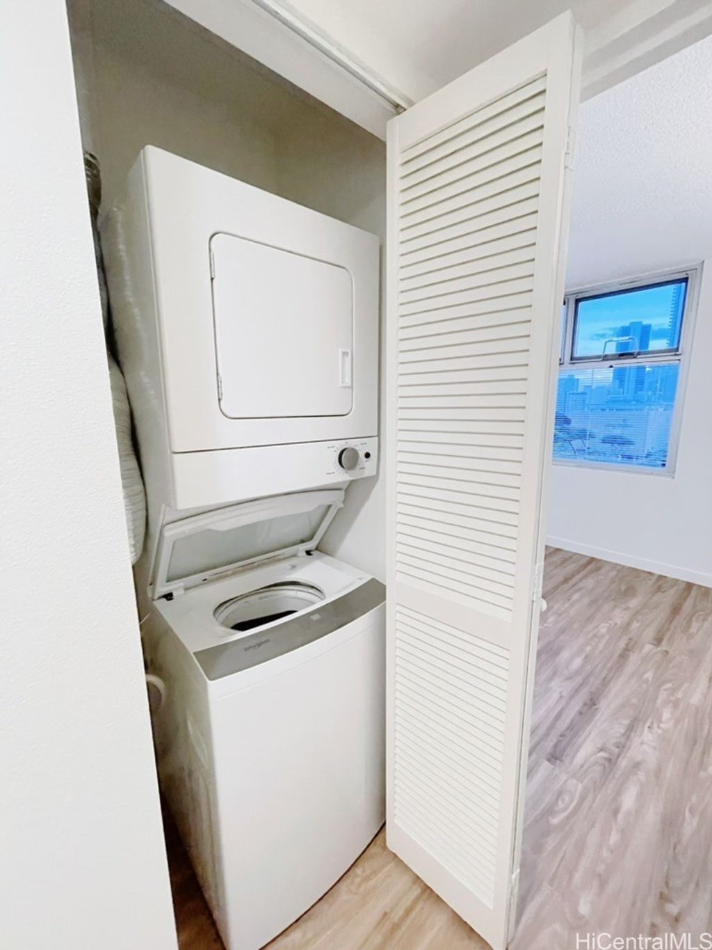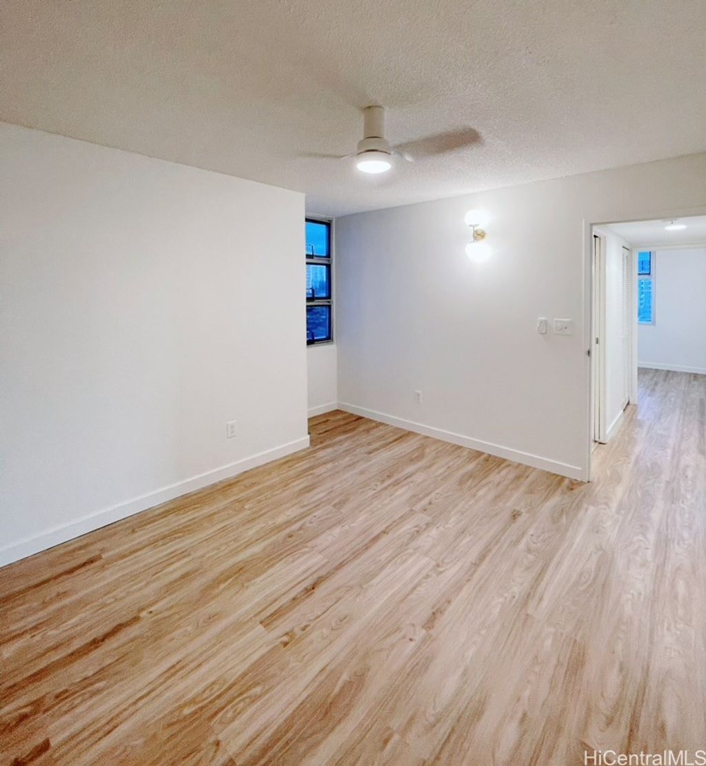Renovated in 2025! 1448 Young St - built in 1999. Beautiful and bright 2BR/1BA with upgraded luxury vinyl floors throughout, new paint, new bathroom vanity, contemporary open kitchen with new cabinets and new appliances, ceiling fans, new A/C, new light fixtures and more! Centrally located building, close to Ala Moana Shopping Center, Sam's Club, Walmart, restaurants, grocery stores and easy freeway access. Secure building with resident manager and security on duty at entry. Lots of guest parking. Great Leasehold property: City and County of Honolulu owns ground lease. Lease rent is only $1 year until 2029 and lease expires in 2064. Low maintenance fees! Pets: aquarium fish only.