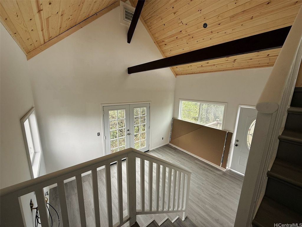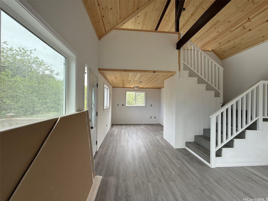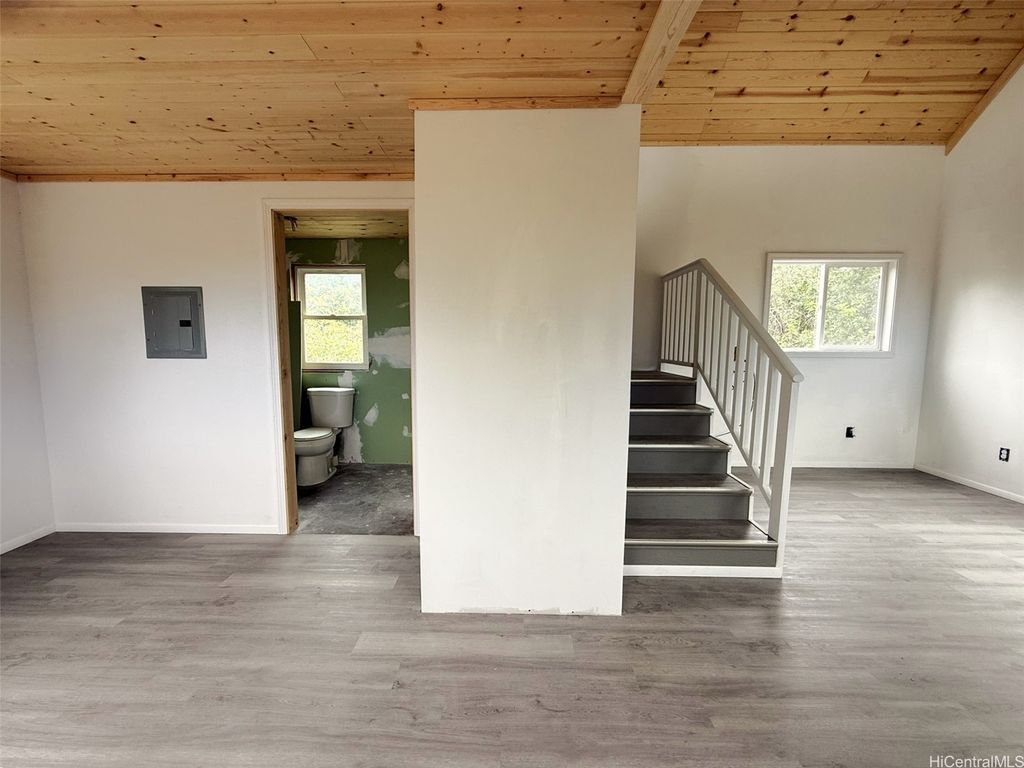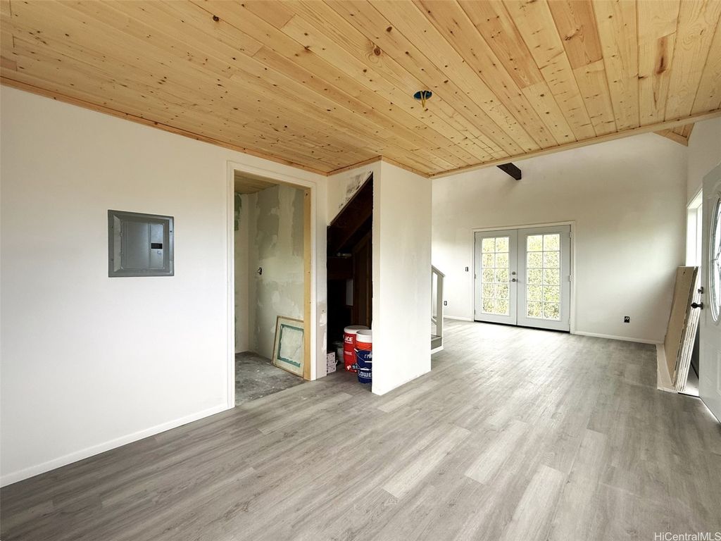 Discover the potential of this thoughtfully updated home, located in lava zone 6. Just minutes from world-famous beaches, hikes, and marine sanctuary, this 1 bed, 1 bath residence offers an incredible opportunity to bring your dreams to life! Construction began in 2017, with the kitchen, bathroom, and final plumbing still left to complete, this is your chance to step in and customize the finishing touches to suit your personal style. Recent updates include: *Added insulation for improved energy efficiency & climate control *Wood-slatted ceilings, adding charm, texture & highlighting the lavishly tall cathedral ceilings *New staircase, designed for better functionality & use of space *LVP flooring throughout *Framing completed, drywall finished & window sills installed While not complete, the construction was done to exceptional standards, with simple elegance in mind. It's not a large house, so thoughtful use of space was essential. With an open concept design, plenty of windows, double french doors, and a loft-style bedroom with a view of the ocean, this home utilizes every square foot. Don't miss your opportunity to shape this home into something truly special!